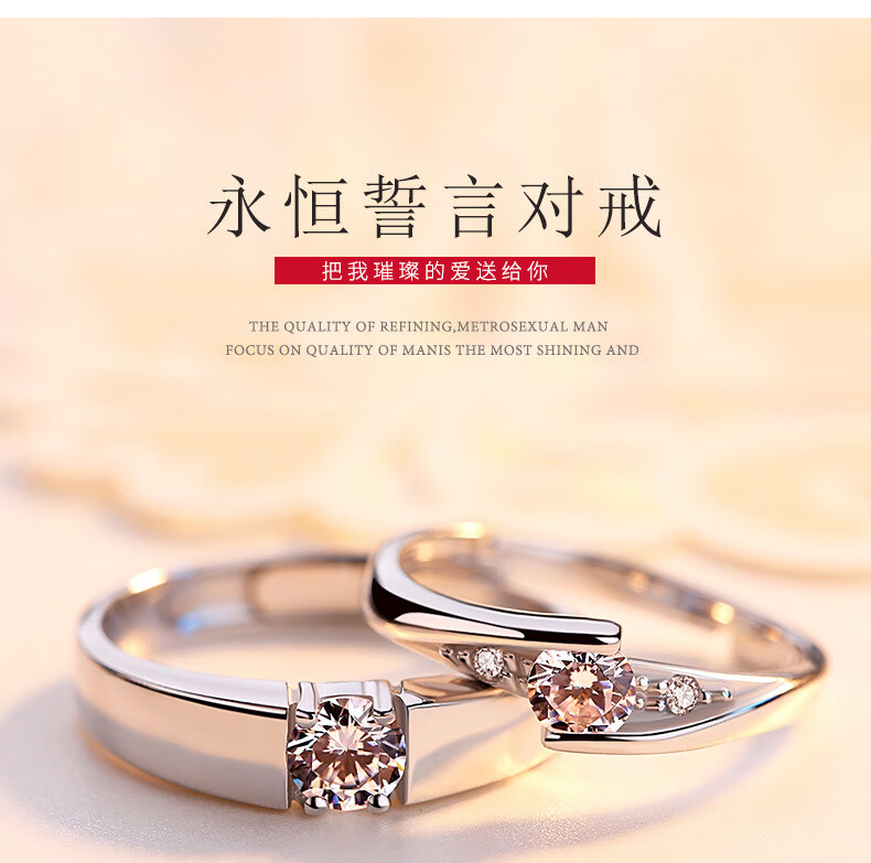 MZMZ platinum couple ring for women pt950 platinum pair of rings for wedding and birthday 520 Valentine's Day gift for girlfriend and wife light luxury model - single ring (note male/female)