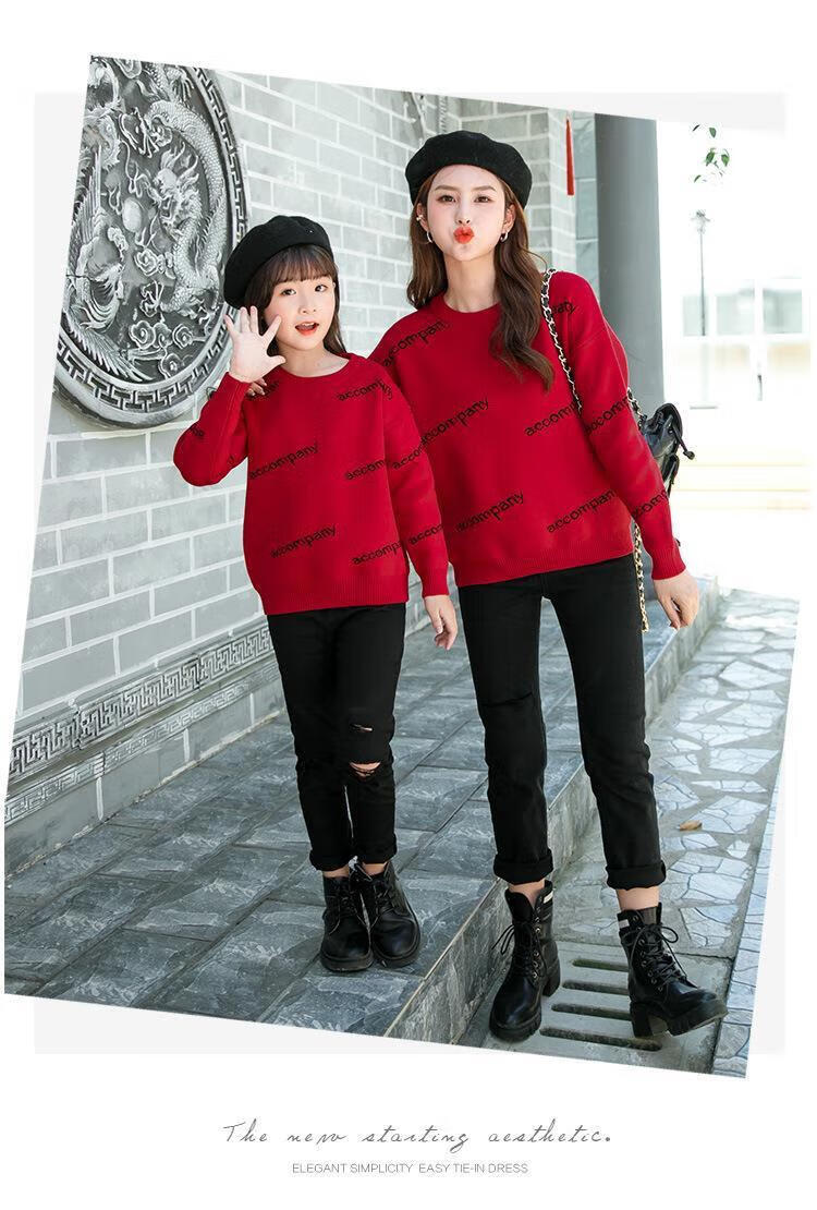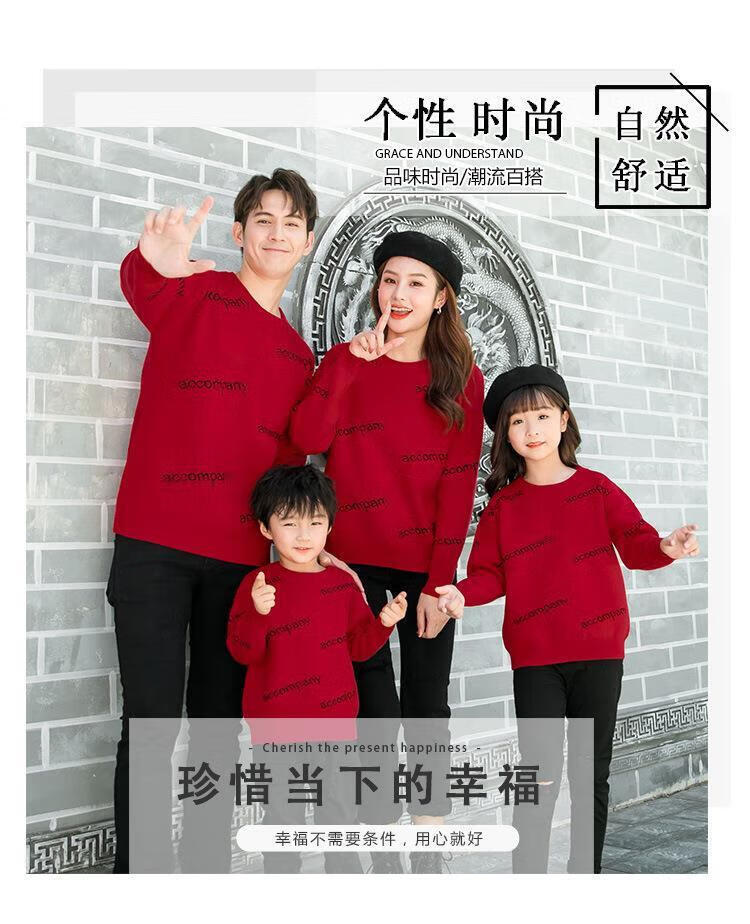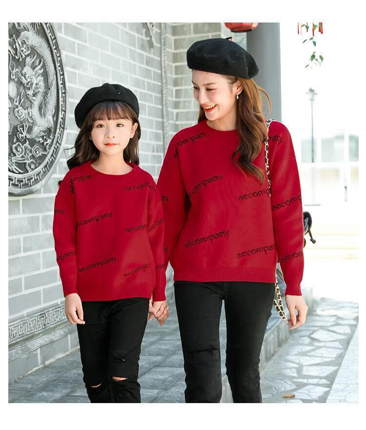 G.duck parent-child clothing for a family of three and four 2026 new autumn and winter mother-child and mother-daughter clothing sweatshirt thickened coat sweater red sweater 90 cm/20-26Jin Jin equals 0.5 kg