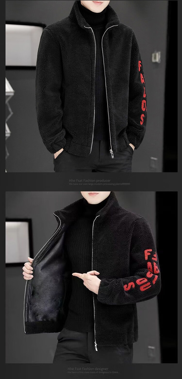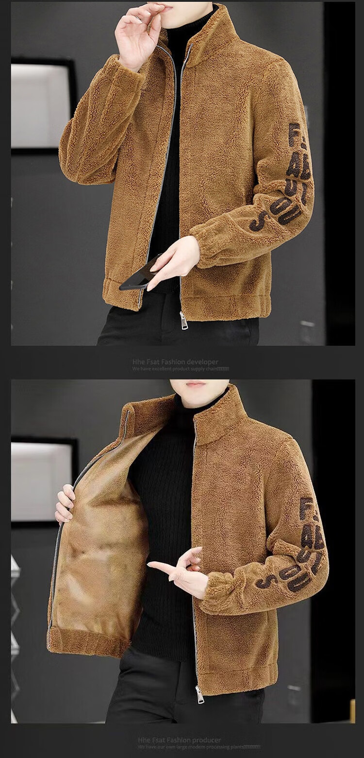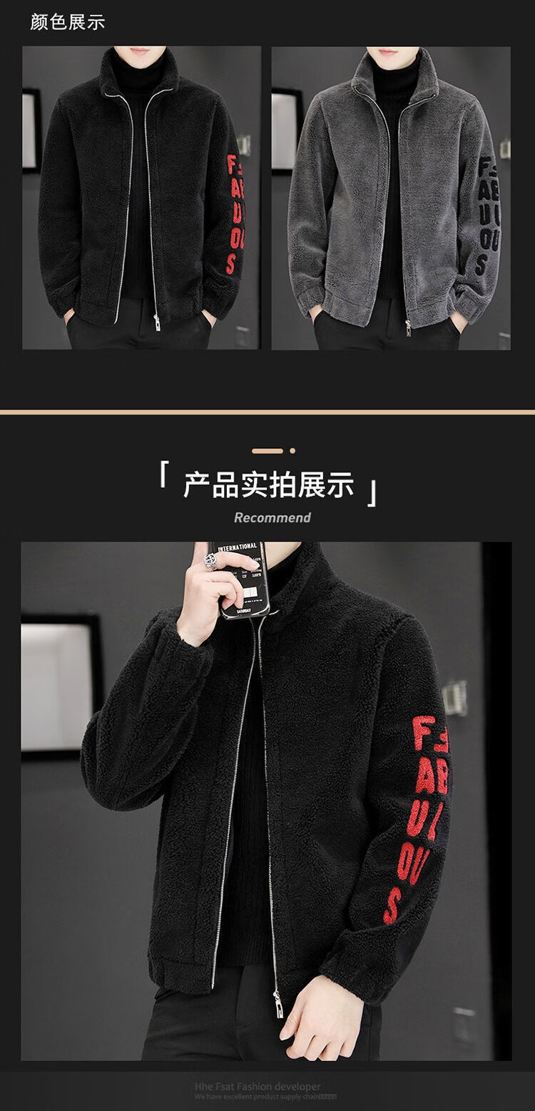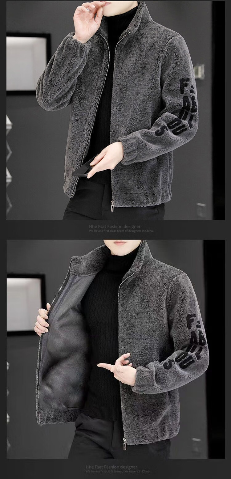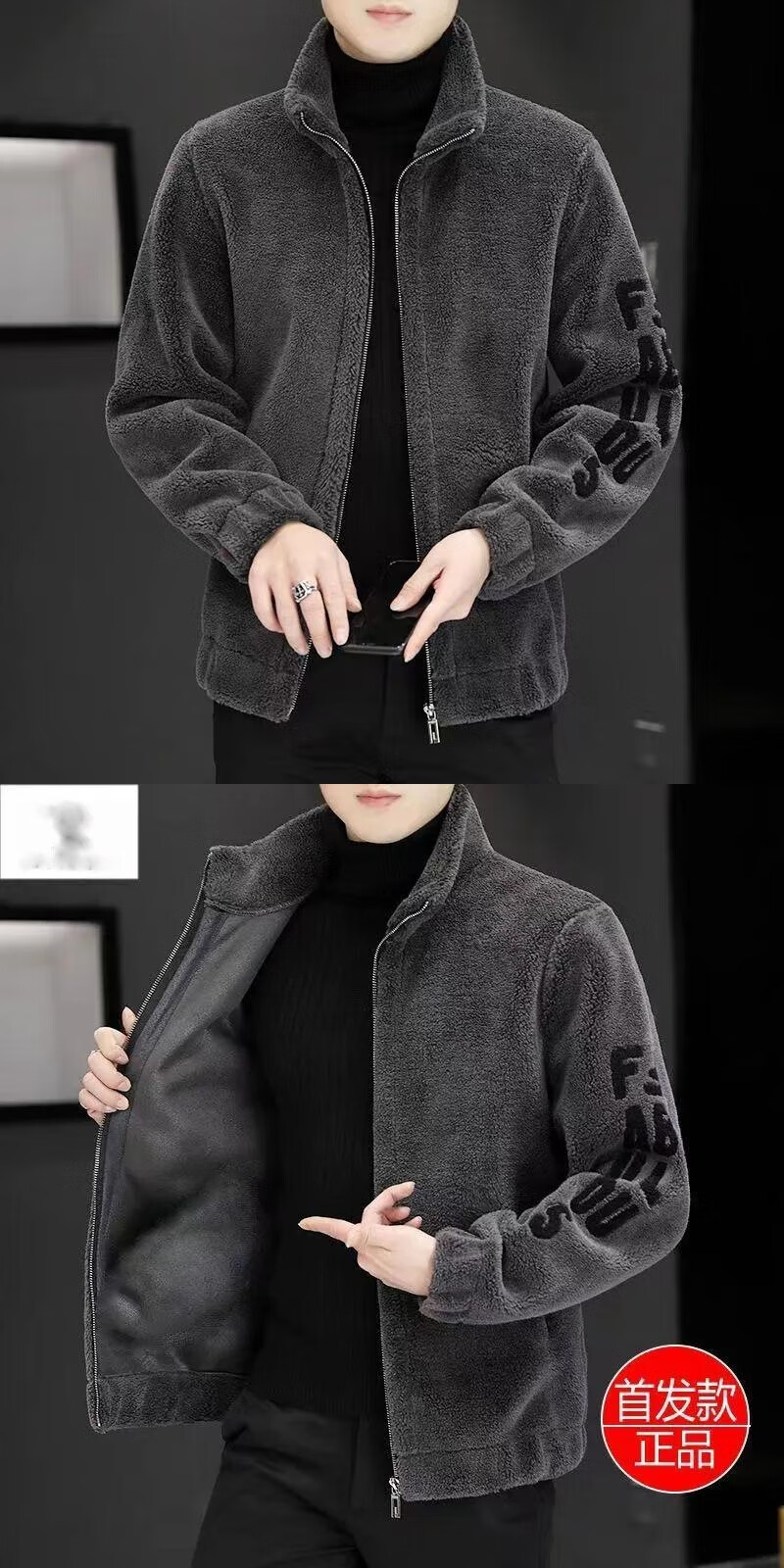 Pierre Cardin Fashionable Men's Jacket 2025 Autumn and Winter New Jacket Thick Warm Shearling Jacket Fur-in-Wool Gray 2XL Recommended 140-155Jin Jin equals 0.5 kg