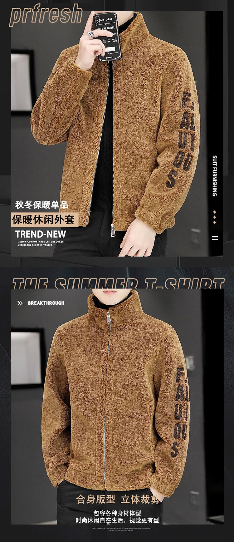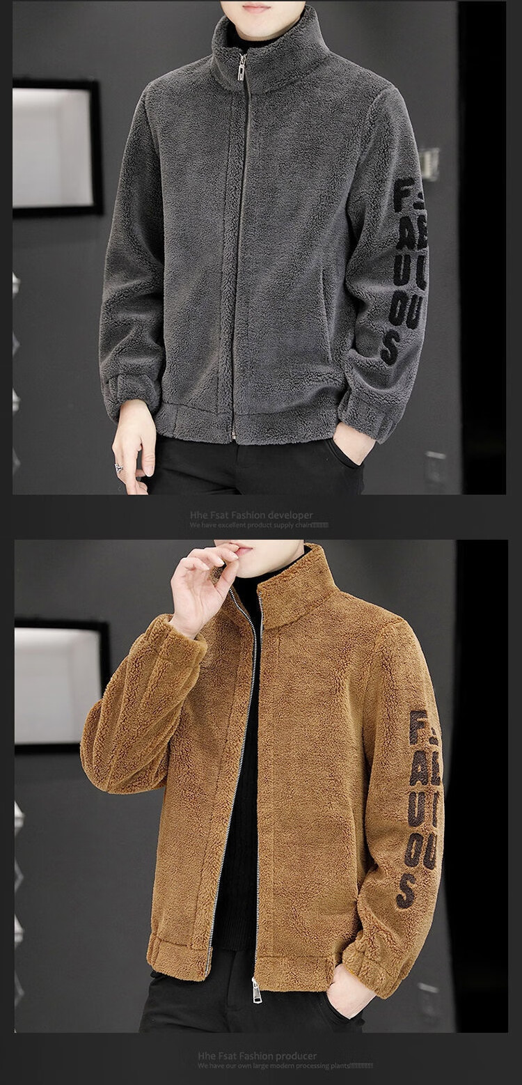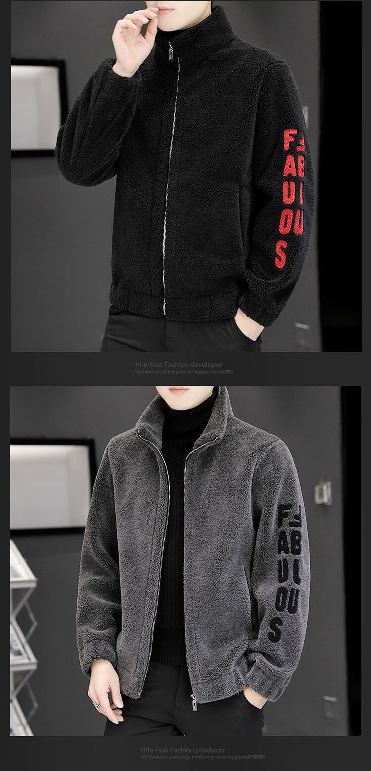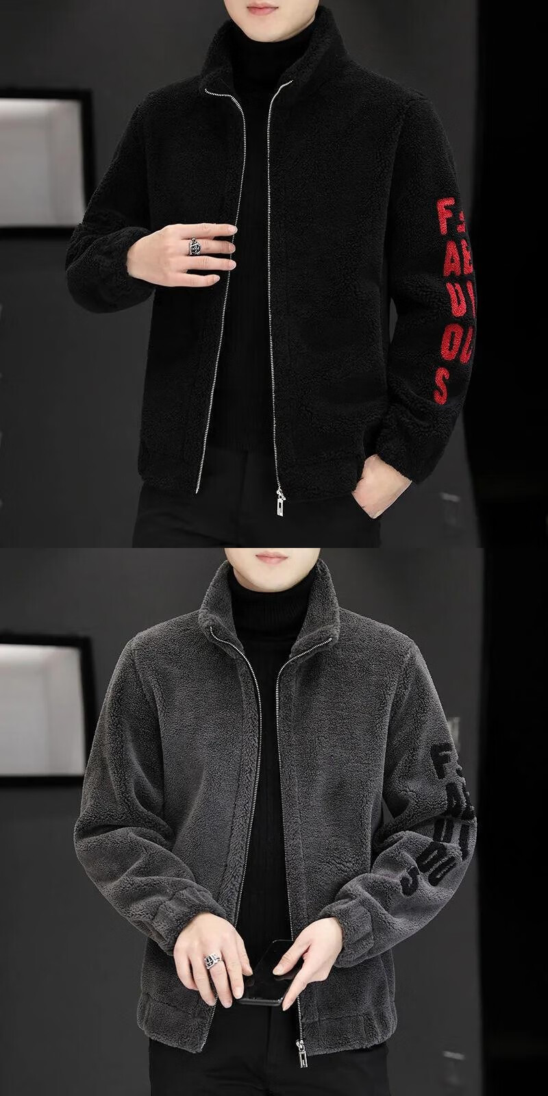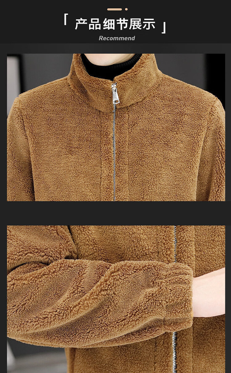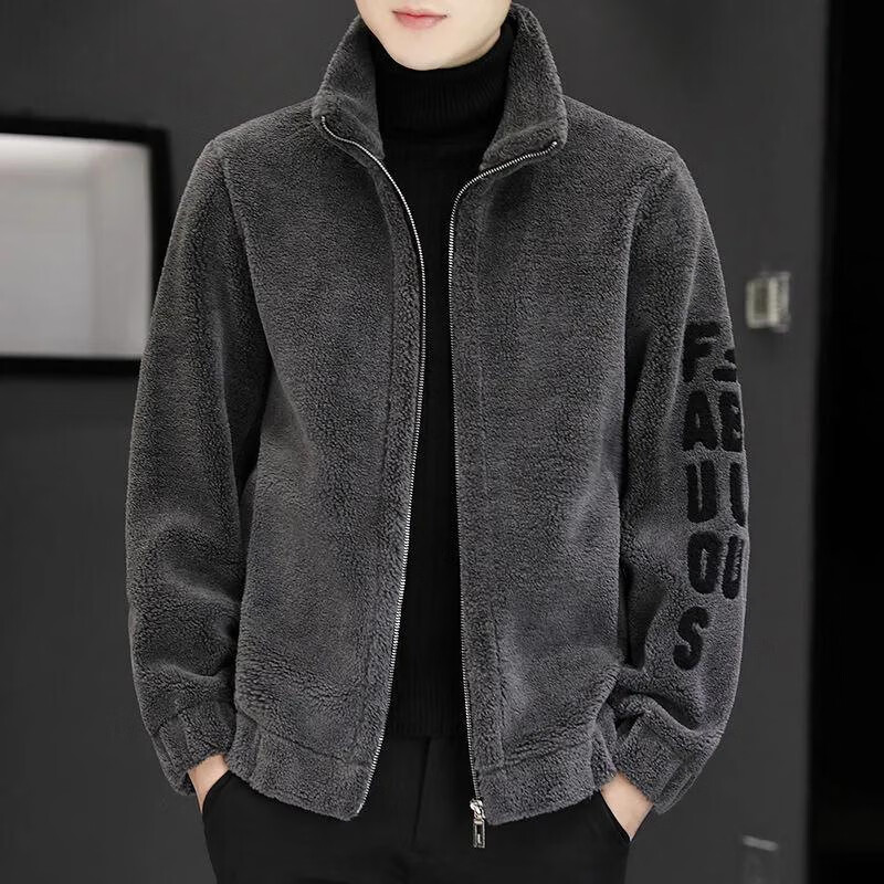 Pierre Cardin Fashionable Men's Jacket 2025 Autumn and Winter New Jacket Thick Warm Shearling Jacket Fur-in-Wool Gray 2XL Recommended 140-155Jin Jin equals 0.5 kg