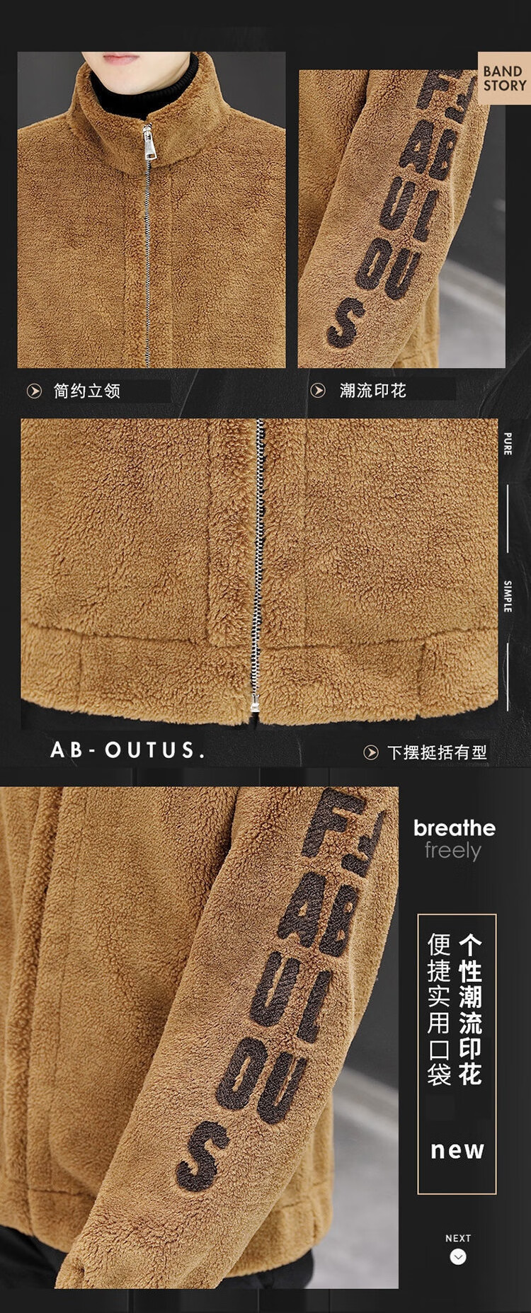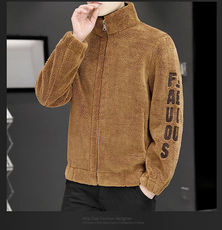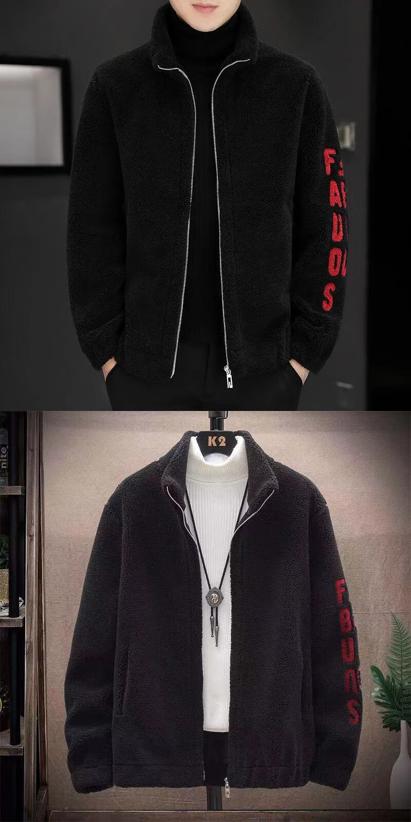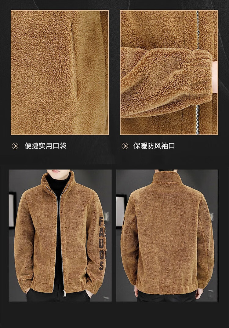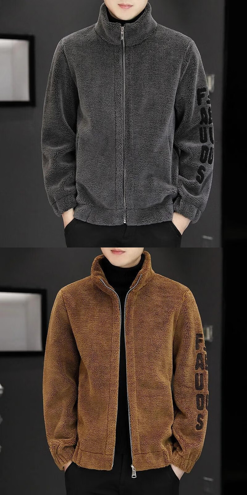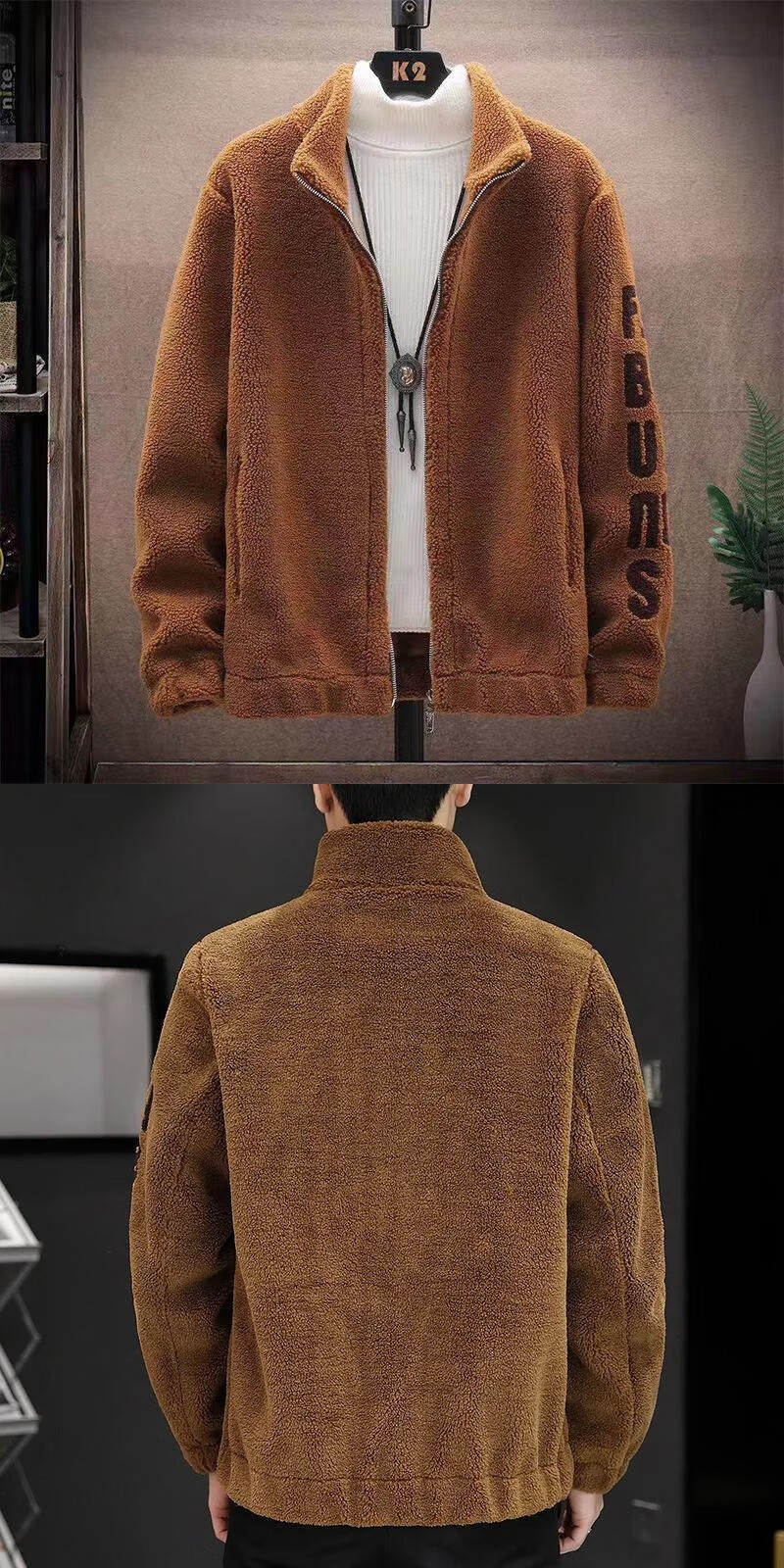 Pierre Cardin Fashionable Men's Jacket 2025 Autumn and Winter New Jacket Thick Warm Shearling Jacket Fur-in-Wool Gray 2XL Recommended 140-155Jin Jin equals 0.5 kg