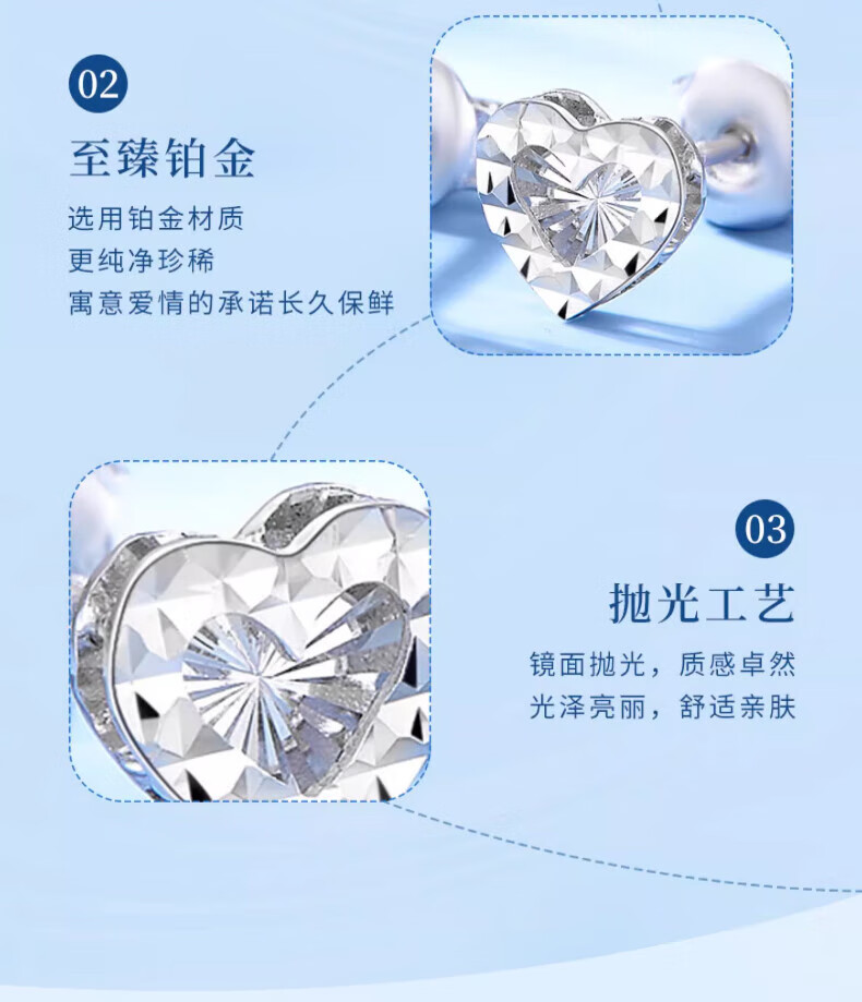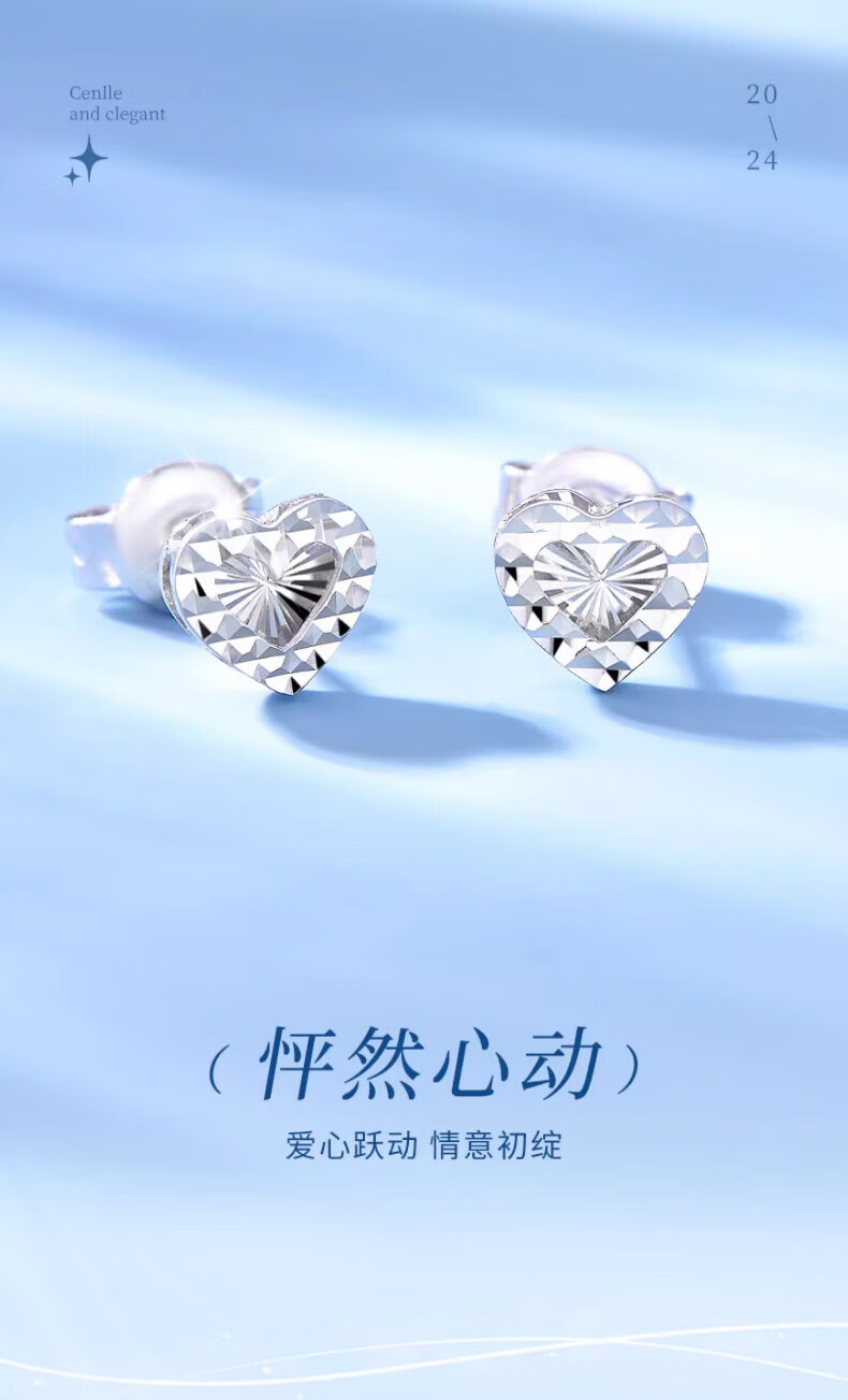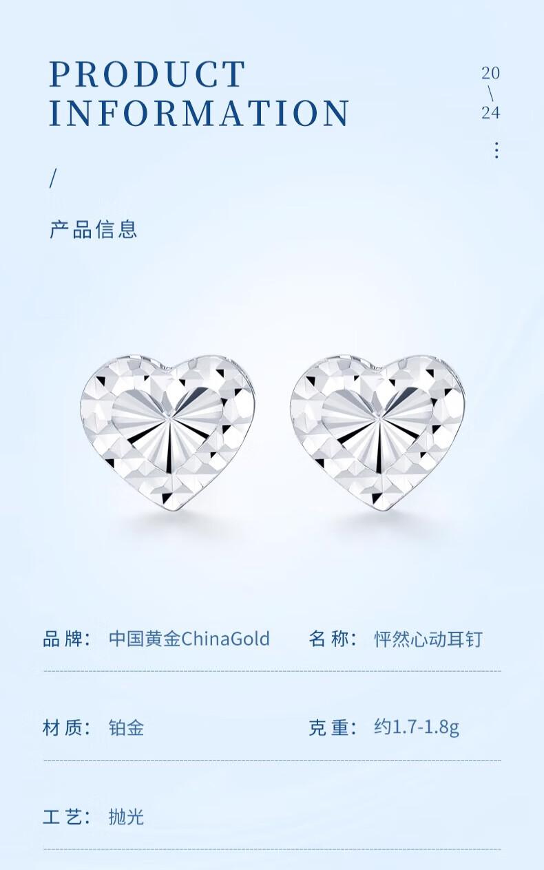 China Gold (CHINA GOLD) Love Platinum Earrings for Women PT950 Platinum Earrings Heart-shaped Earrings Wedding and Birthday Gifts for Girlfriends and Wife Platinum Love Earrings About 1.7g