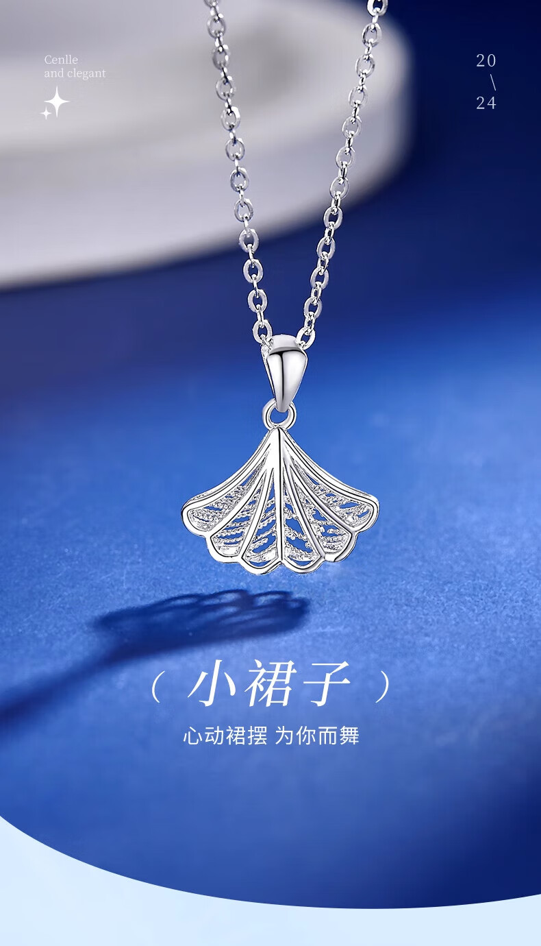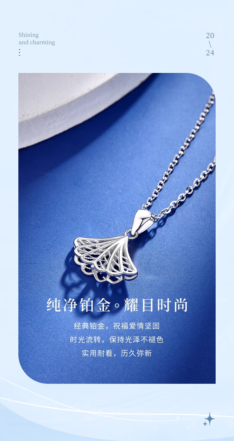 China Gold (CHINA GOLD) Small Skirt Platinum Pendant for Women PT950 Platinum Necklace Apricot Leaf Clavicle Chain Wedding and Birthday Gift for Girlfriend Small Skirt Platinum Pendant About 1.8g Free Silver Chain