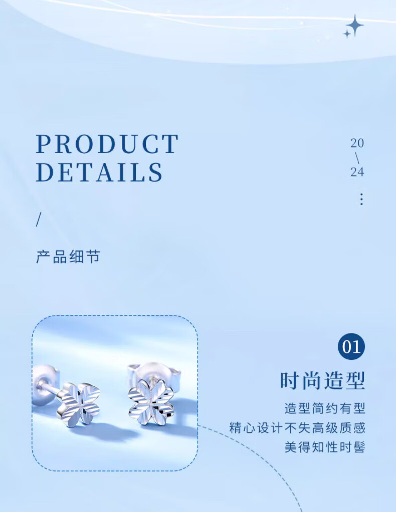China Gold (CHINA GOLD) four-leaf clover platinum earrings PT950 platinum earrings platinum earrings wedding birthday gift for girlfriend and wife platinum four-leaf clover earrings about 1.6g