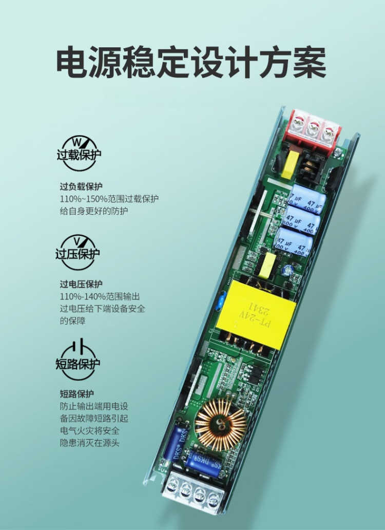 LED light box power supply 220 to 12v24v100w300w slim black diamond linear light strip transformer 24V400W glue filled diamond style