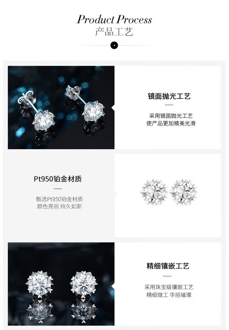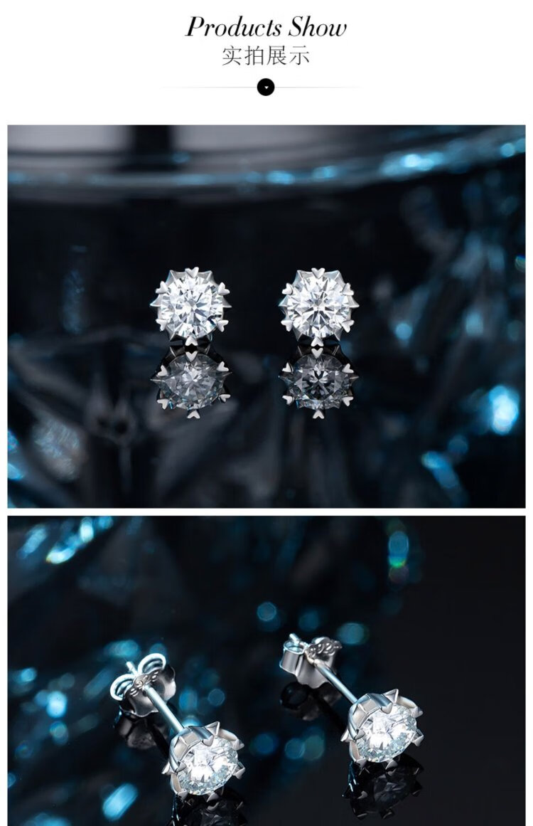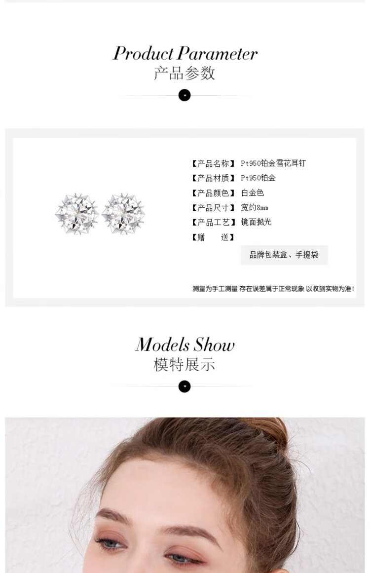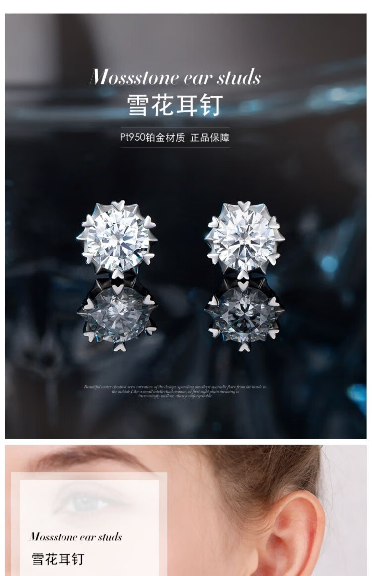 RHM platinum moissanite earrings for women PT950 light luxury and high-end snowflake earrings Christmas and Valentine's Day gifts for girlfriend Platinum moissanite earrings + certificate gift box