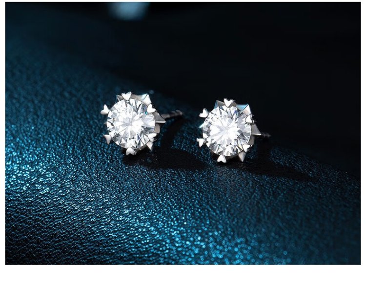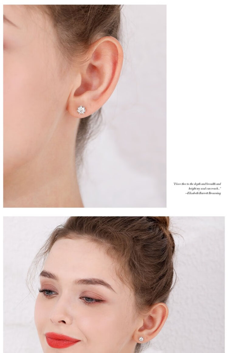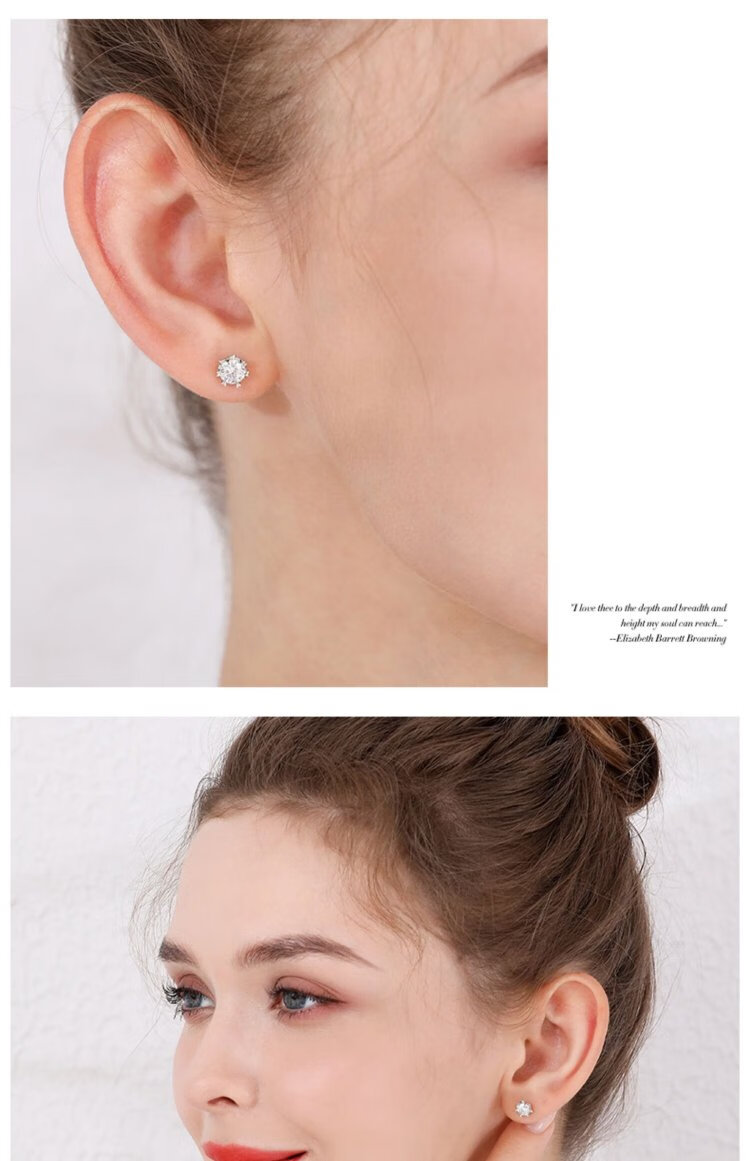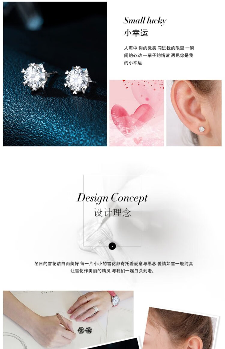 RHM platinum moissanite earrings for women PT950 light luxury and high-end snowflake earrings Christmas and Valentine's Day gifts for girlfriend Platinum moissanite earrings + certificate gift box