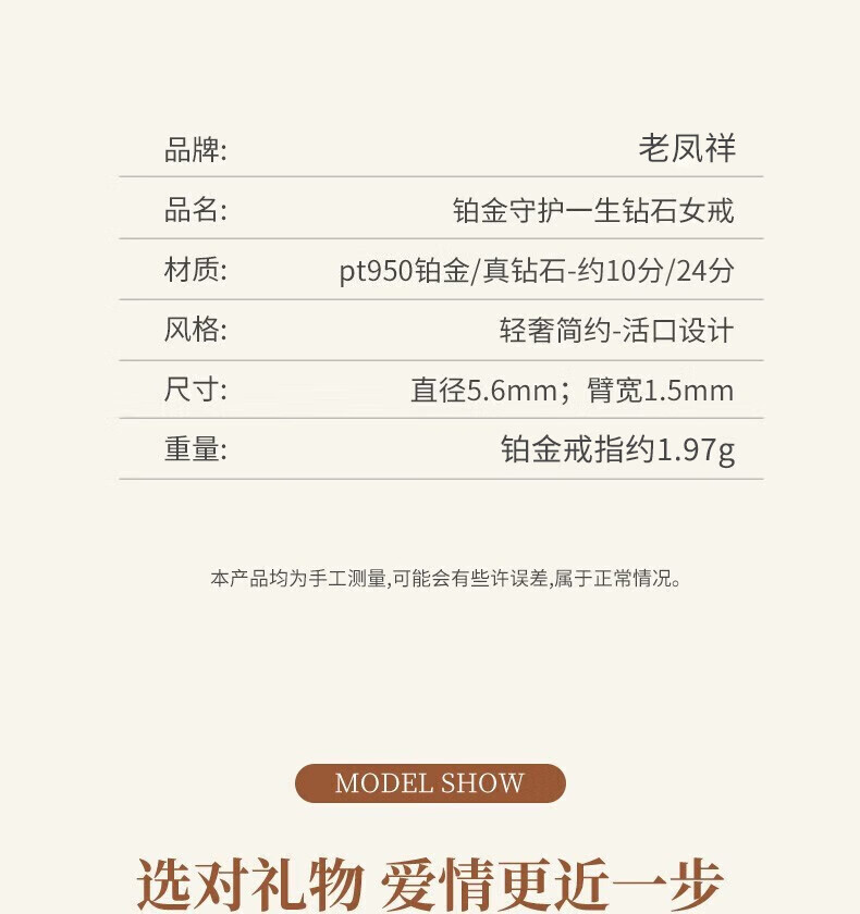 Lao Fengxiang platinum diamond ring for women, platinum engagement diamond ring, wedding anniversary gift for girlfriend and wife, platinum guardian lifetime ring for women - 10 points of real diamonds