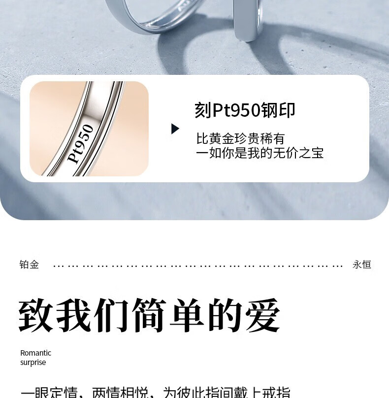 Lao Fengxiang platinum couple ring for a man and woman, platinum engagement ring, wedding anniversary gift for girlfriend and wife's birthday, platinum plain ring couple ring/engraved