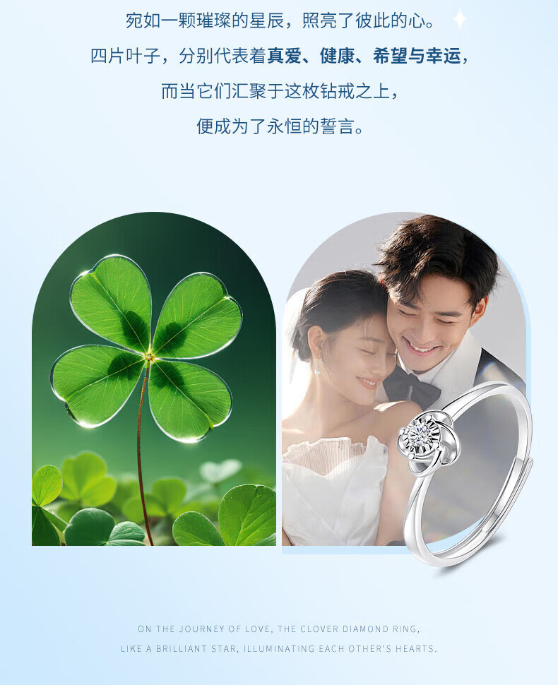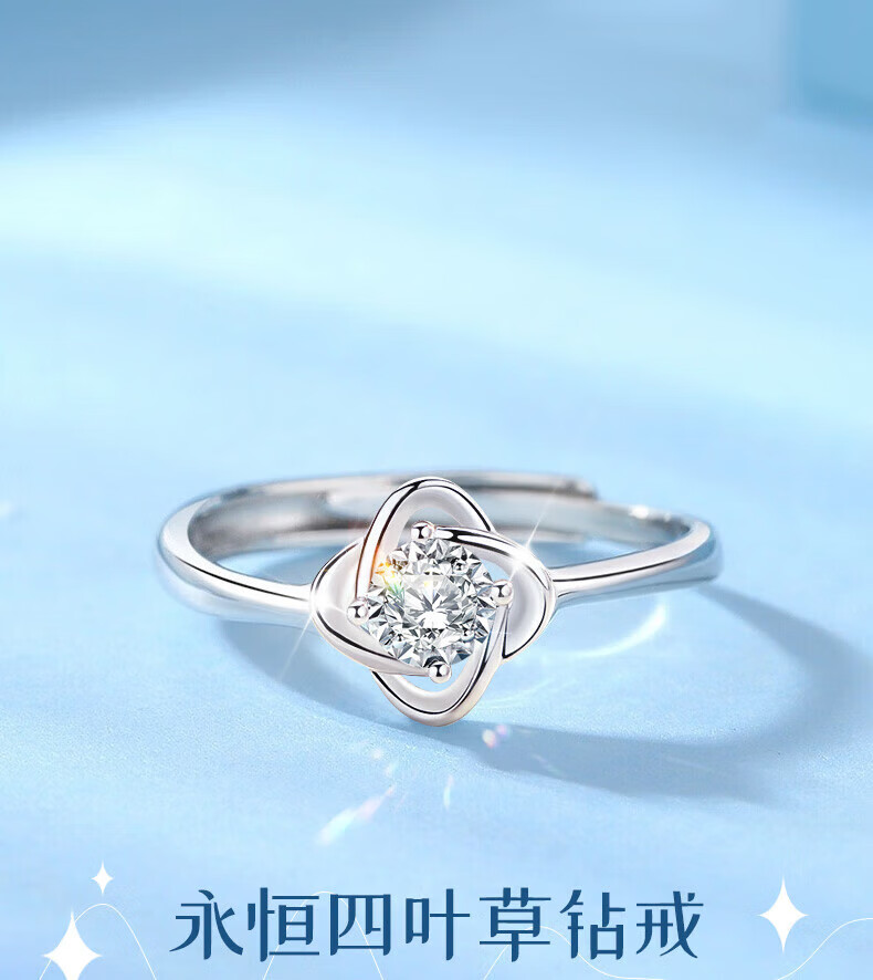 Lao Fengxiang four-leaf clover platinum ring for women platinum diamond proposal diamond ring wedding anniversary gift for girlfriend and wife platinum four-leaf clover ring-3 points real diamond