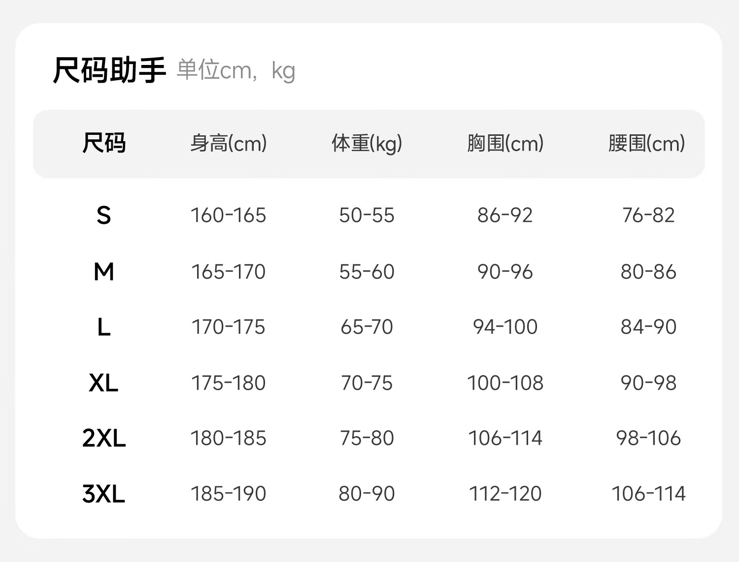 China (cm) 165 / 88-90 170 / 96-98 175 / 108-110 180 / 118-122 185 / 126-130