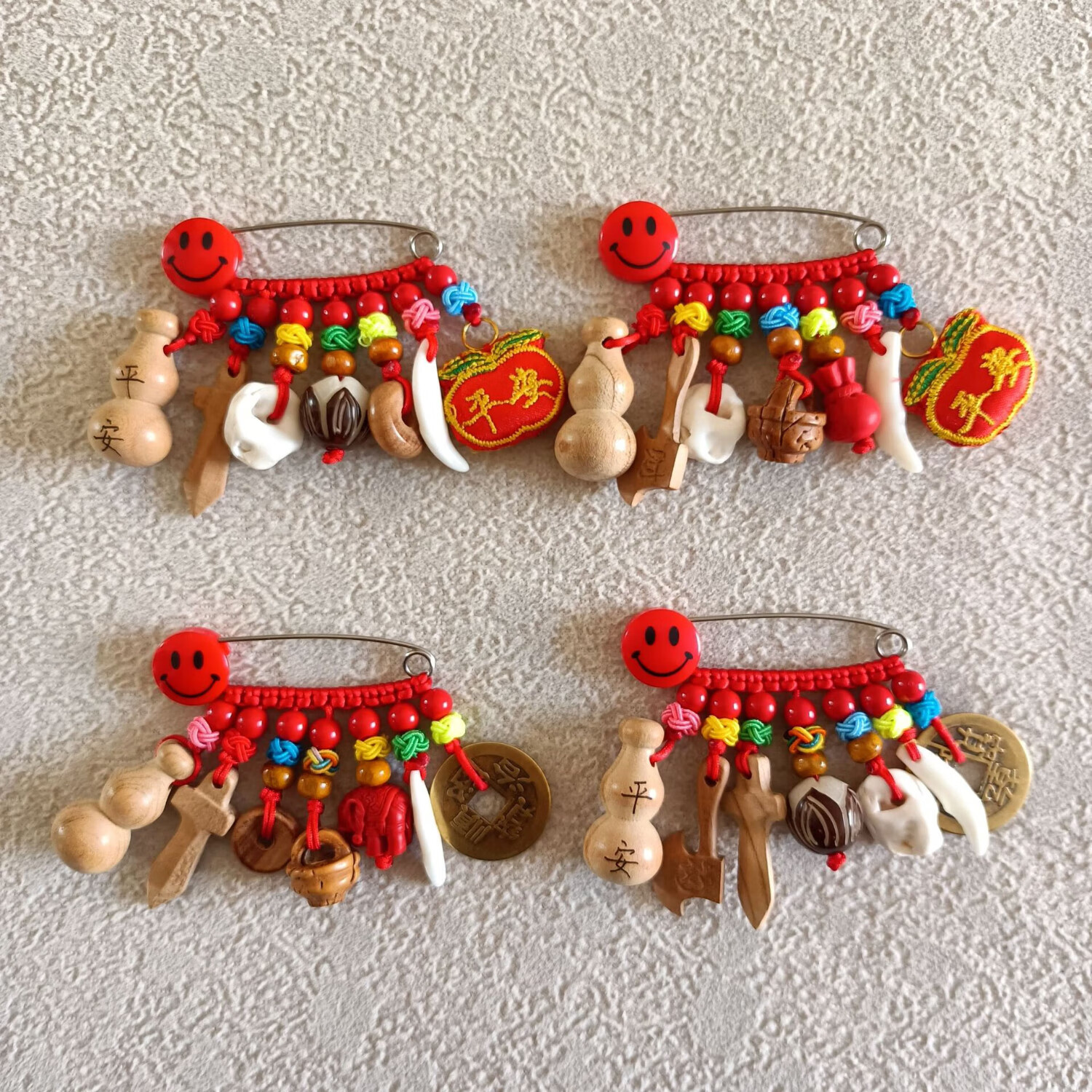 Beautifully made infant safety pin, baby anti-frightening artifact, going out brooch, peach wood safety pendant jewelry, seven-piece bodhi copper coin pin, 1 pack