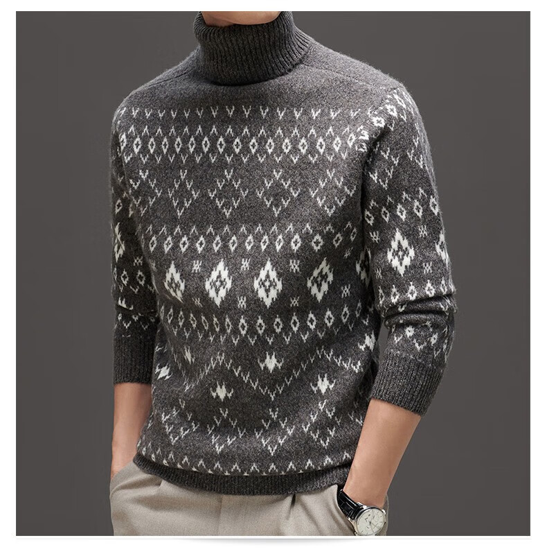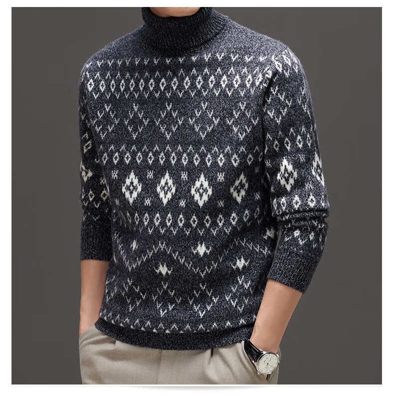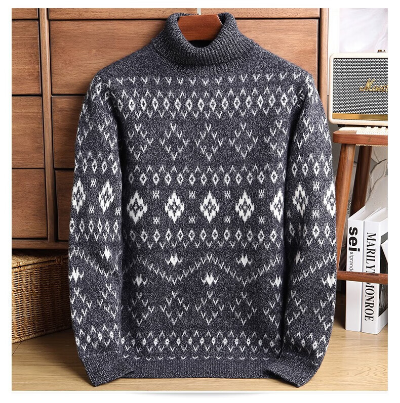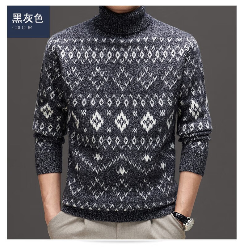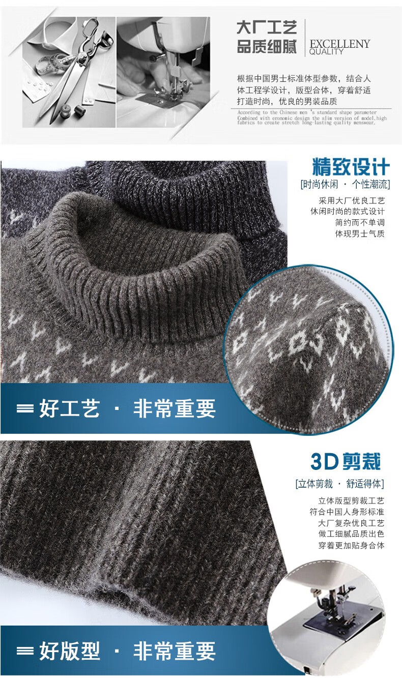 DVW thickened pure wool sweater for men in winter warm ethnic style turn-down turtleneck sweater luxury high-end brand base shirt black gray 100% pure wool S 165 reference weight 105-120Jin Jin is equal to 0.5 kg