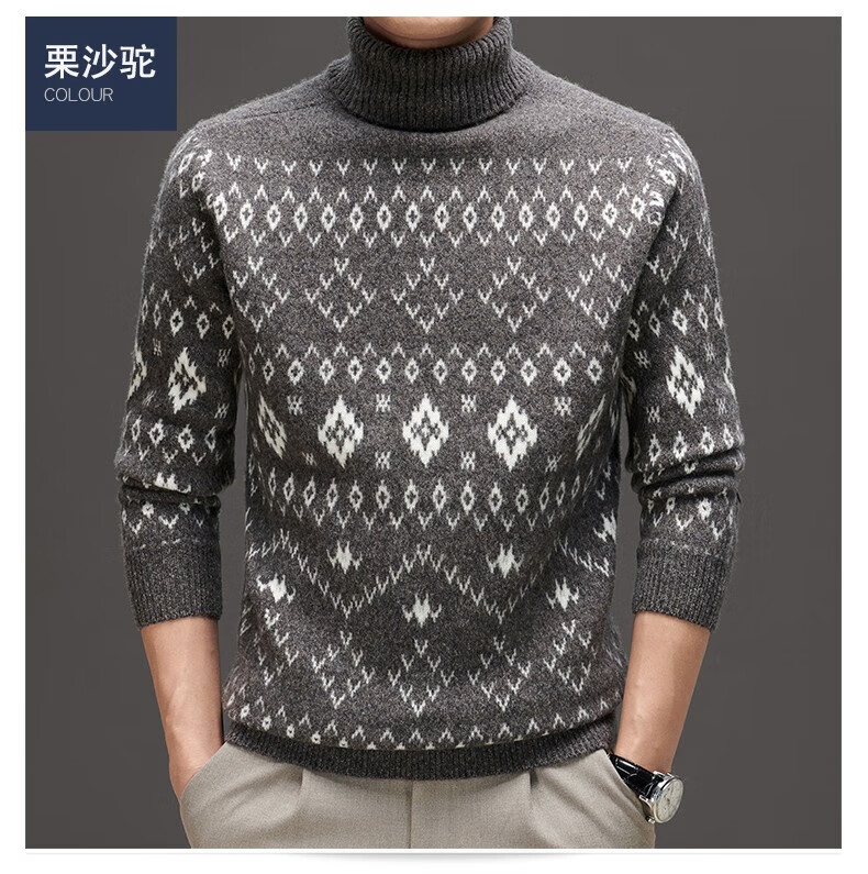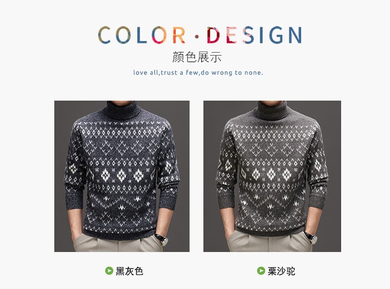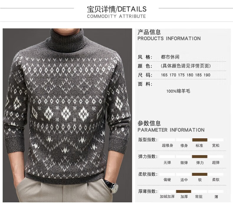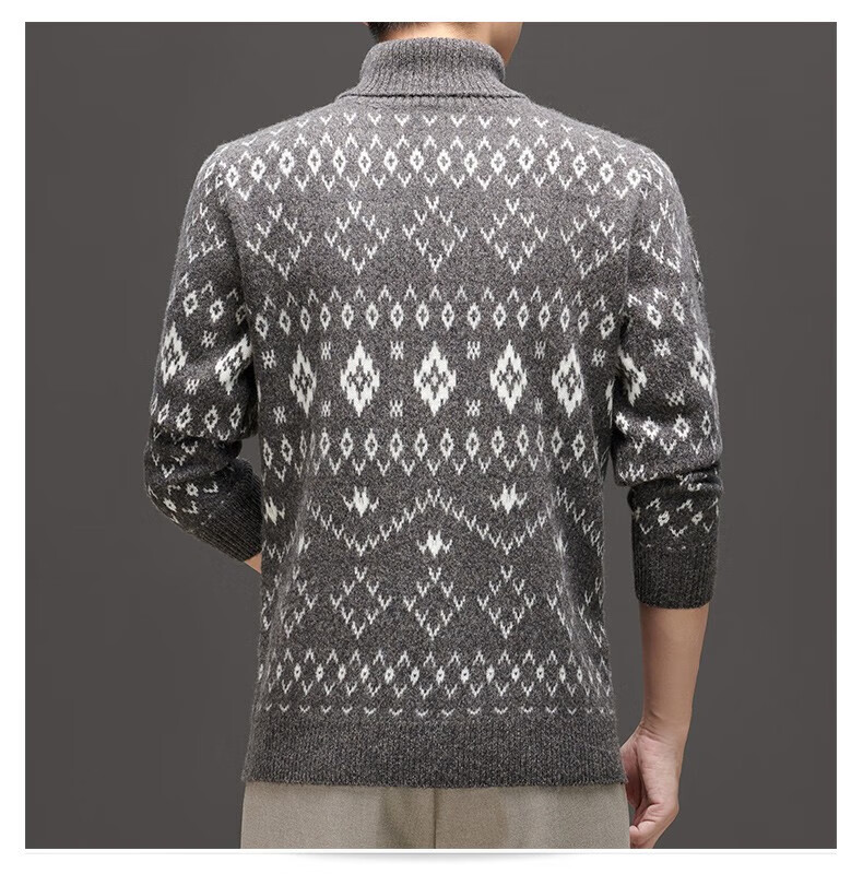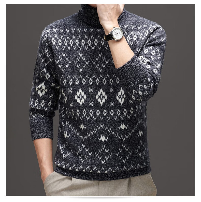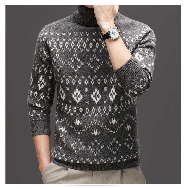 DVW thickened pure wool sweater for men in winter warm ethnic style turn-down turtleneck sweater luxury high-end brand base shirt black gray 100% pure wool S 165 reference weight 105-120Jin Jin is equal to 0.5 kg