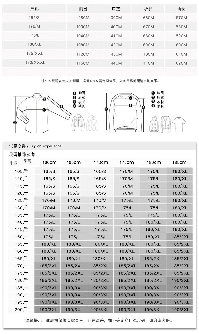 China (cm) 165 / 88-90 170 / 96-98 175 / 108-110 180 / 118-122 185 / 126-130