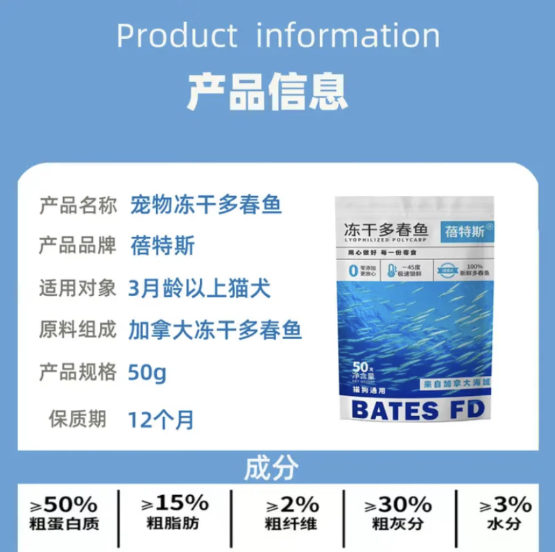 OIMG Betters Polyporus Freeze-dried Pet Cats and Dogs Teeth Molar Snacks Supplement Fish Oil Beauty Hair Nutrition Small Dried Fish Freeze-Dried Polyporus 5 Packs