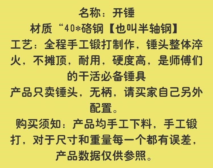 Zhehongdi hand-forged hammer head duckbill fitter's hammer blacksmith's hammer open hammer masonry hammer flat mouth square hammer open hammer head 3.5 Jin Jin is equal to about 0.5 kg