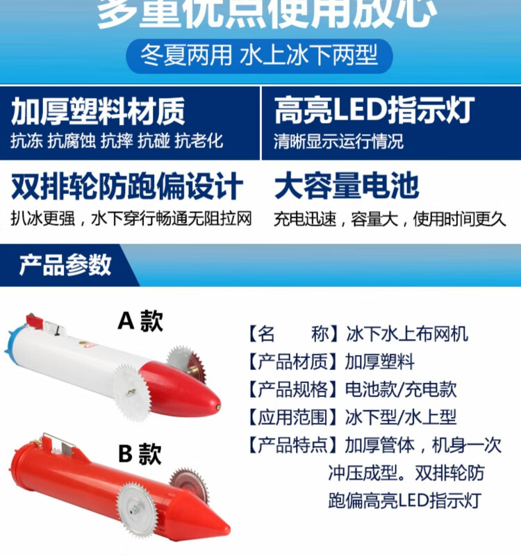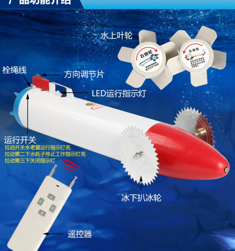 War water rat under ice threading net machine stringer net puller remote control net pull net fishing gear lead machine water mouse B type thickened plastic under ice water surface dual-use type electric