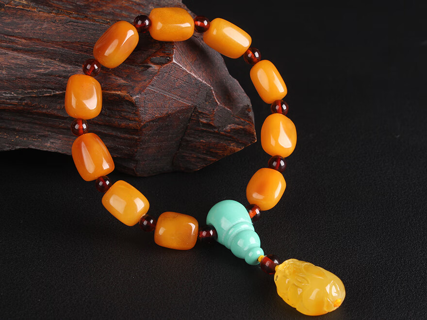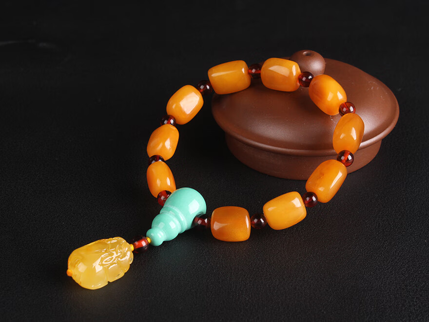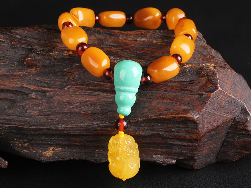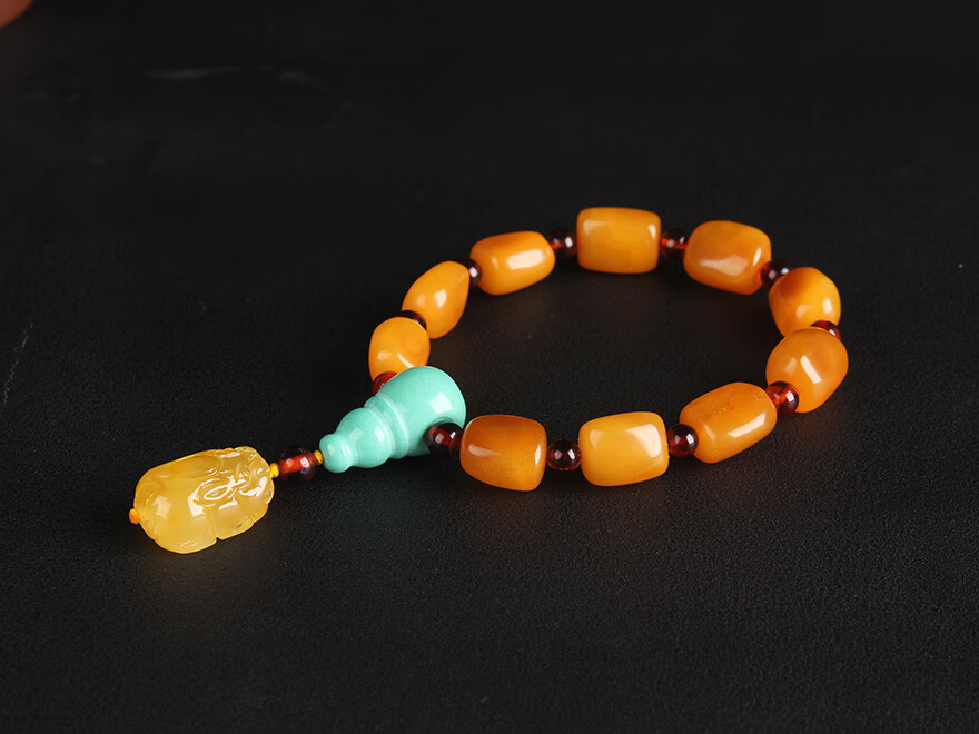 Minol boutique chicken fat yellow beeswax full wax DIY bracelet. With beeswax Pixiu weighs 13.45 grams