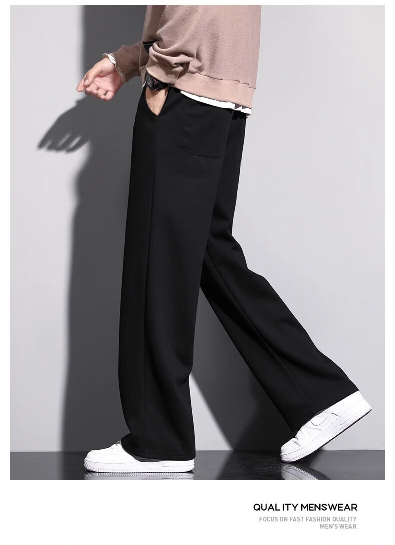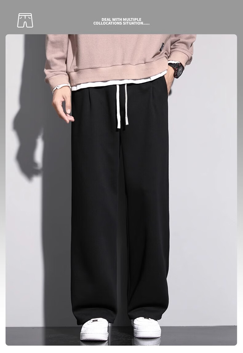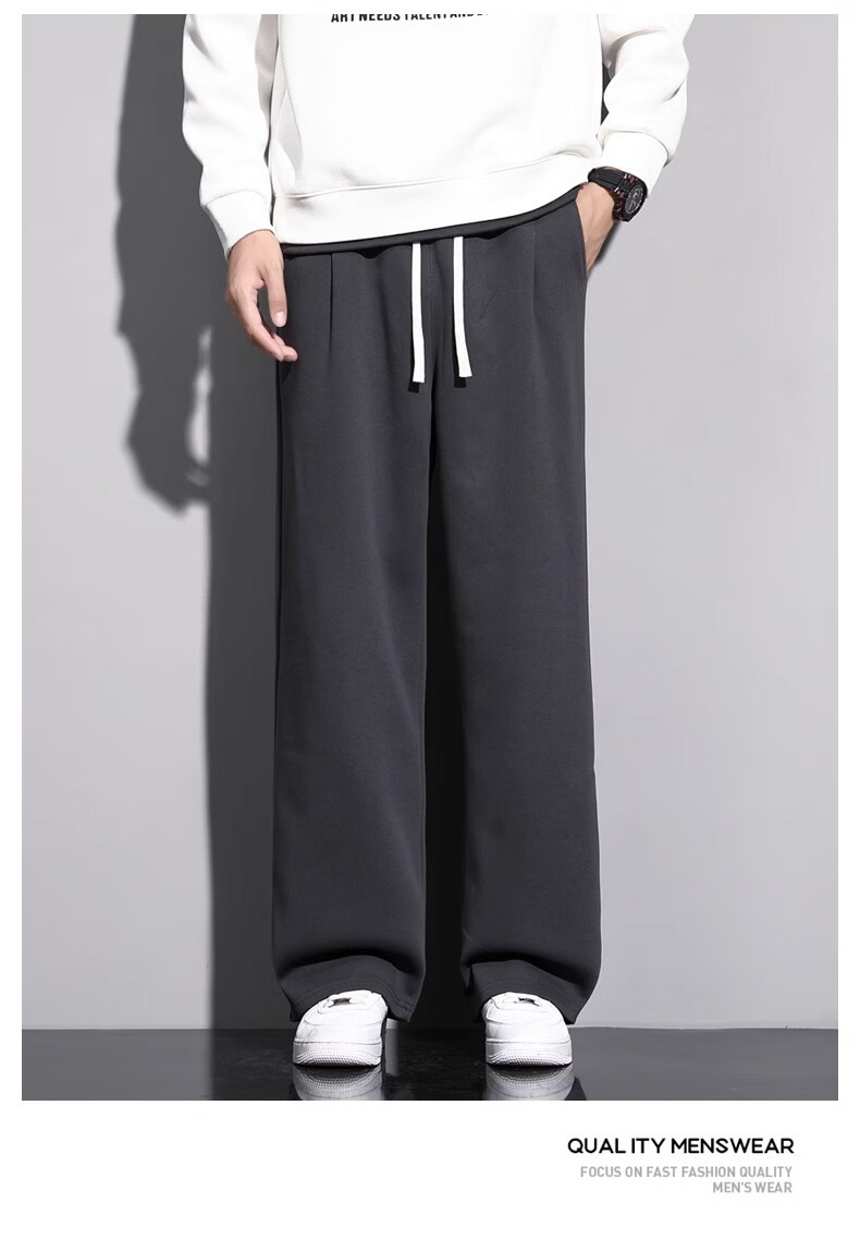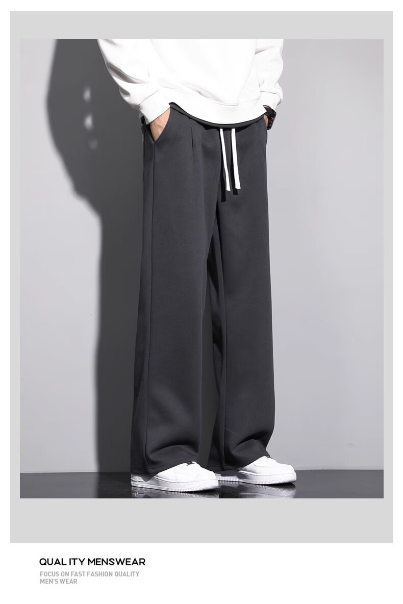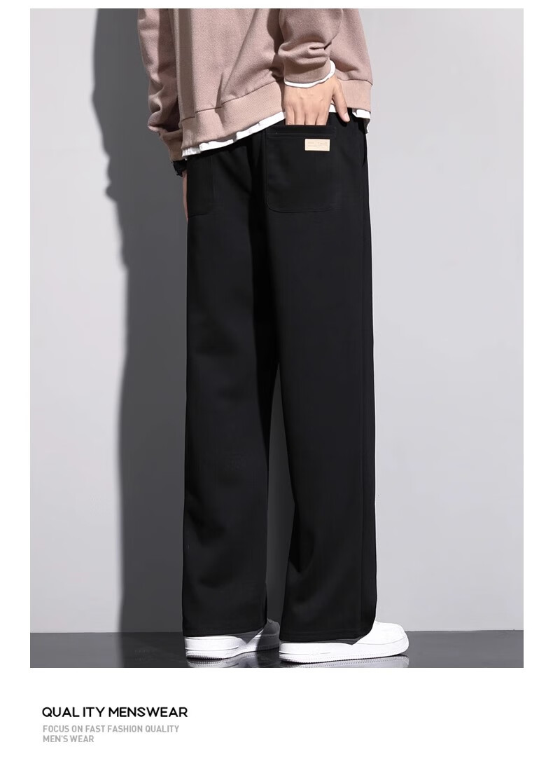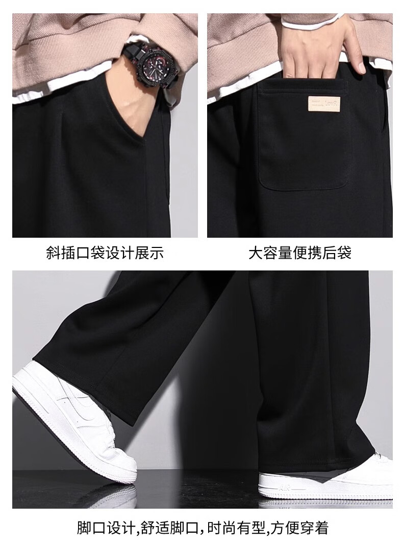 Lomon Casual Pants Men's 2025 Autumn New Versatile Trend Drape Loose Straight Plus Velvet Sports Wide Leg Long Pants Men 926 Black XL