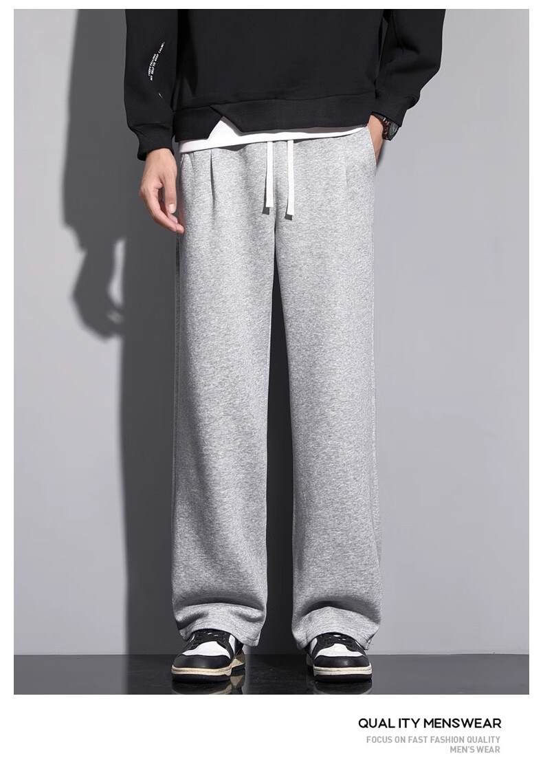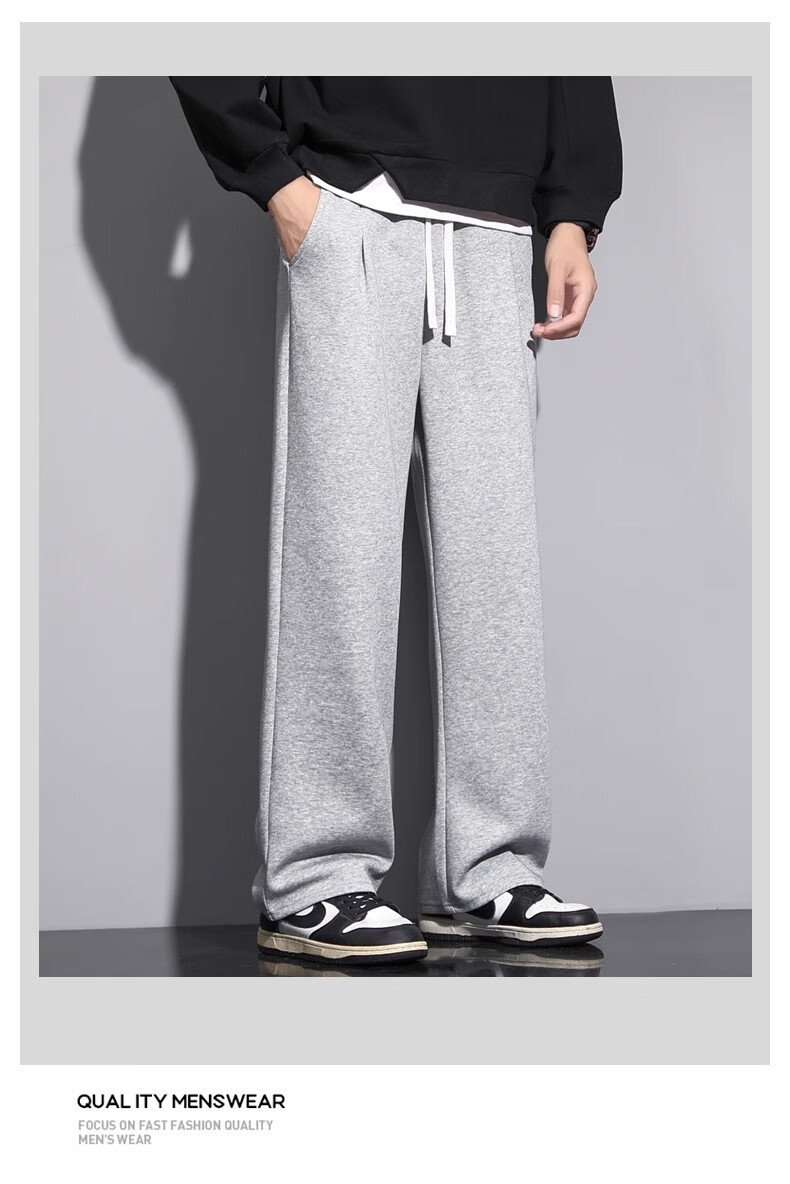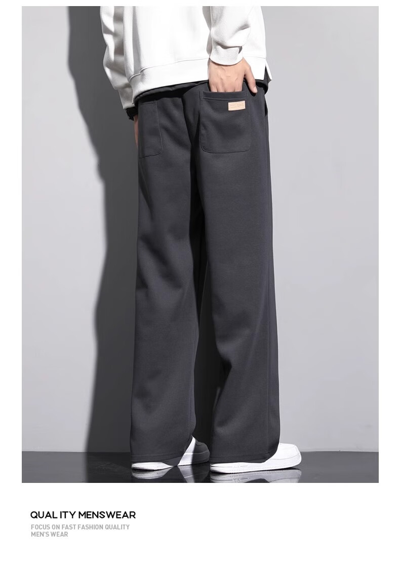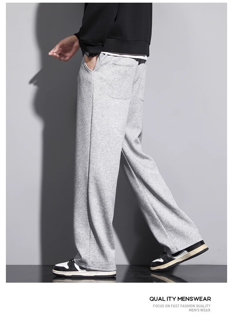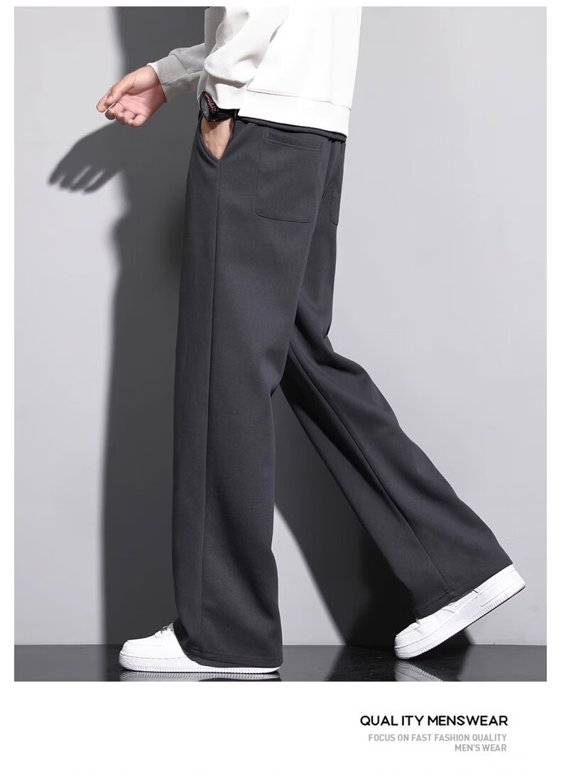 Lomon Casual Pants Men's 2025 Autumn New Versatile Trend Drape Loose Straight Plus Velvet Sports Wide Leg Long Pants Men 926 Black XL