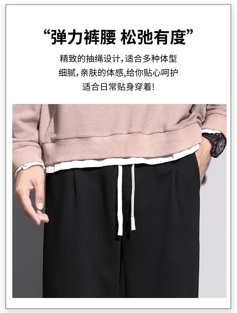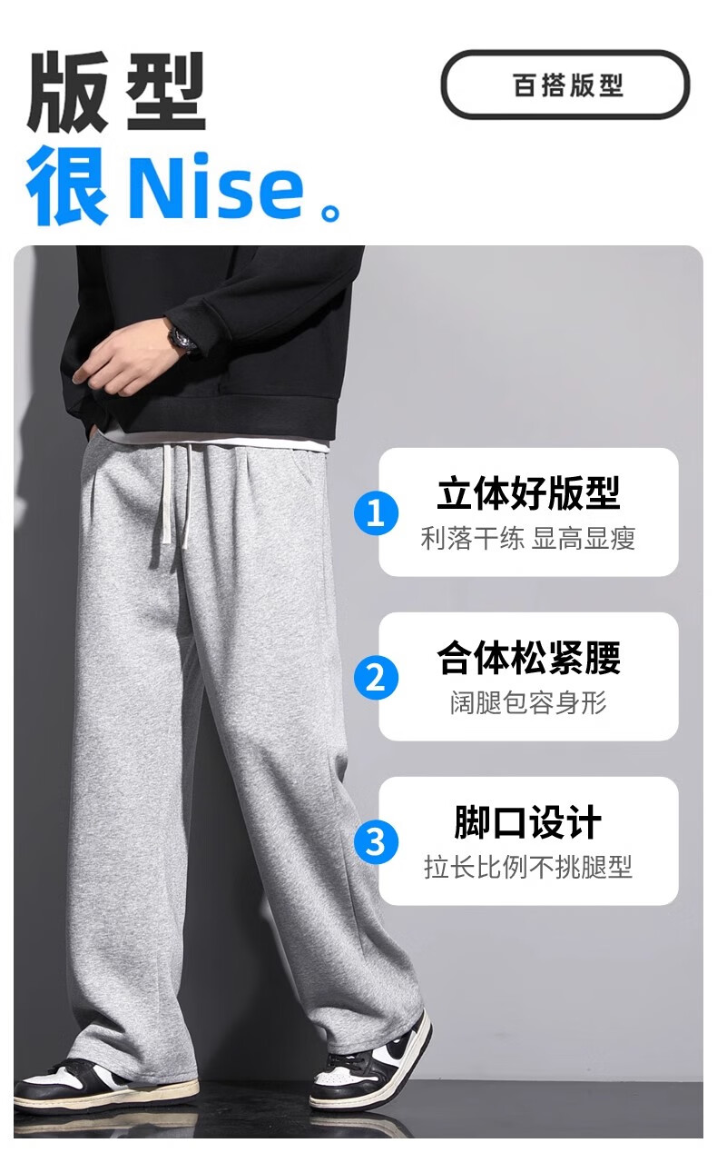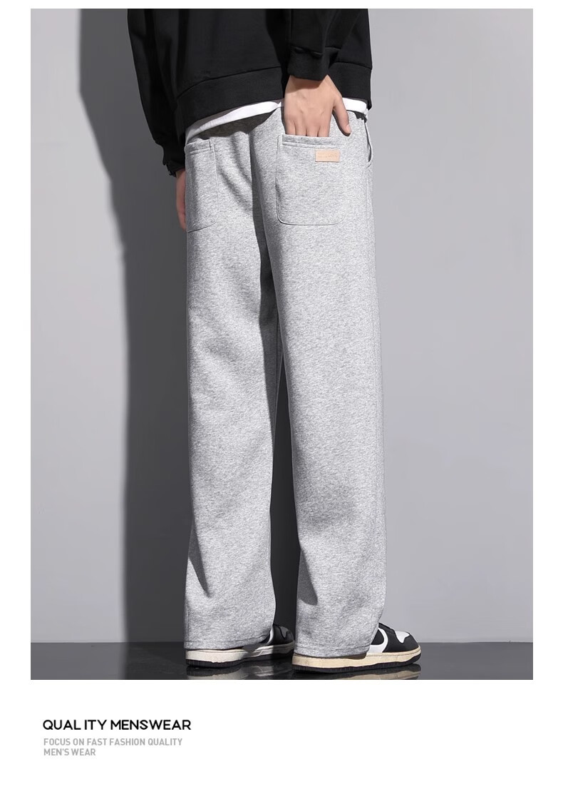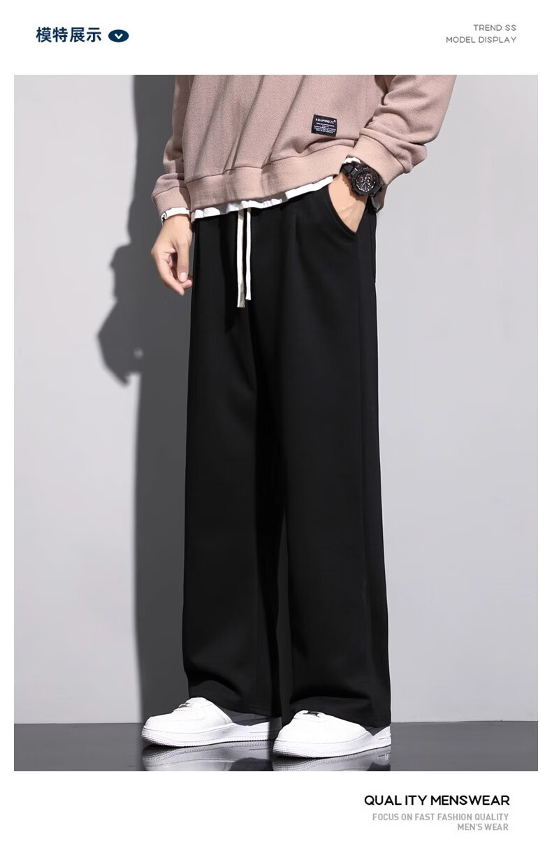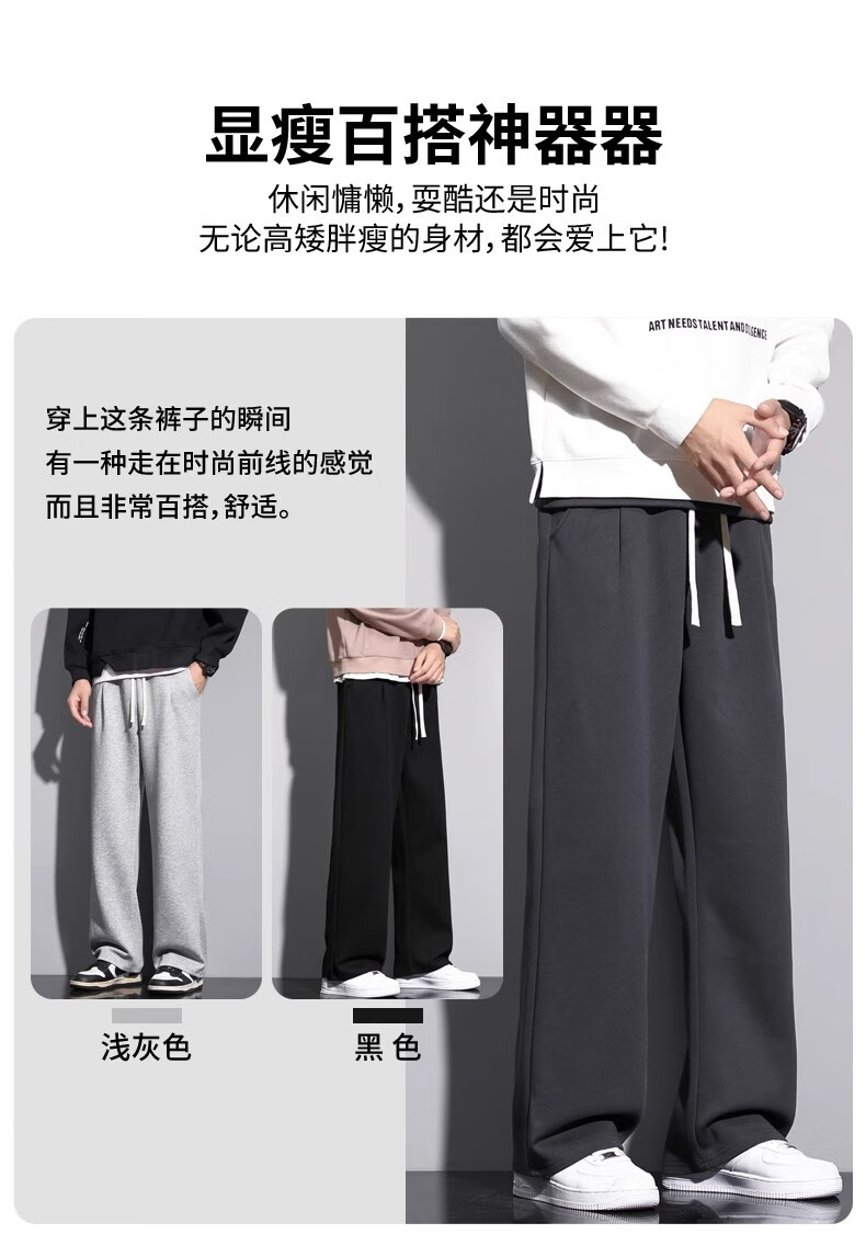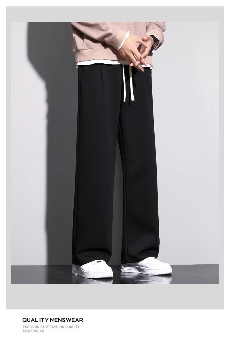Lomon Casual Pants Men's 2025 Autumn New Versatile Trend Drape Loose Straight Plus Velvet Sports Wide Leg Long Pants Men 926 Black XL