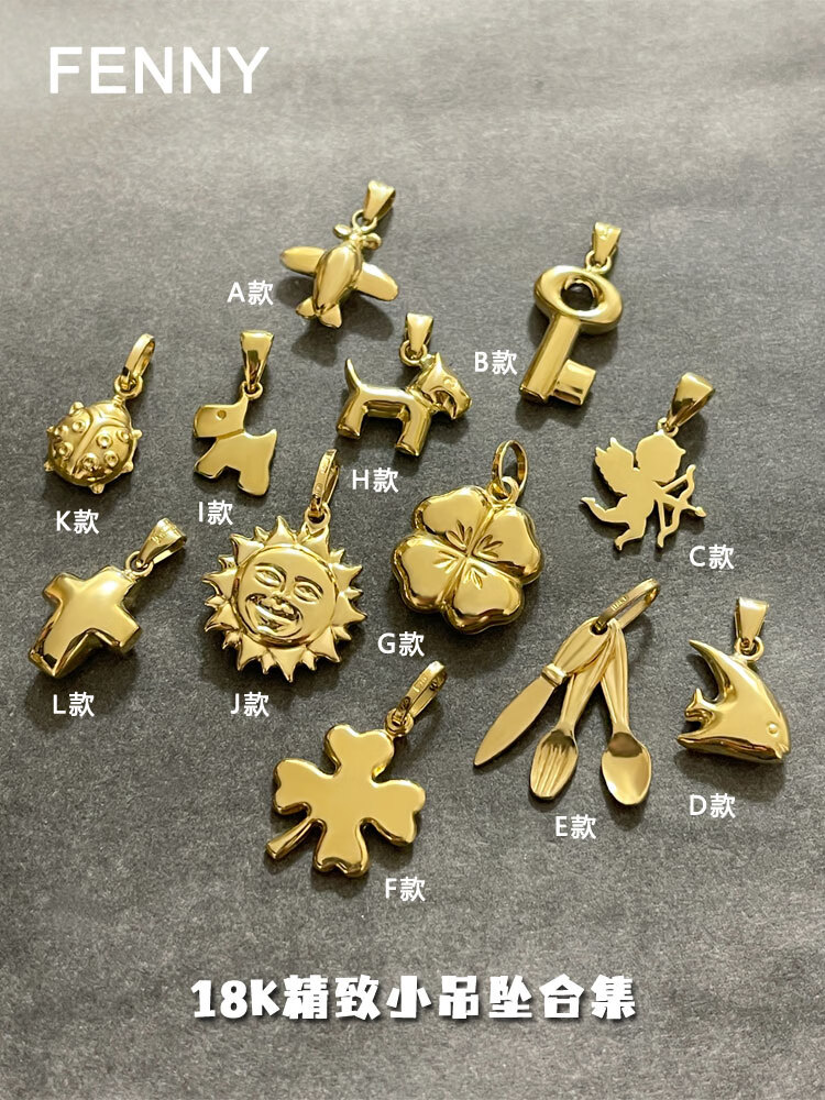 Caizhi FENNY jewelry 18K gold fashion small drop collection exquisite pendant necklace pendant bracelet pendant for men and women A style small plane double-sided pendant
