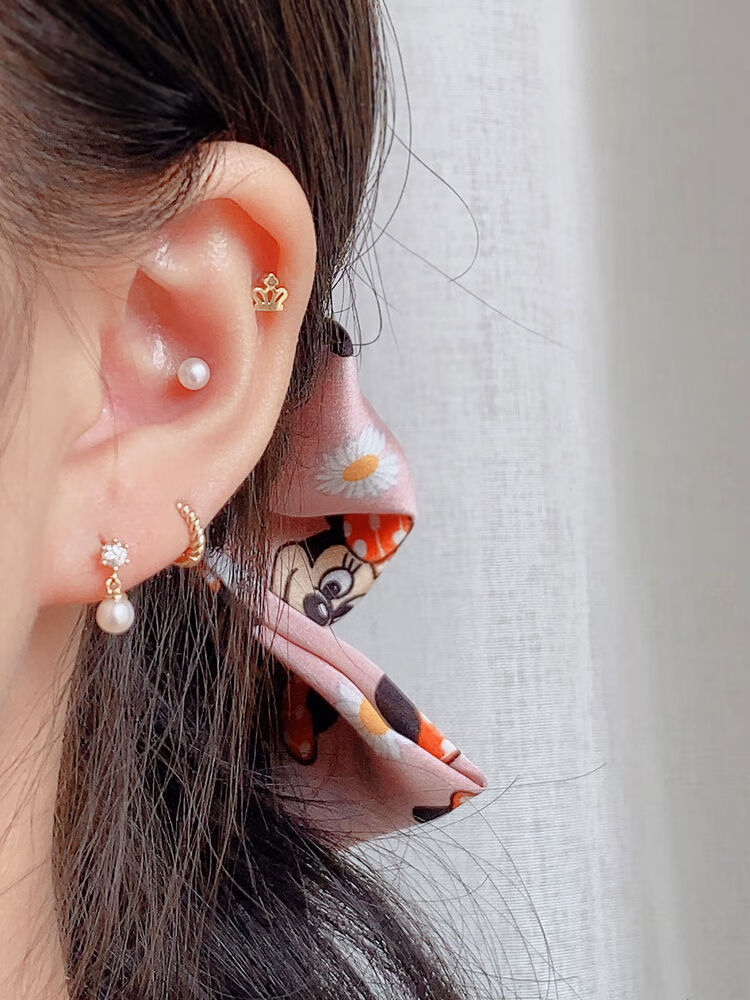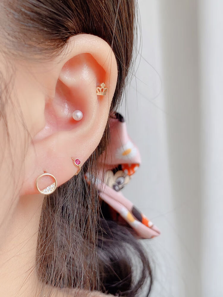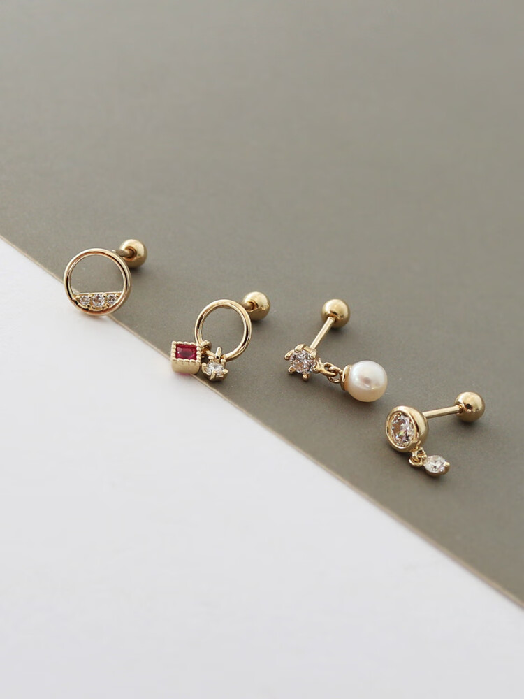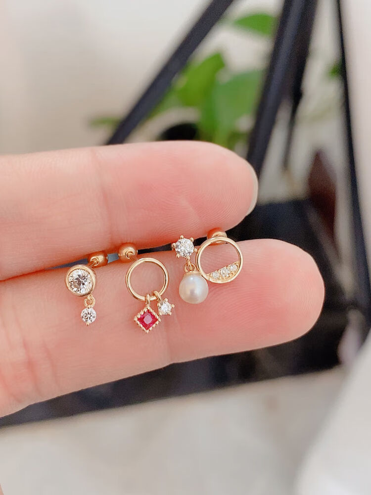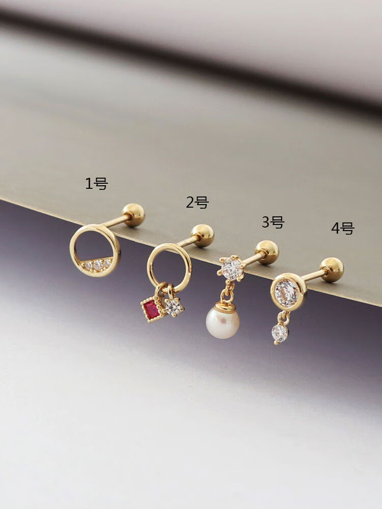 Caizhi temperament Korean 14K/10K gold earrings round diamond pearl pendant ring ear bone K gold screw screw earrings for women No. 2 ring pendant square diamond one 10k gold