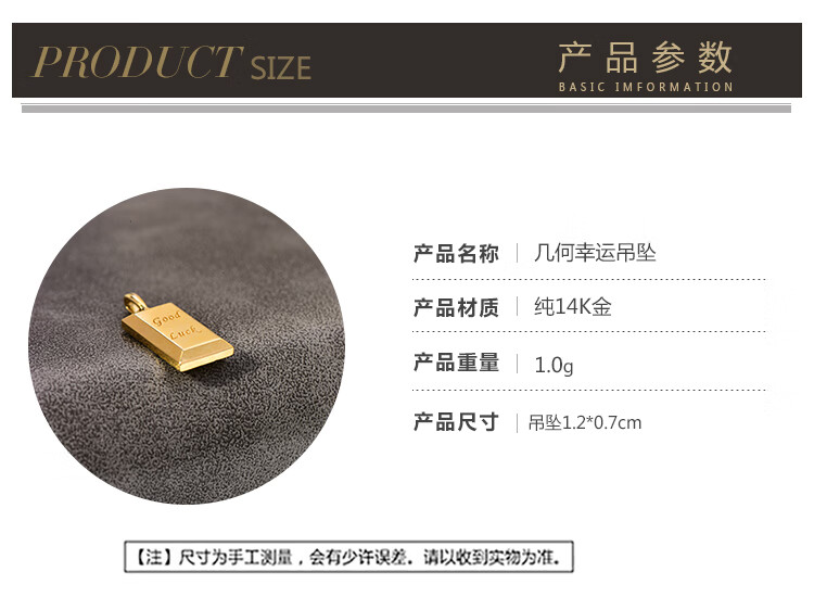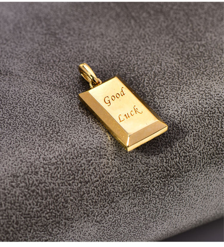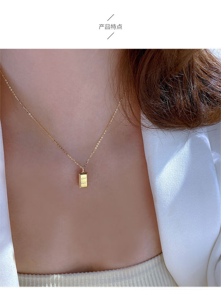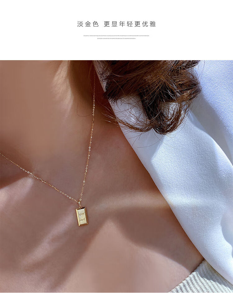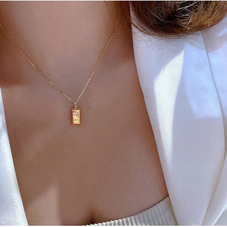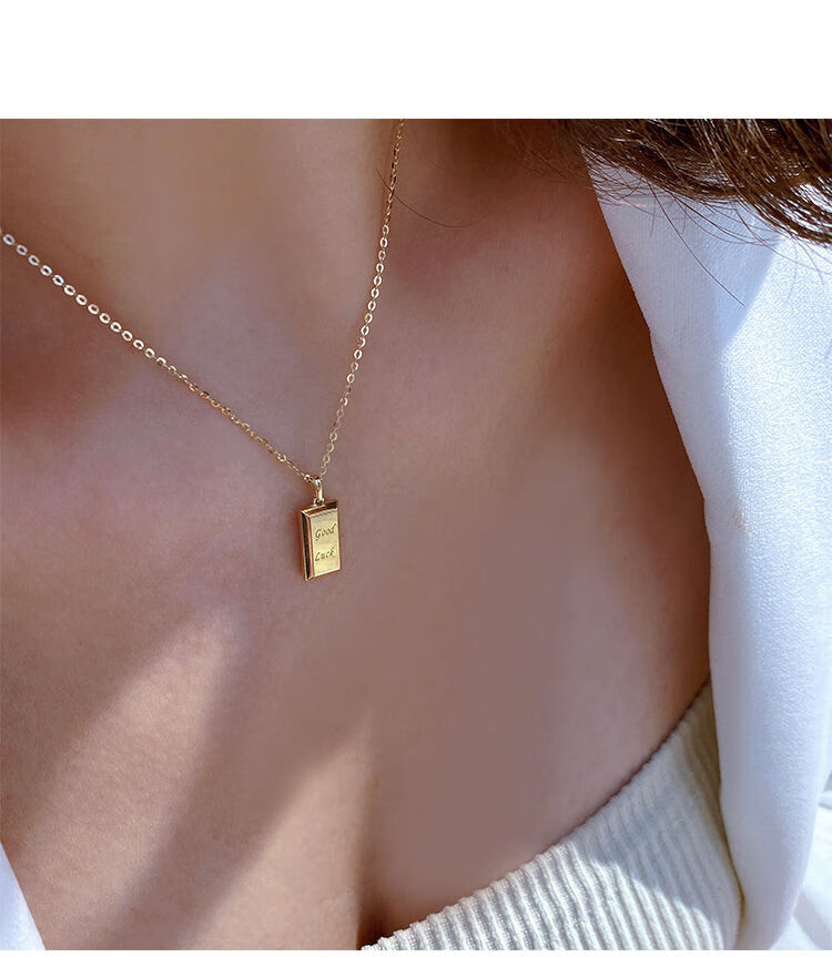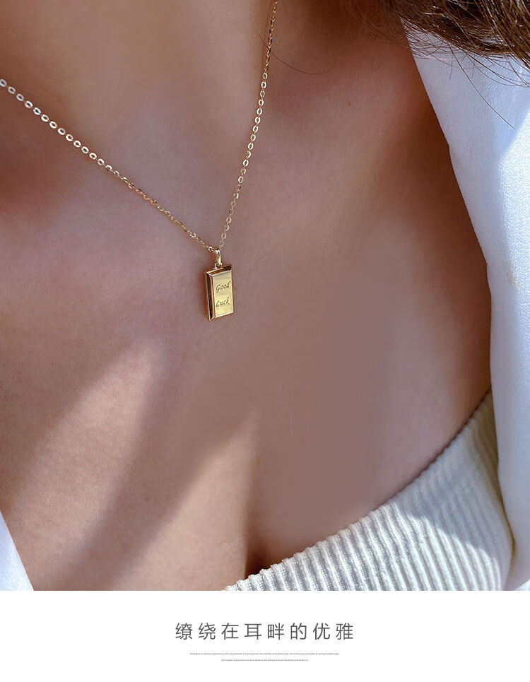 Caizhi Korean popular 14k gold necklace for women simple geometric gold brick letters exquisite plain gold clavicle pendant pendant