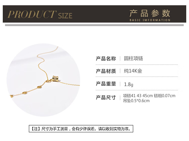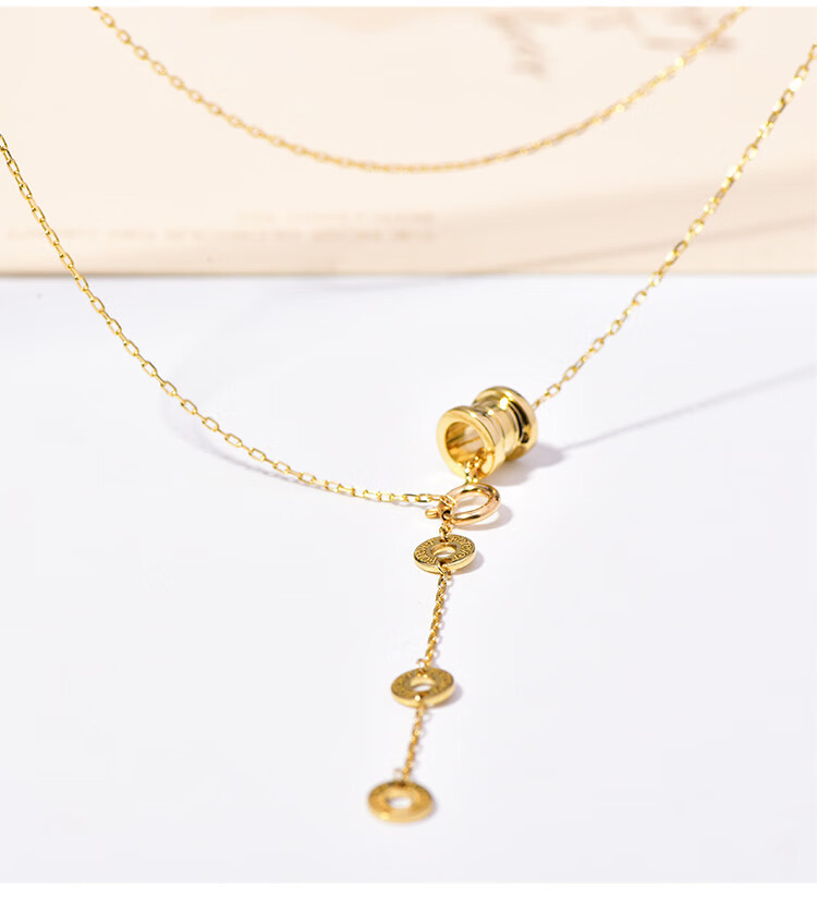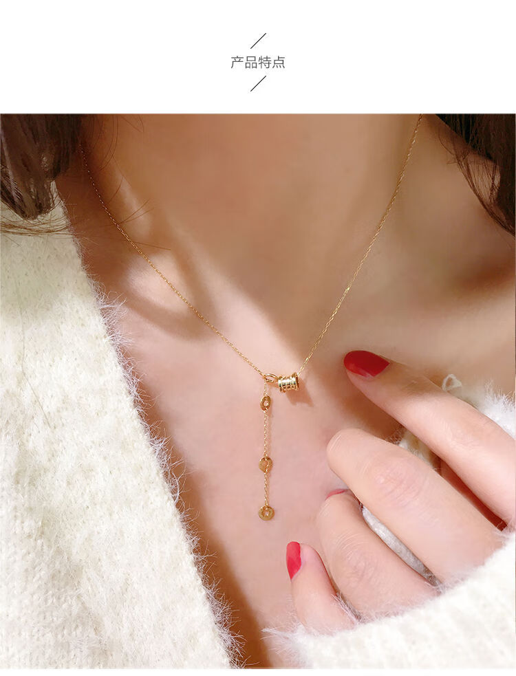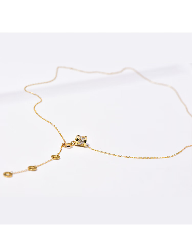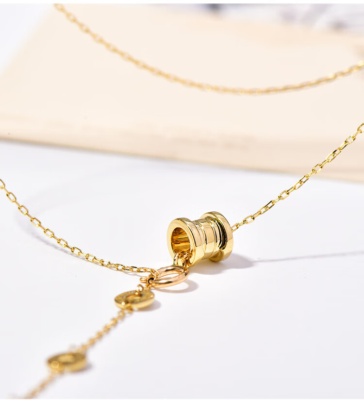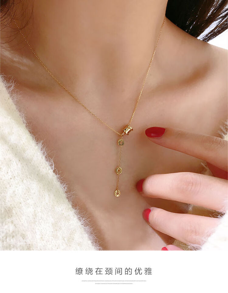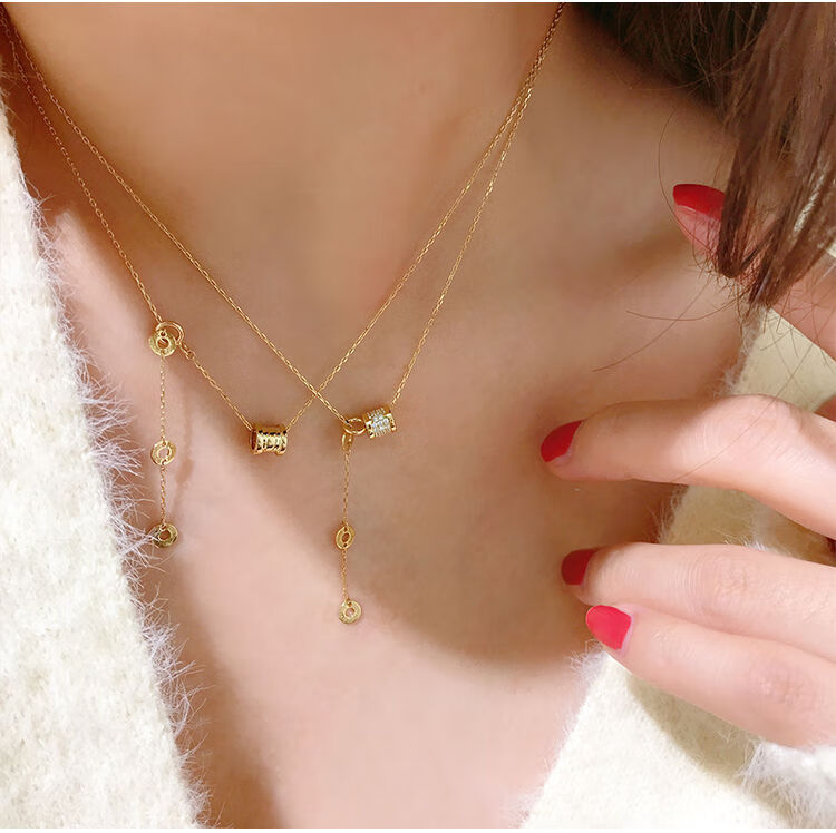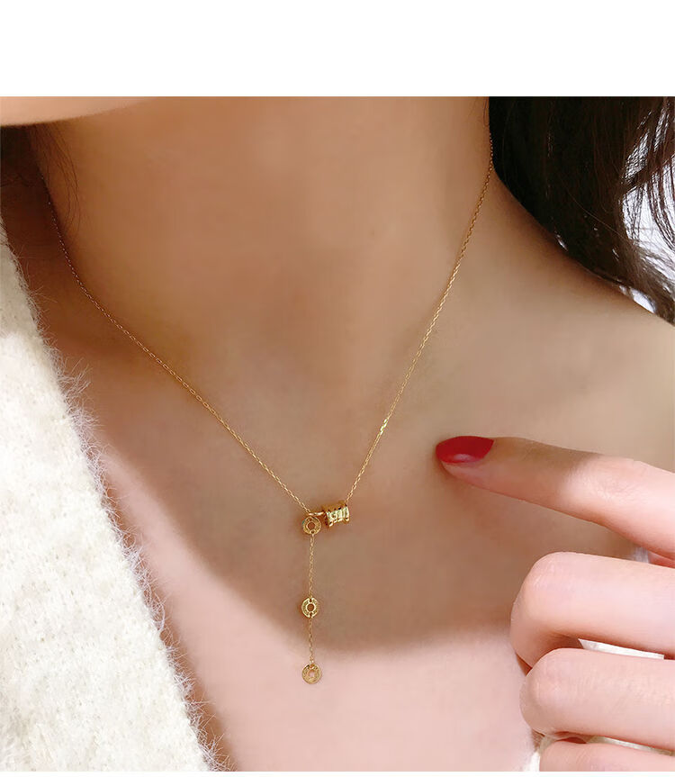 Golden branch Korean popular Korean 14K gold necklace women's personalized three-dimensional cylindrical pendant adjustable neck chain clavicle chain women's glossy pendant necklace