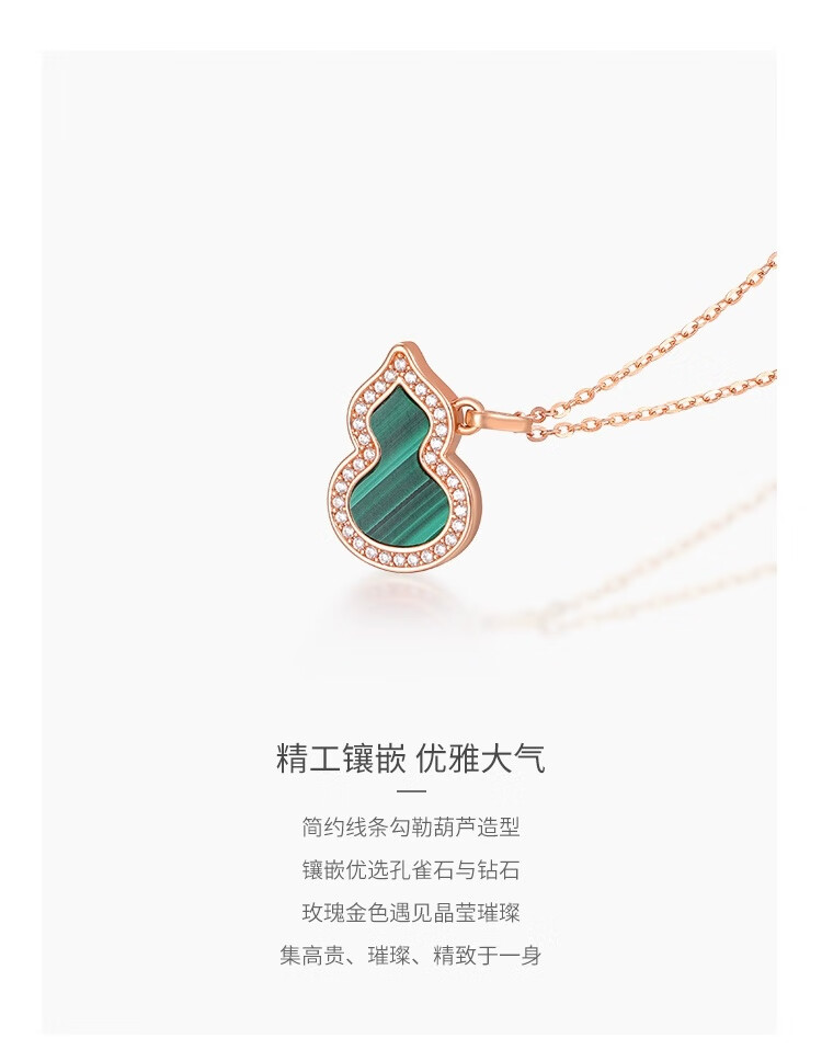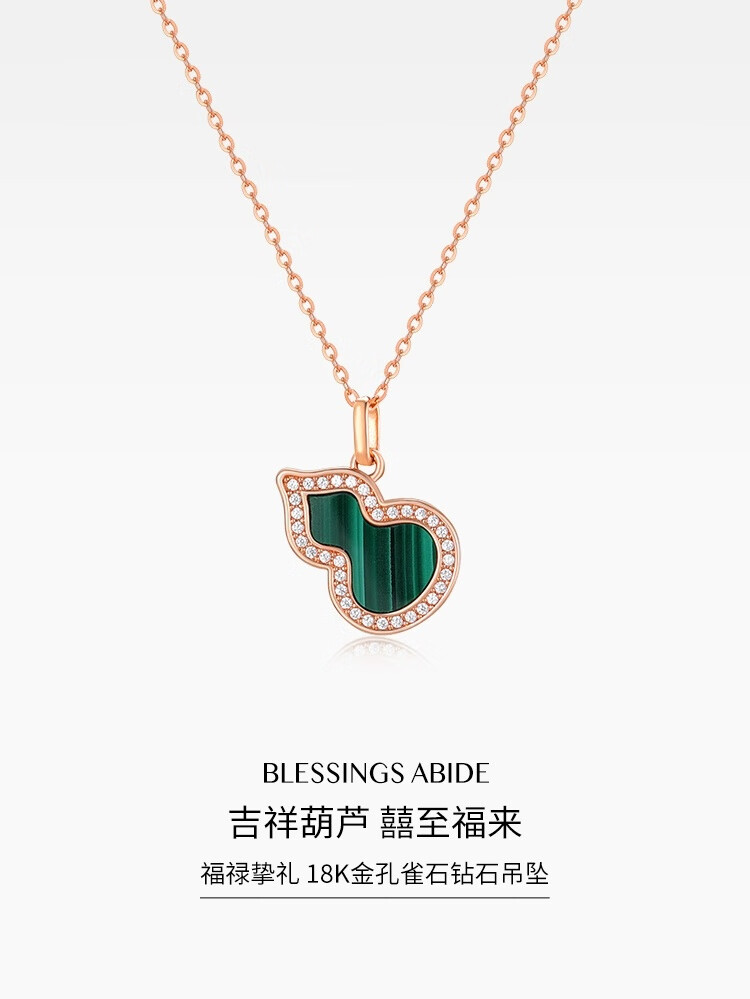 Jinzhu Dada Jewelry 18K Gold Malachite Diamond Gourd Pendant Fulu 3D Hard Gold Necklace Gift 18K Gold Malachite Diamond Pendant