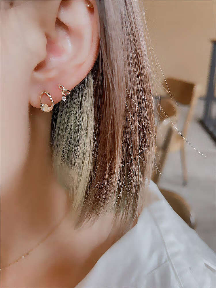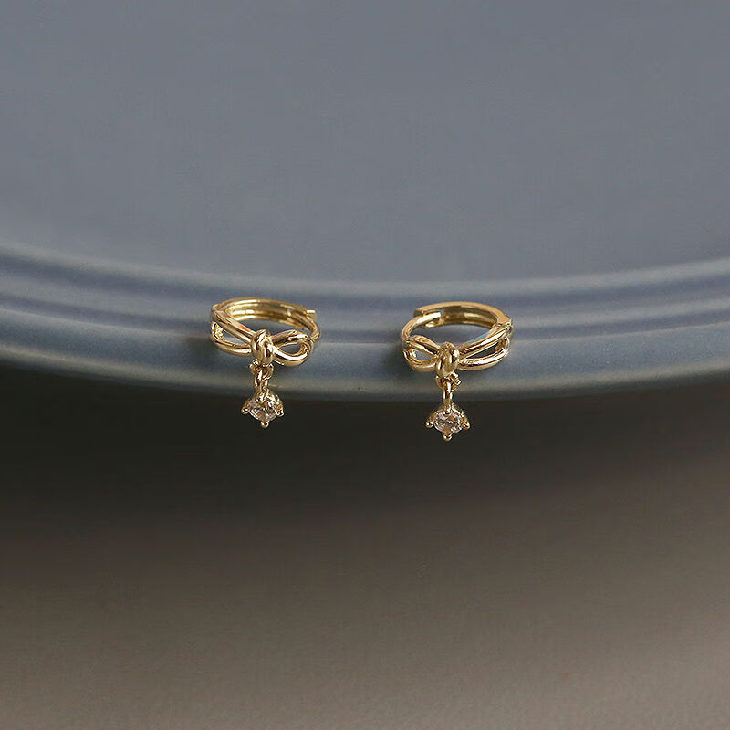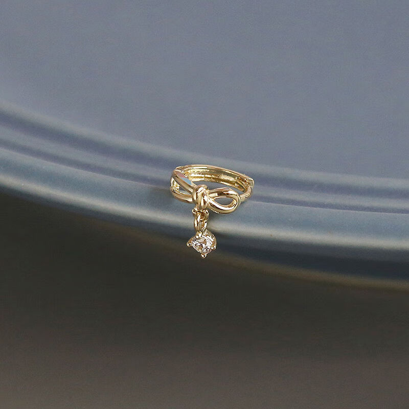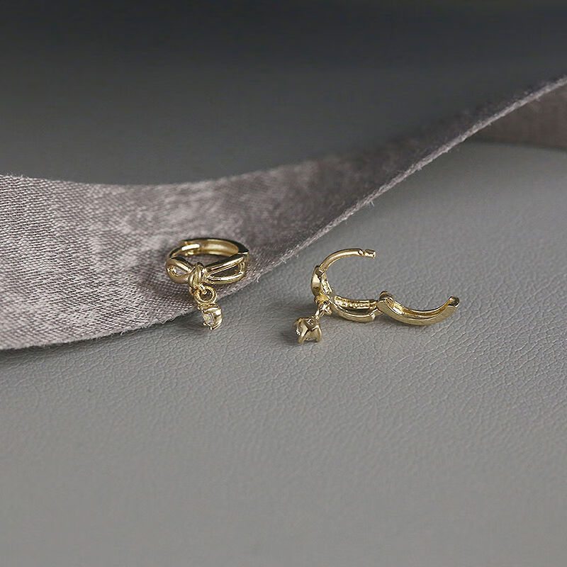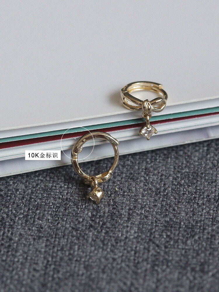 Nanzhi White Small C Korean Gold Jewelry 10K Gold Earrings Earrings Sweet Bow Pendant K Gold Earbone Earrings Earrings Left Earband 1 piece