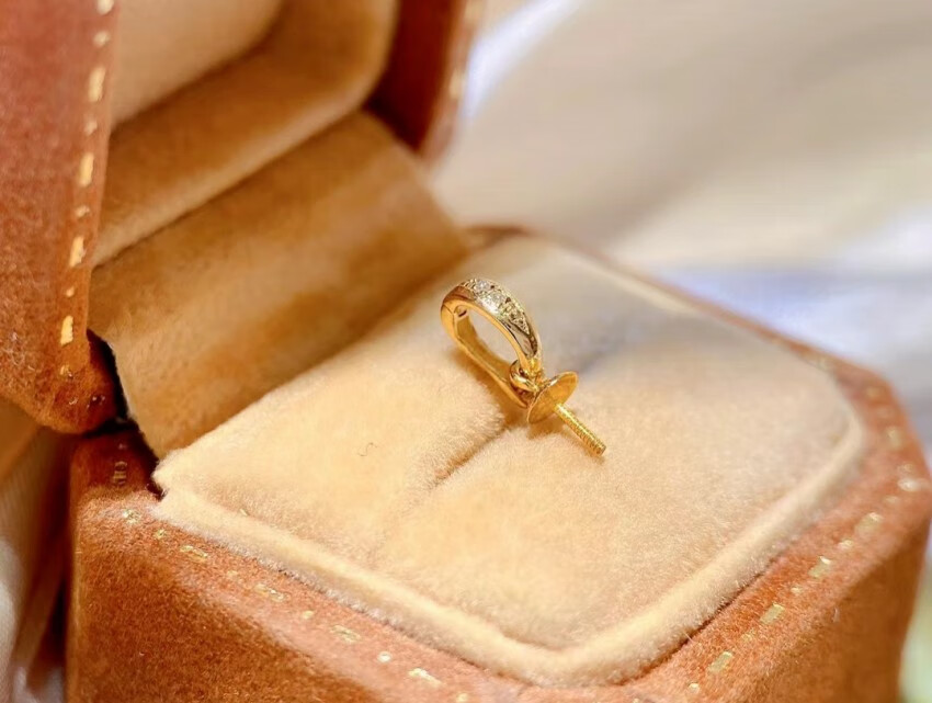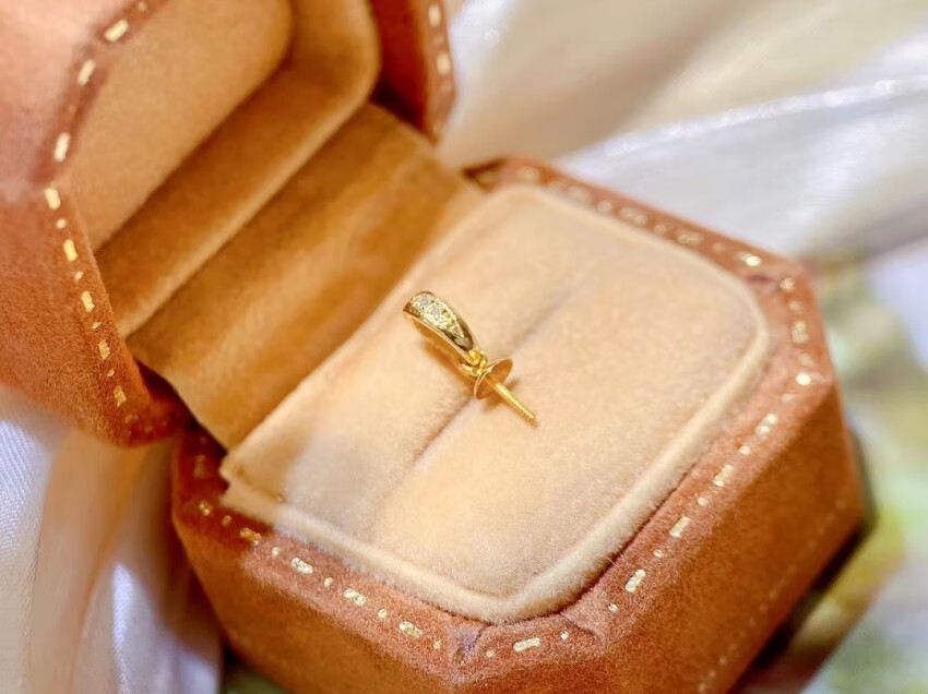 Nanzhi classic 18K gold pearl pendant empty support diamond inlaid any versatile diy accessories AU750 handmade support universal 18k gold diamond pearl support 1
