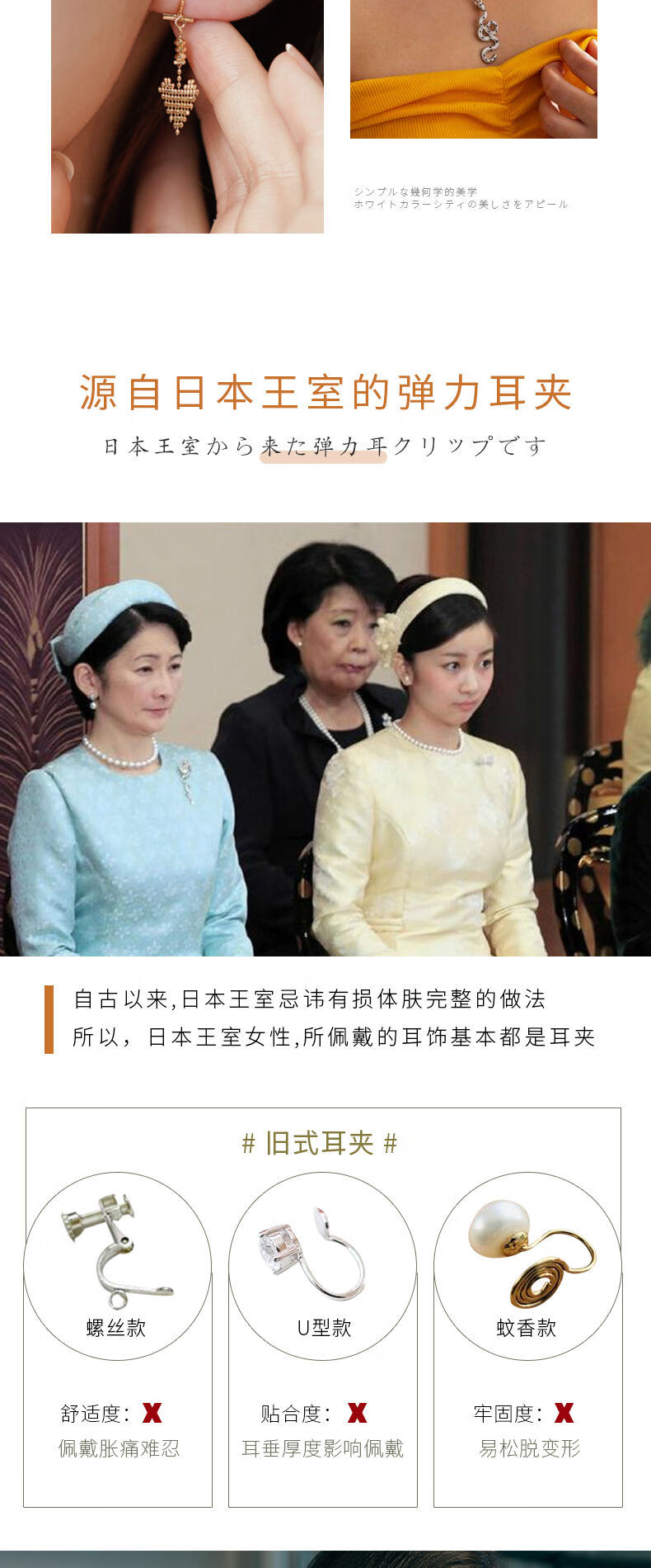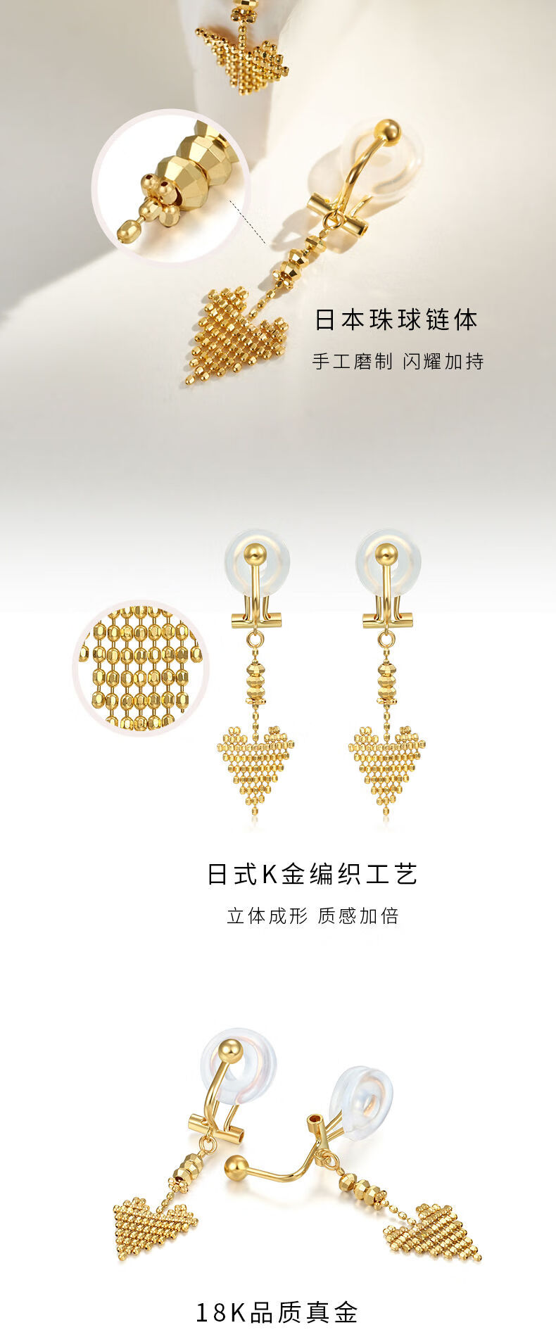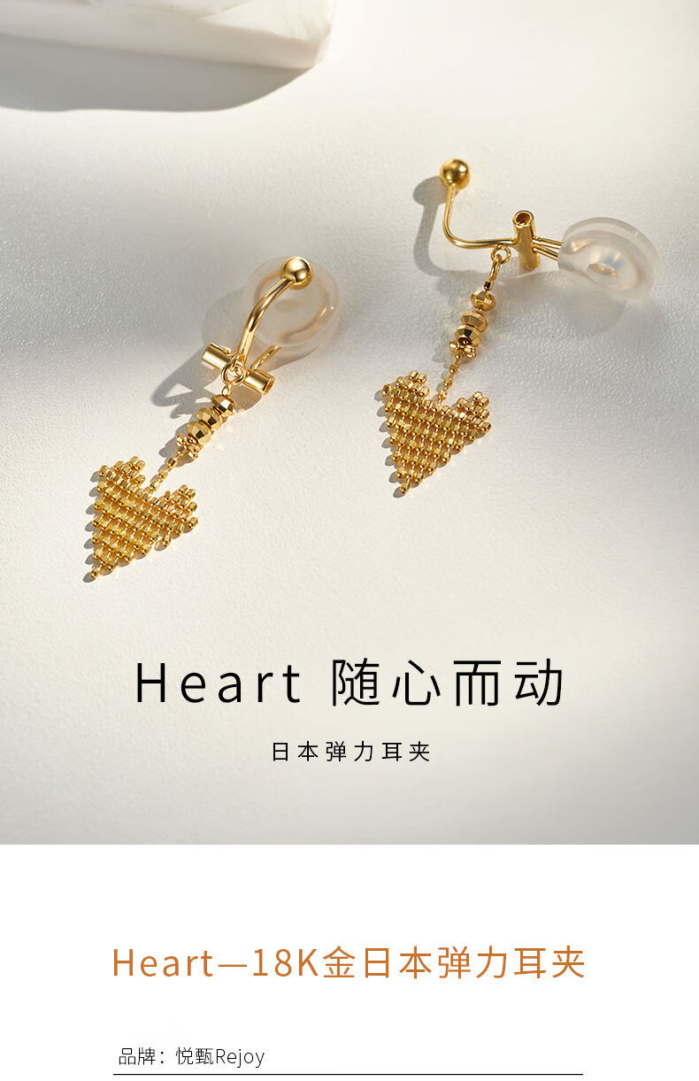 Nanzhi 18K gold heart-shaped tassel pendant painless ear clip for women without pierced earrings earrings Heart ear clip YZD009