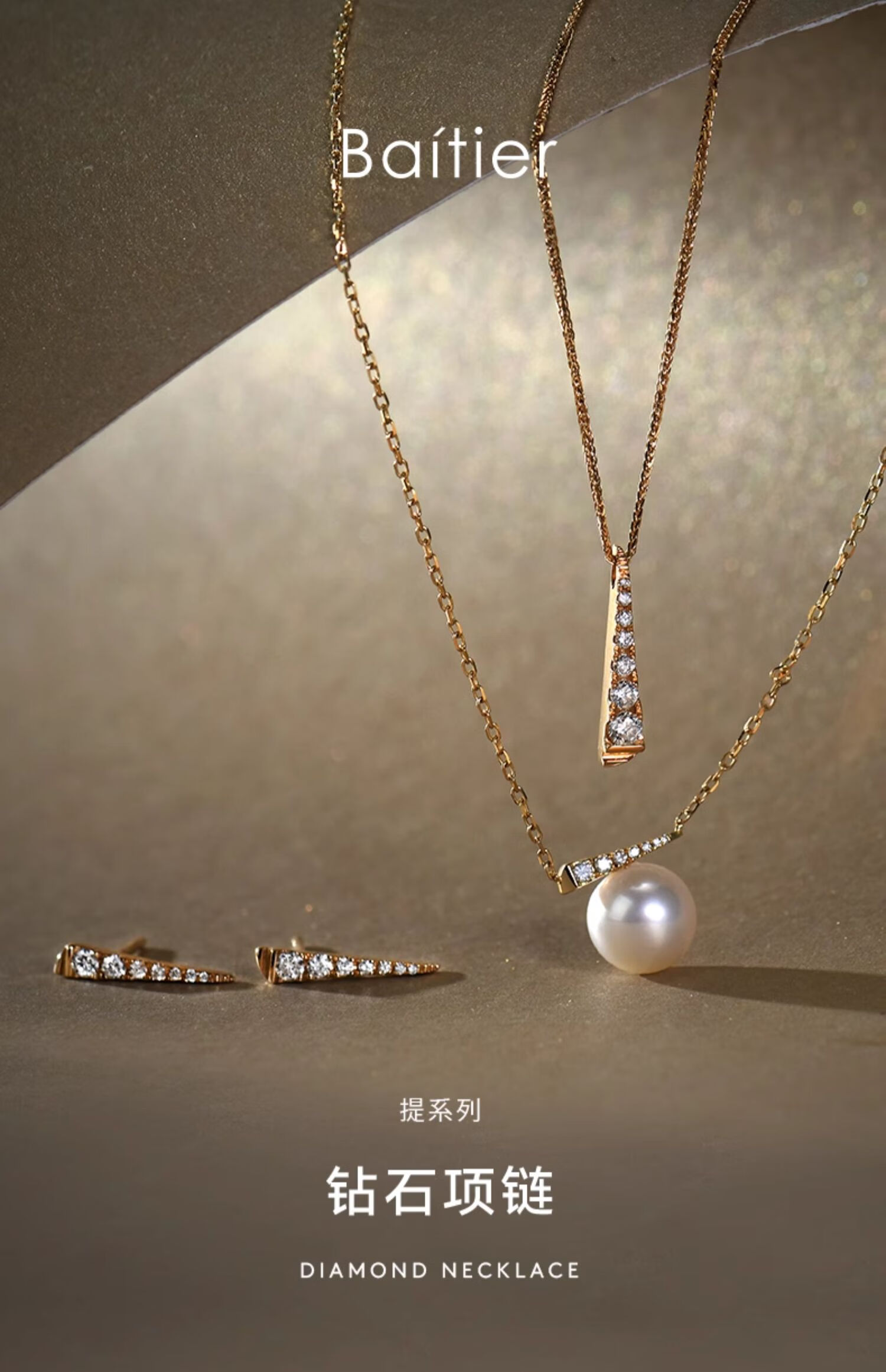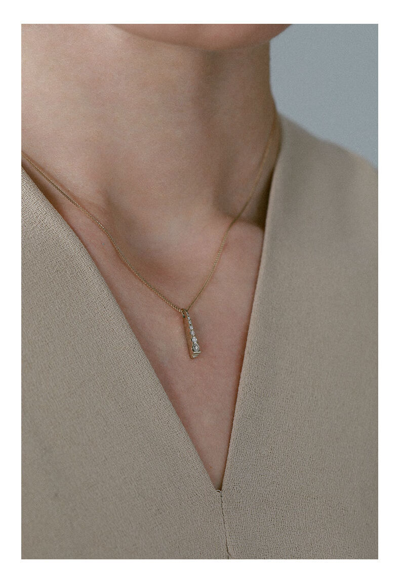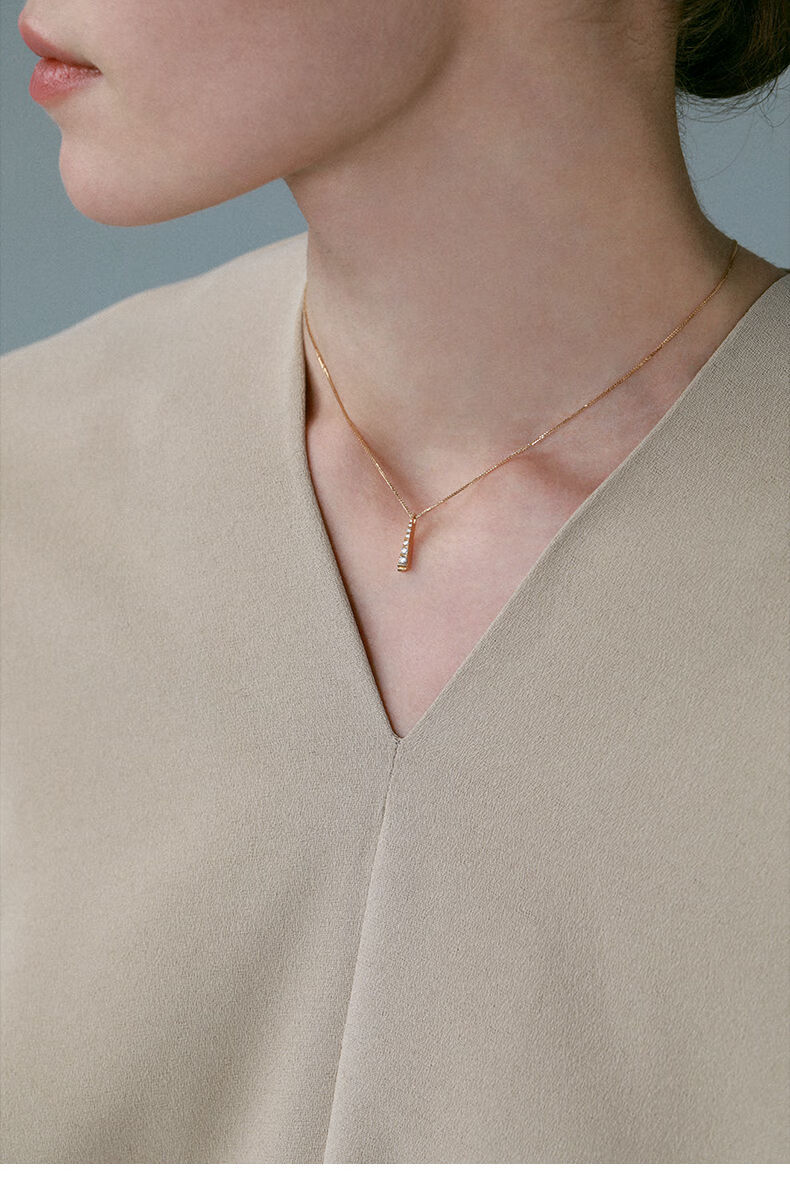 Nanzhi Baitier high-end minimalist light luxury 18K gold real diamond word pendant necklace women's color gold clavicle chain 18K gold color ready for shipment, chain length 42+3cm (one item, one certificate)