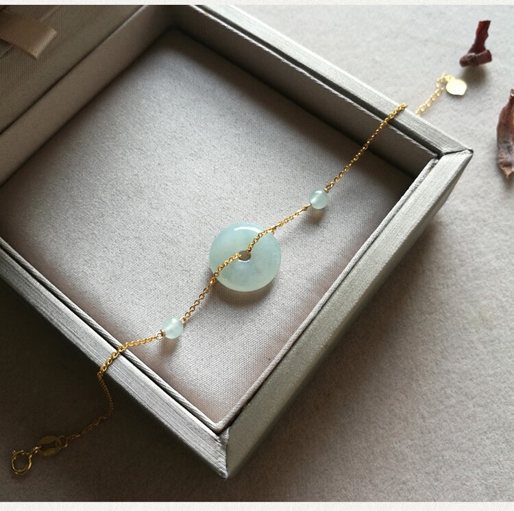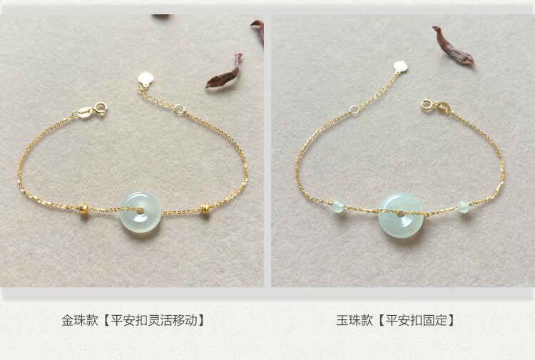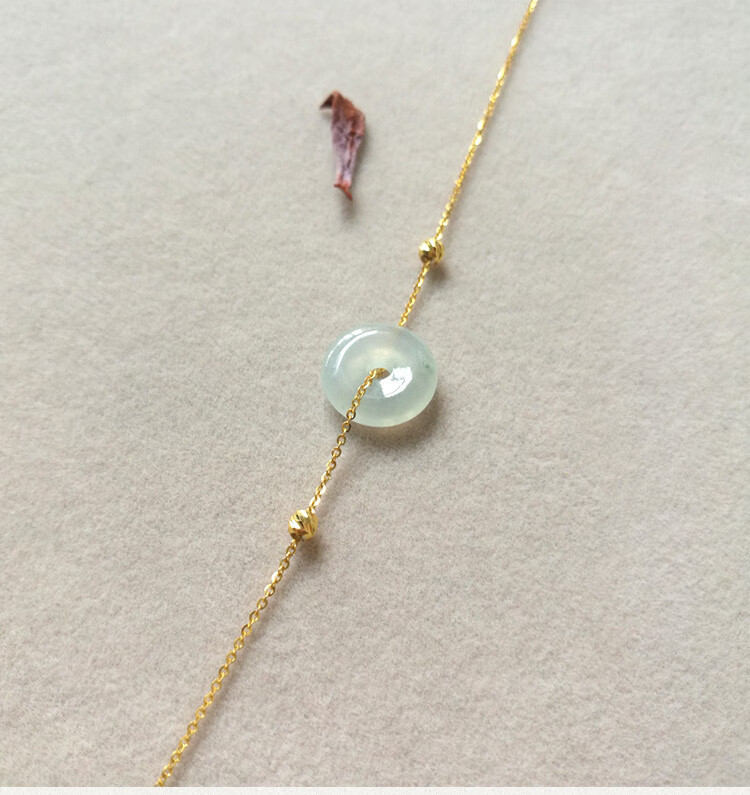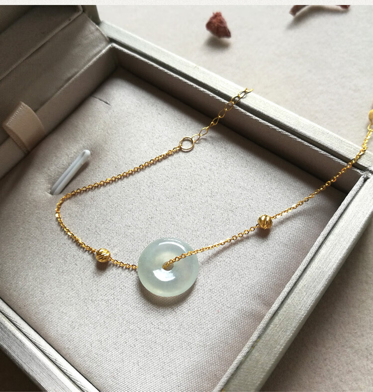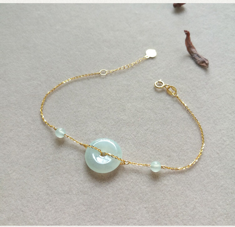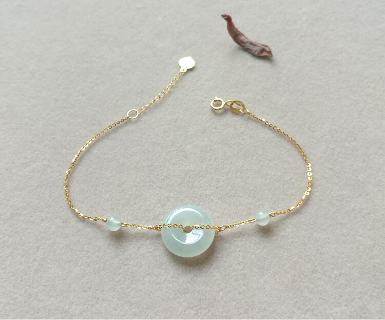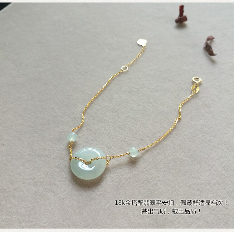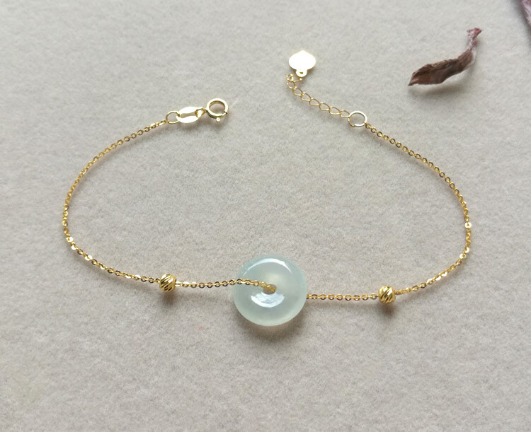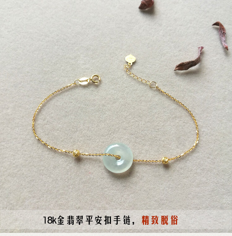 Caizhi 18k gold ice jade A goods safety buckle bracelet rose gold women's fine color gold beads hand ornaments gold inlaid jade gift simple gold beads style