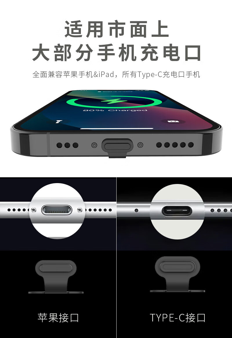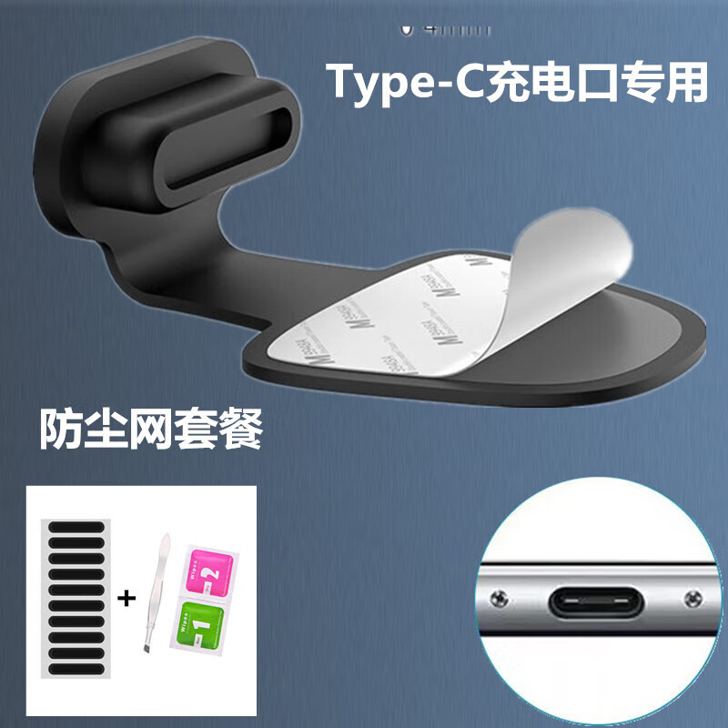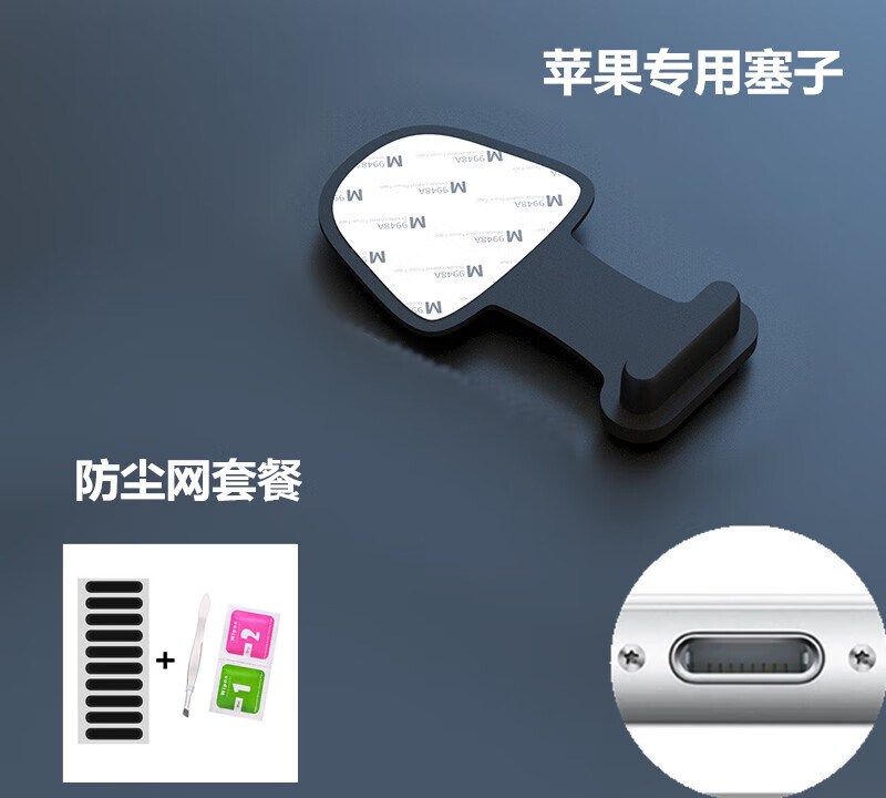 Fun appliance 16 Apple mobile phone charging port dustproof plug 14iphone15promax13 12TypeC mobile phone tail plug universal Apple 14 charging port plug 10 black + trumpet mouth net sticker 22-piece set