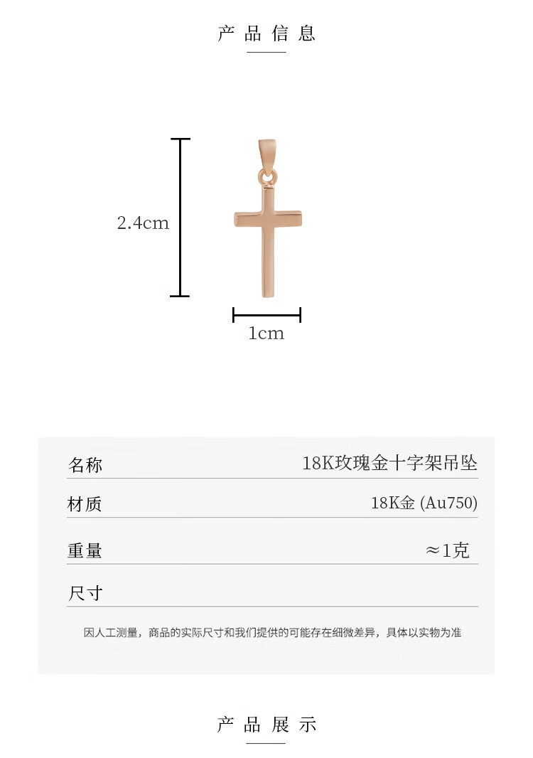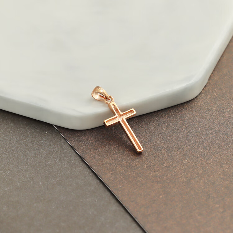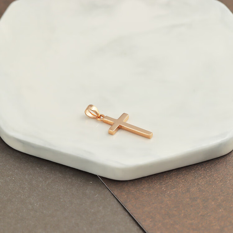 Erli 18K rose gold glossy cross pendant k gold plain gold faith pendant 18K rose gold 1.11g