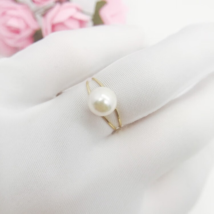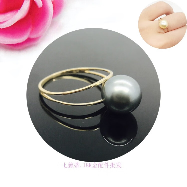 Caizhi New Product 18K Gold Big Mouth Ring Pearl Ring Empty Holder Women's Jasper Beeswax DIY Accessories K Red Ring Holder 15# Does not contain pearls