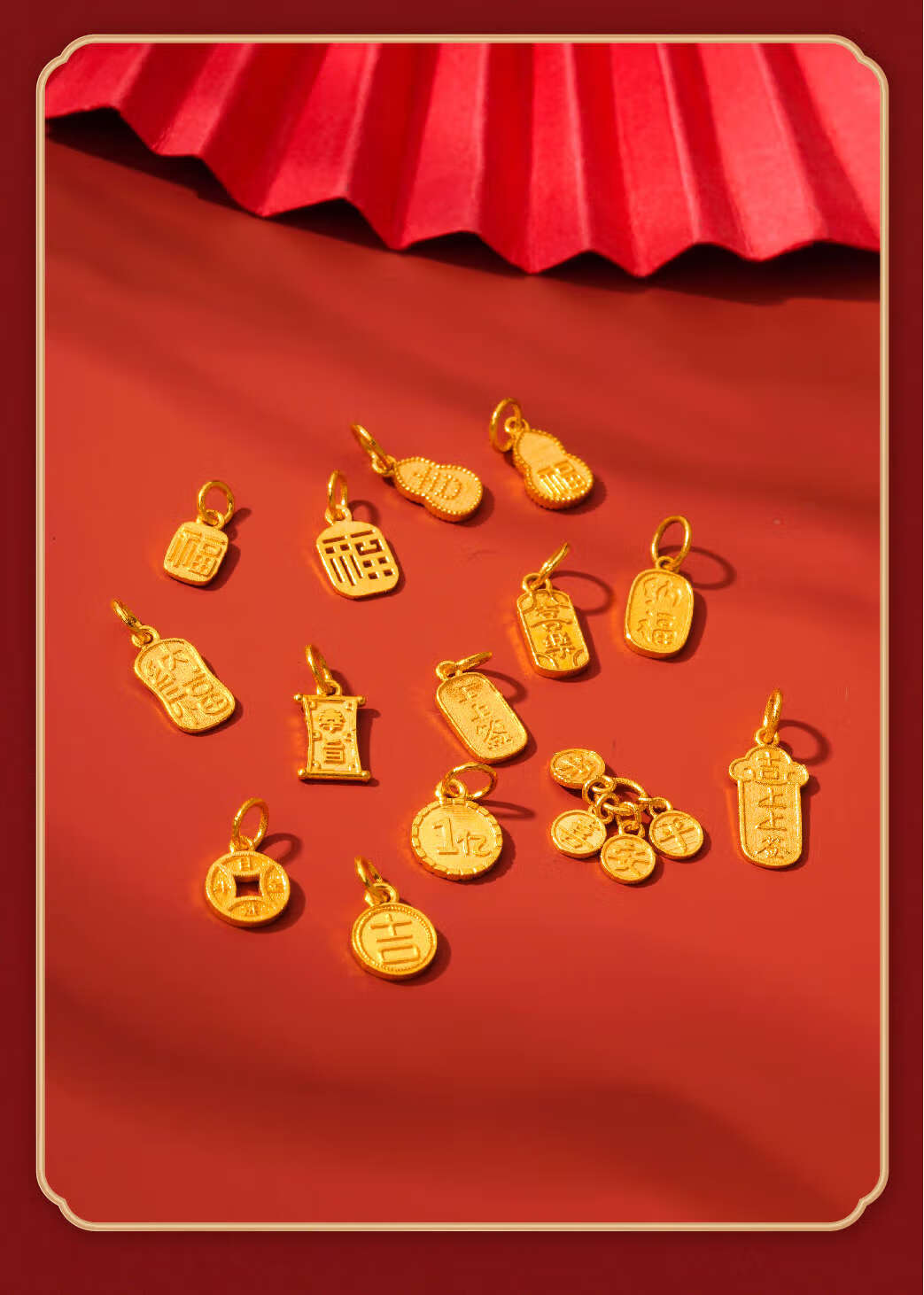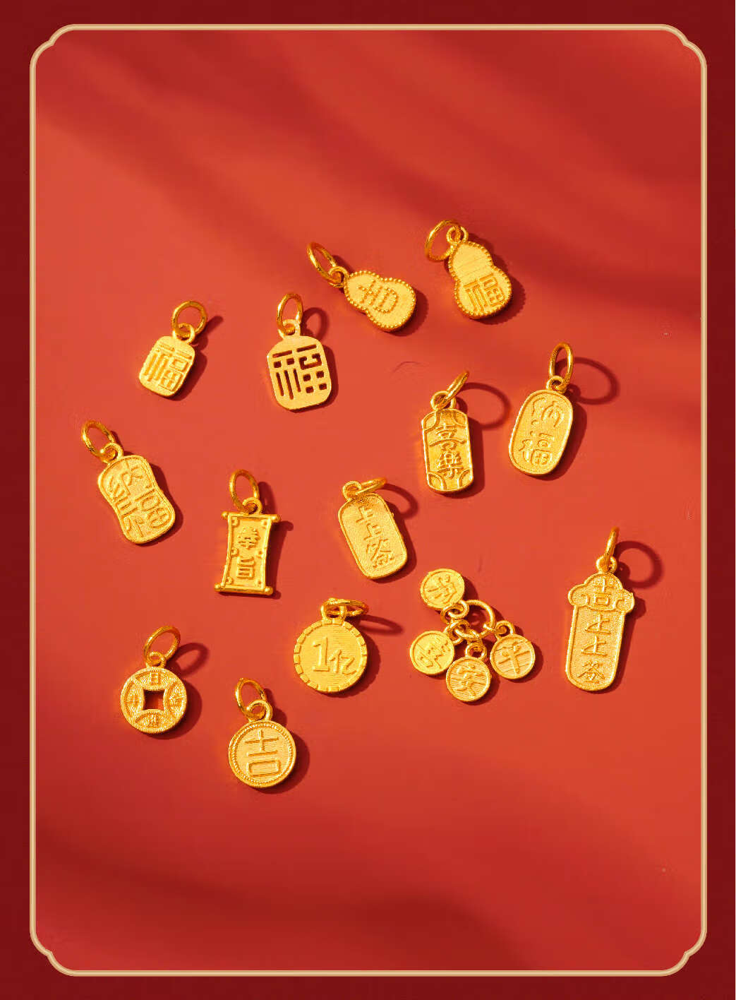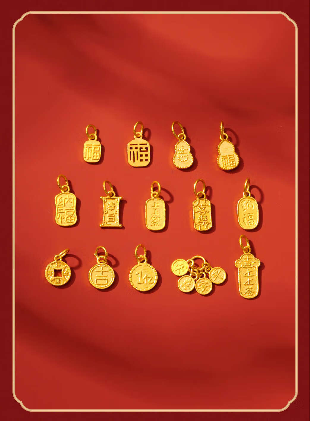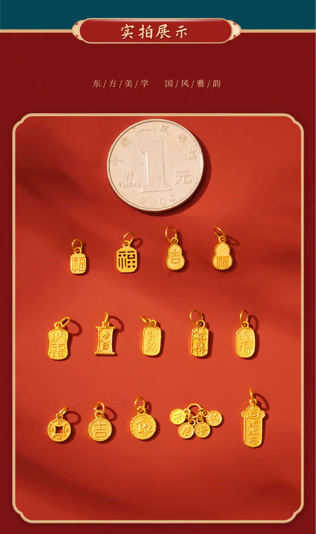Erli 18K gold accessories diy all-over gold accessories jewelry old gold chiseled handle small pendant pendant bracelet No. 4 18K gold Fu gourd (approximately 0.432 grams)