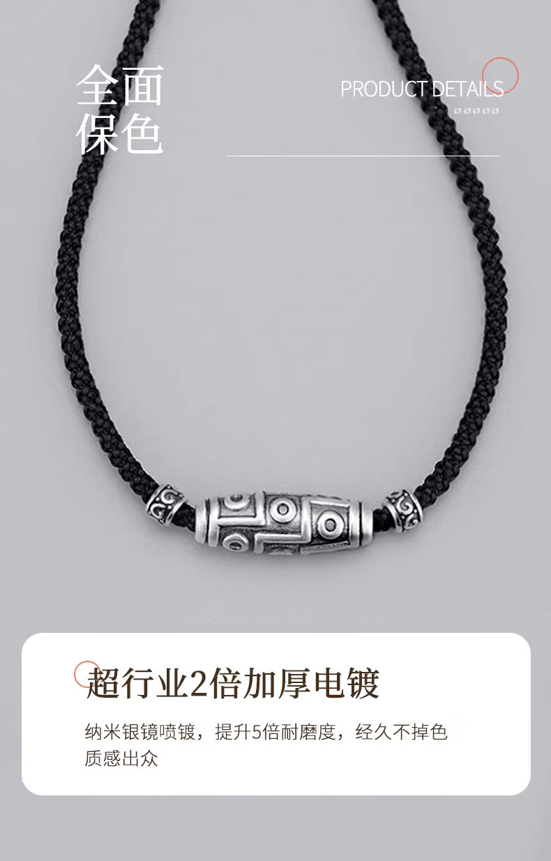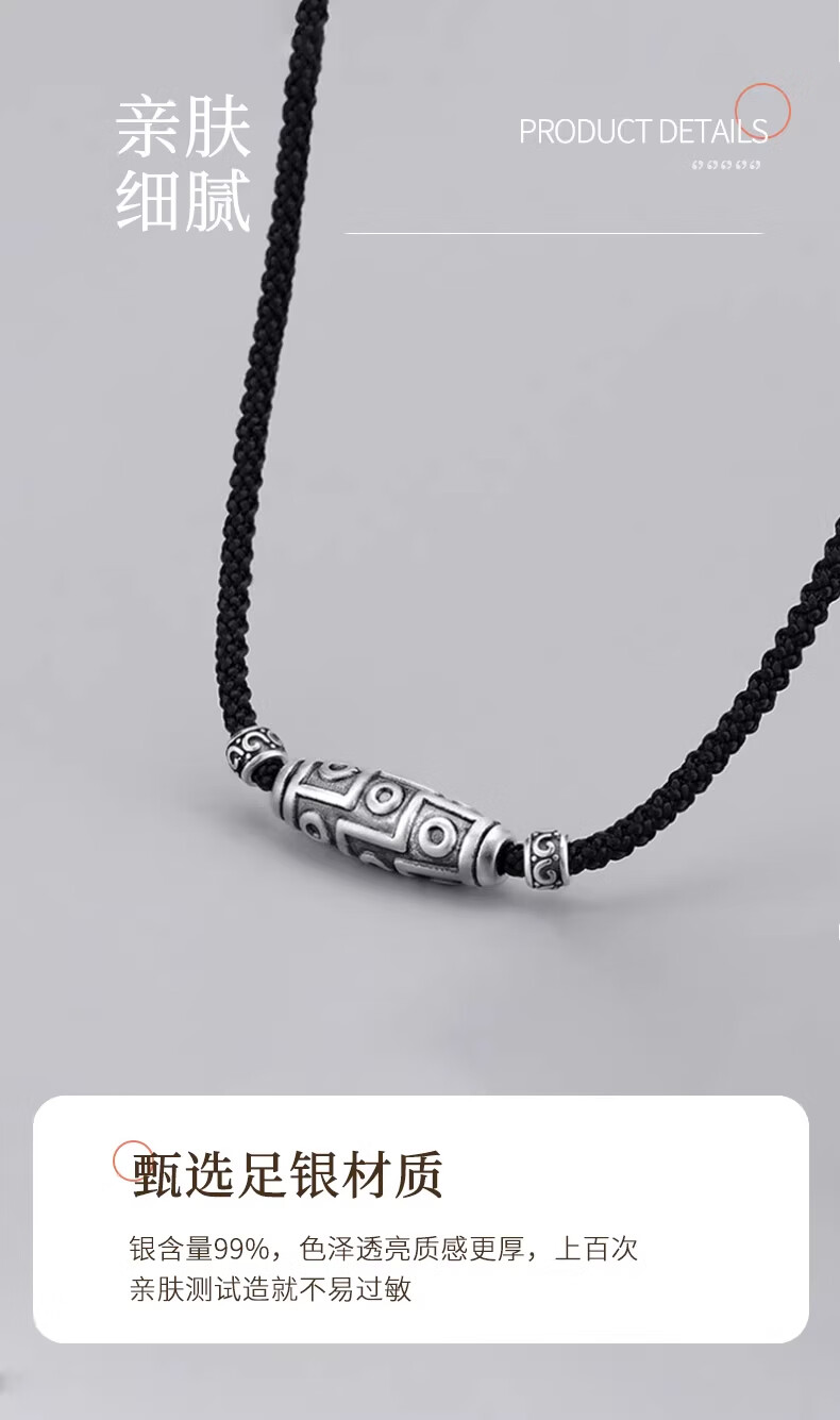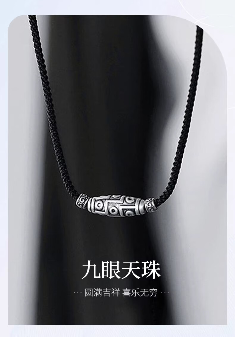 China Gold (CHINA GOLD) Nine-Eyed Dzi Beads Necklace Pure Silver New Style for Men and Women Couple Valentine's Day Birthday Gift for Girlfriend and Wife Nine-Eyed Dzi Beads-Black String