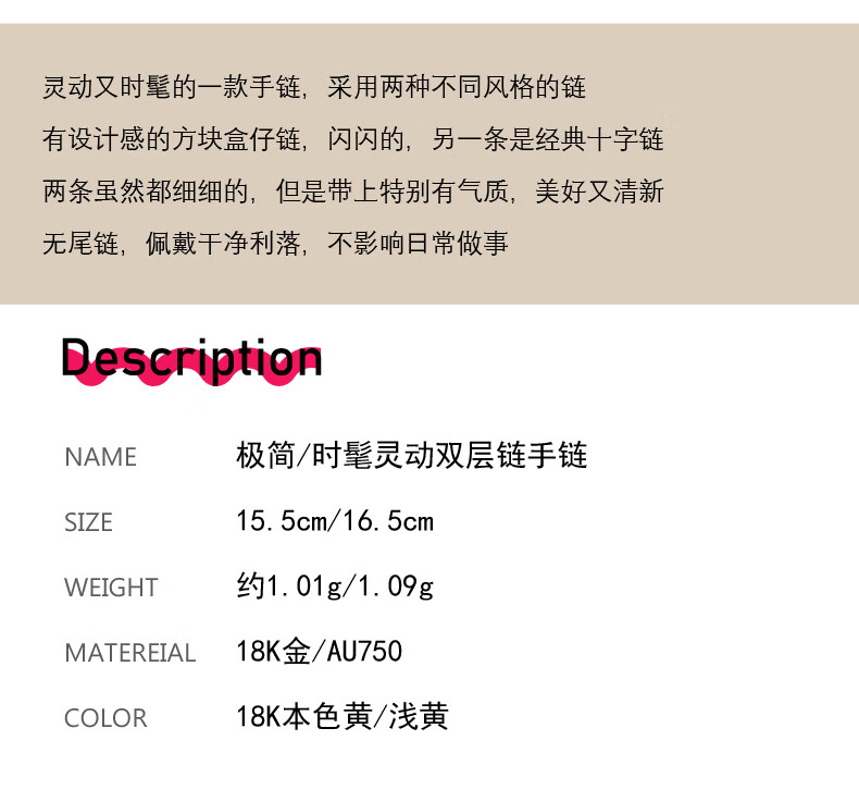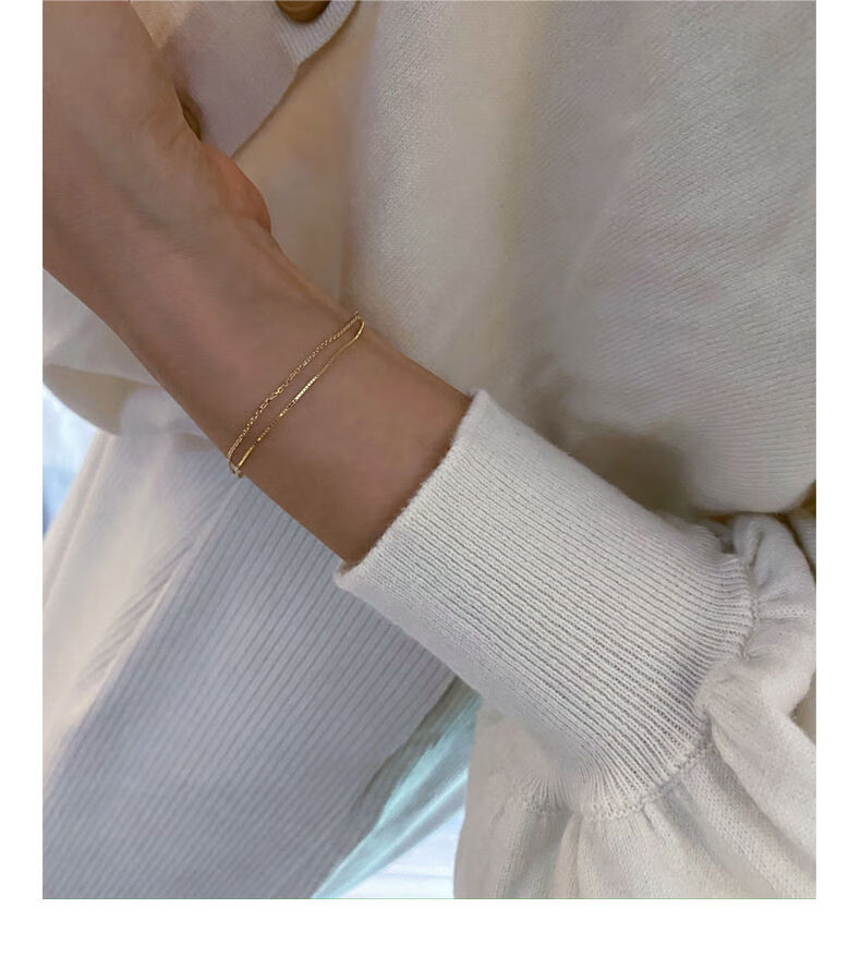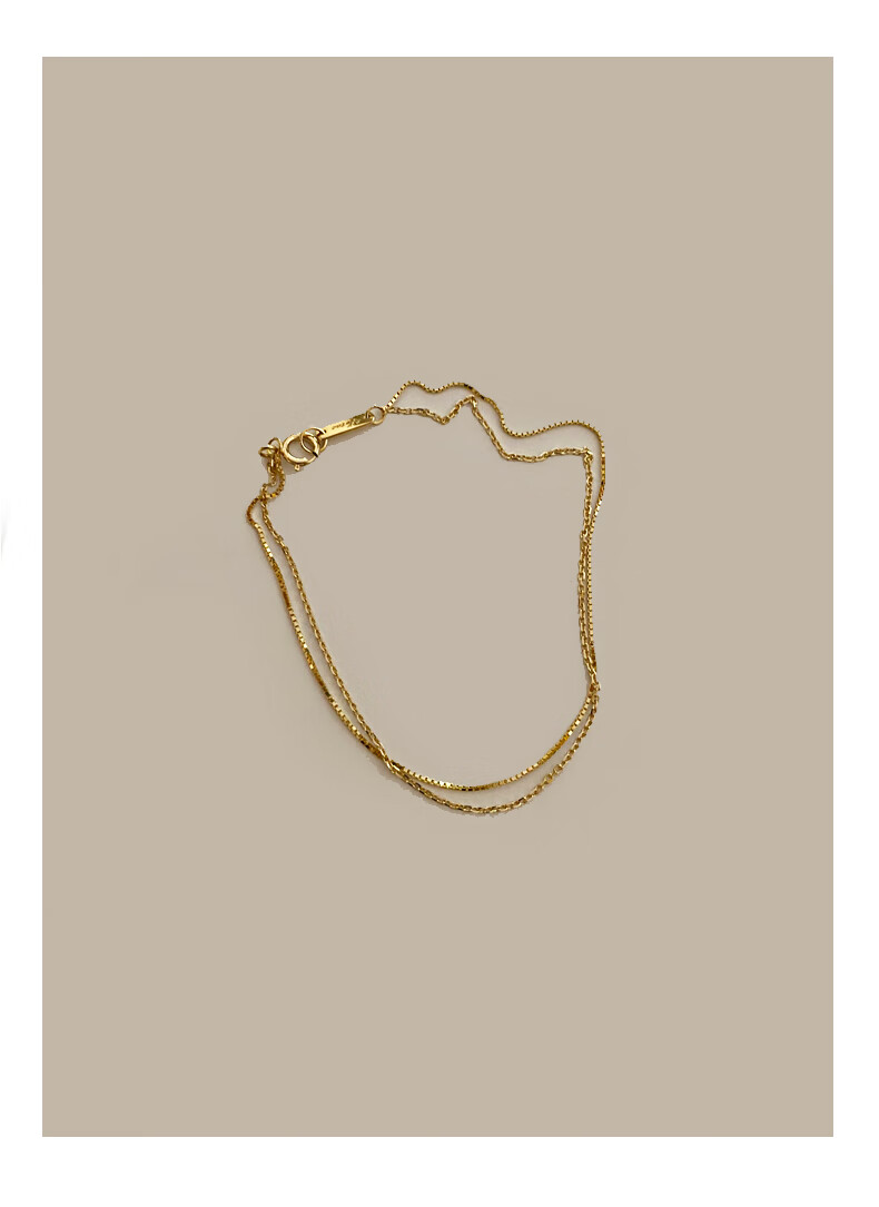 Jinzhu HETAO fashionable and smart double-layer chain box cross chain full 18k gold bracelet plain gold non-fading AU750 about 15.5cm/1.1g