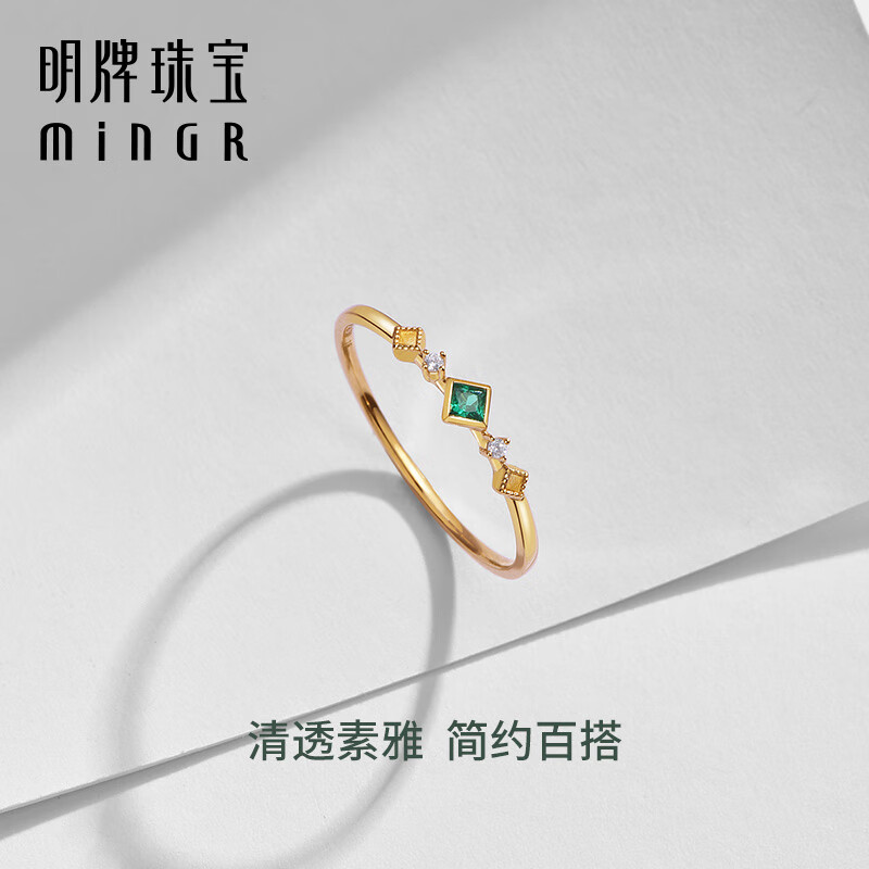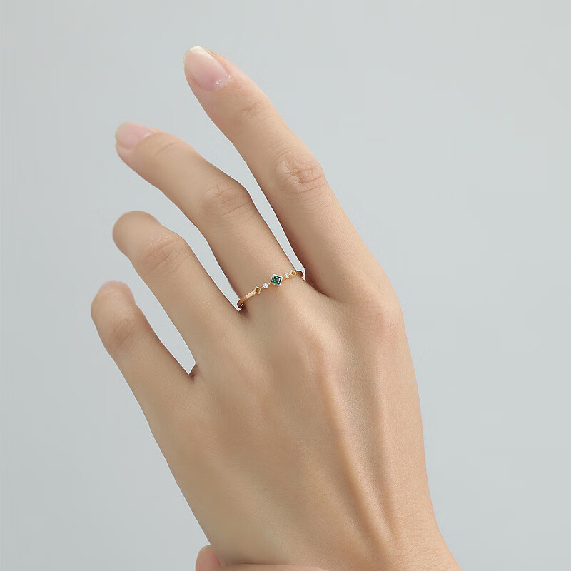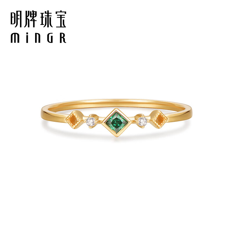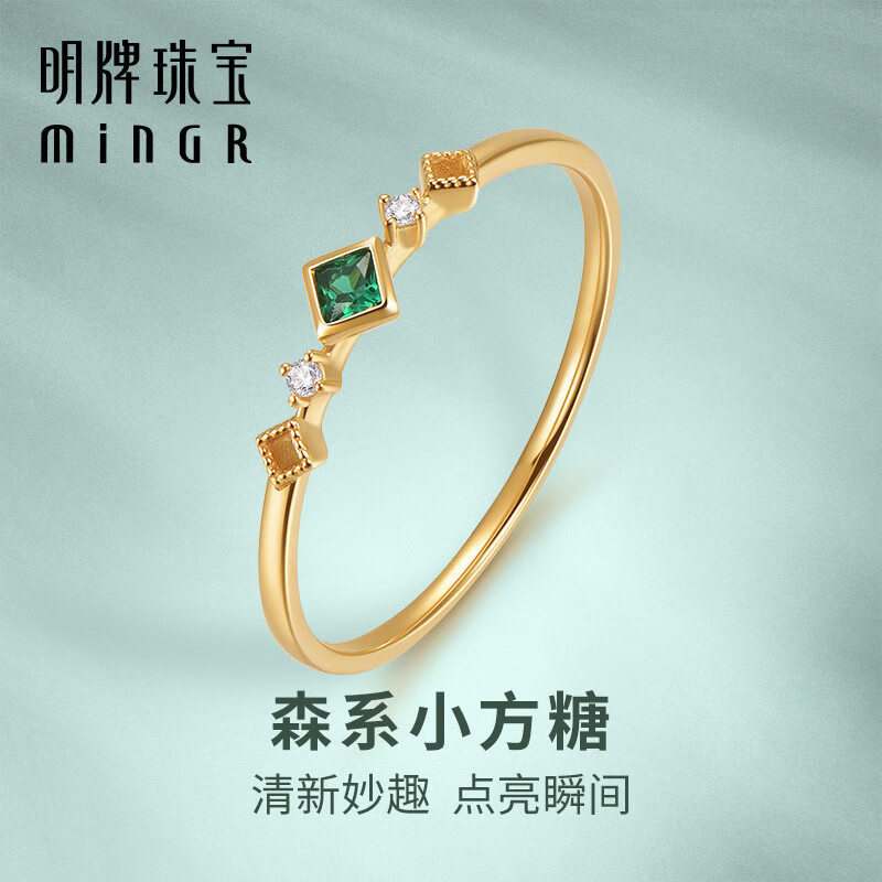 Nanzhi 18K gold gemstone ring, color gold K yellow forest style small sugar cube, colorful zirconium inlaid women's ring No. 11 - forest style small sugar cube (total about 0.9-1.07g