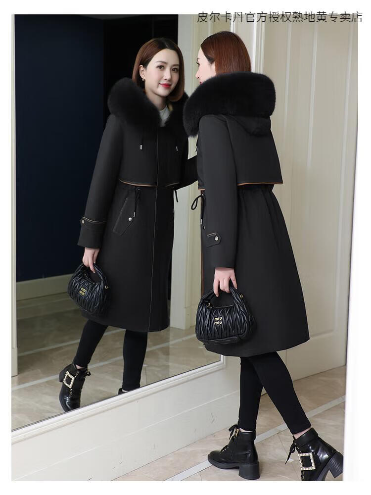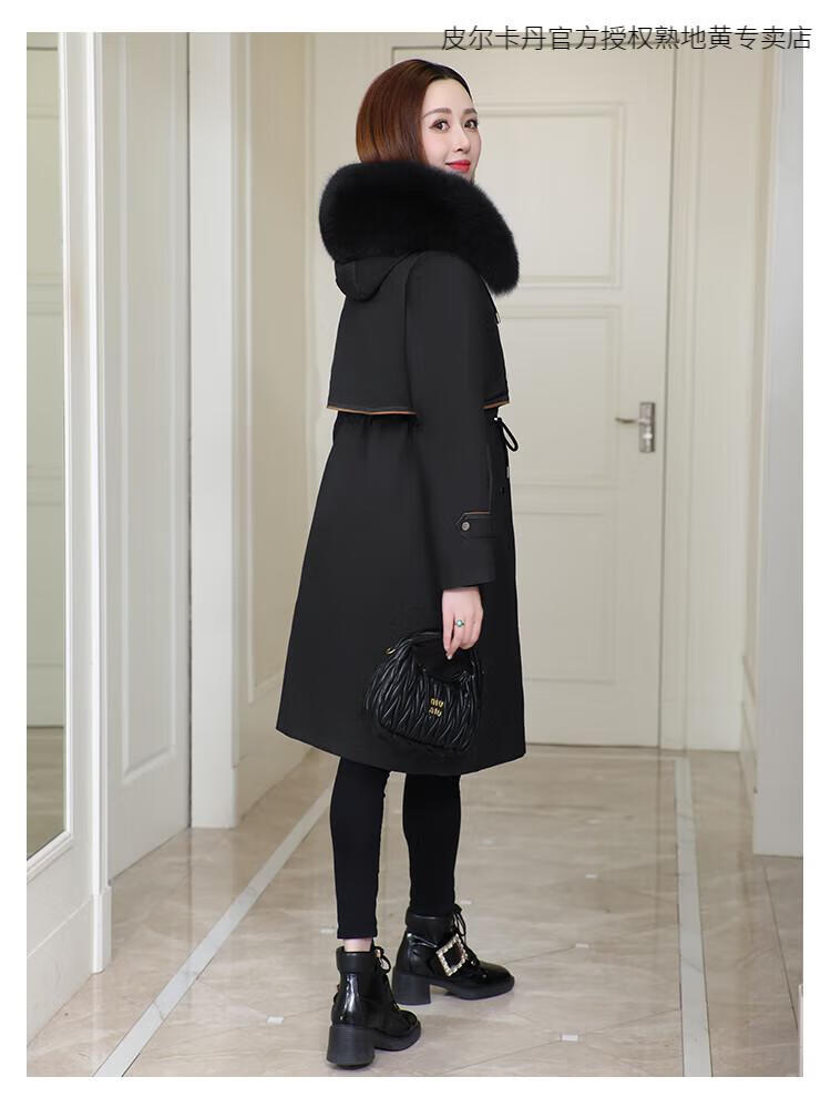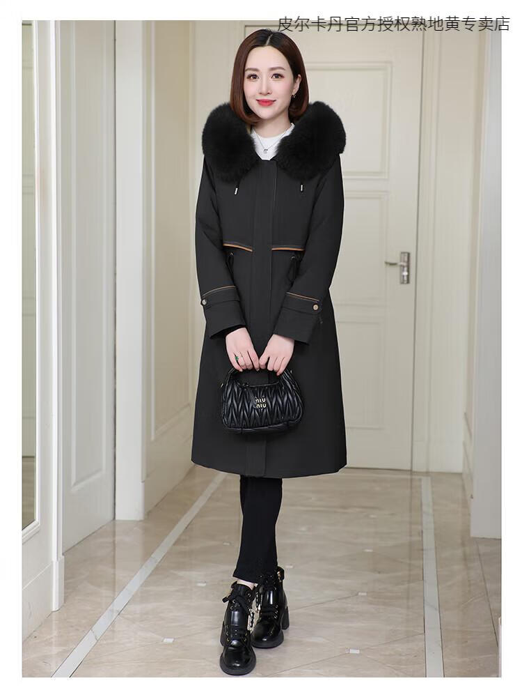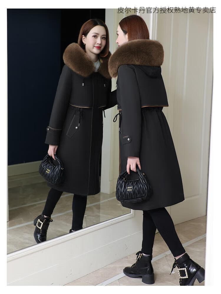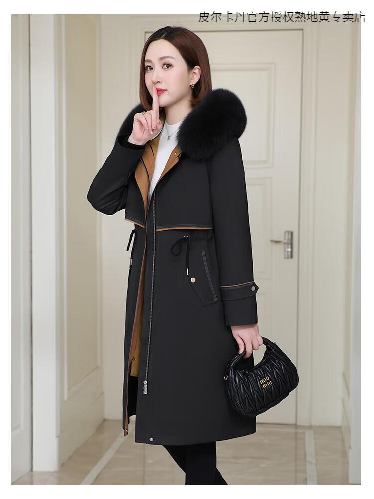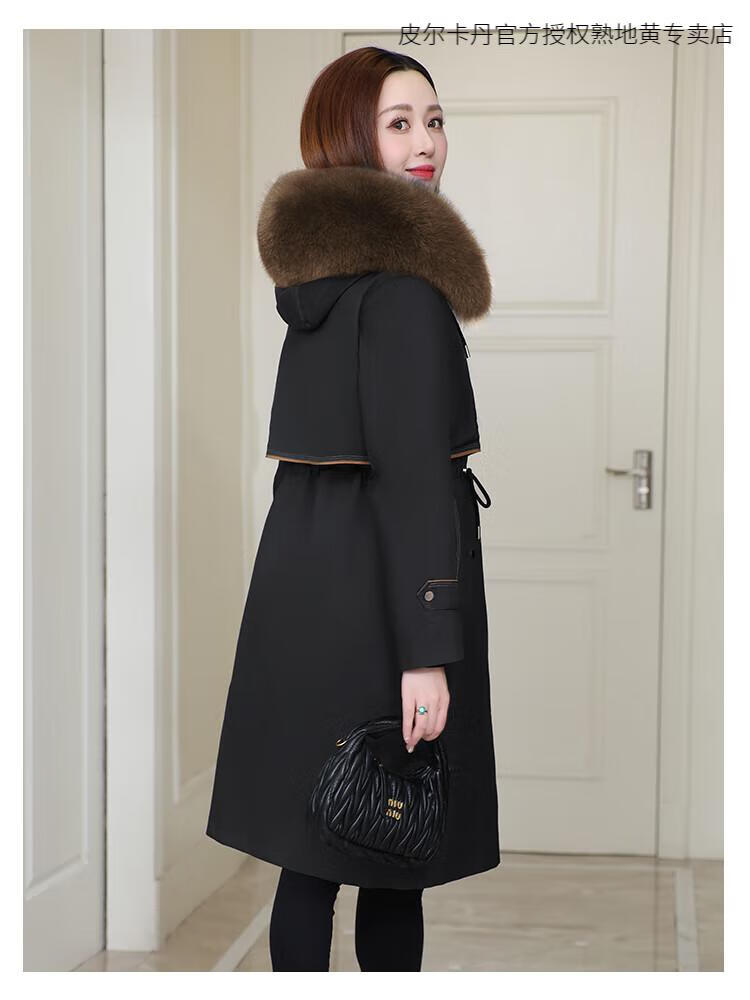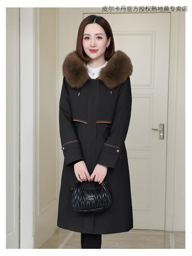 Pierre Cardin Haining Parker Coat Women's 2025 Winter New Rex Rabbit Fur Liner High-End Fur Jacket Mid-Length Mother's Style Black Brown Fur Collar 2XL 135-145Jin Jin is equal to 0.5 kg