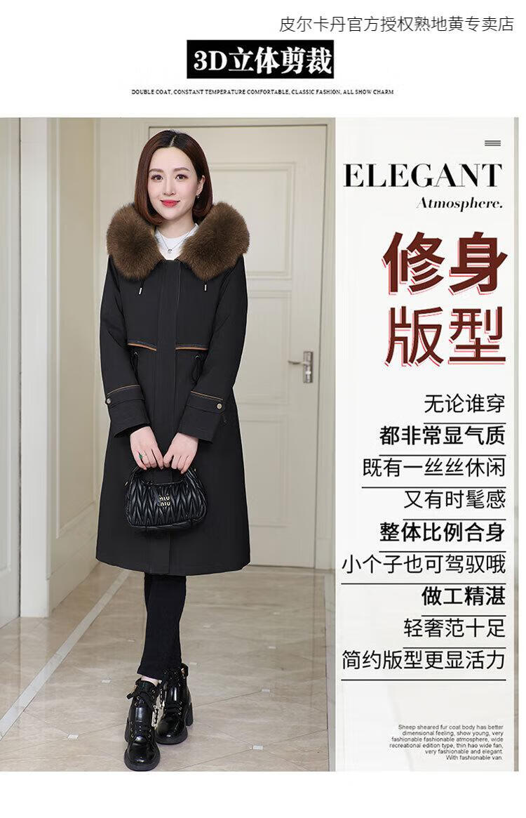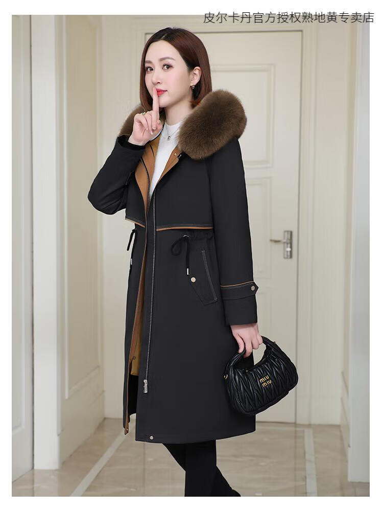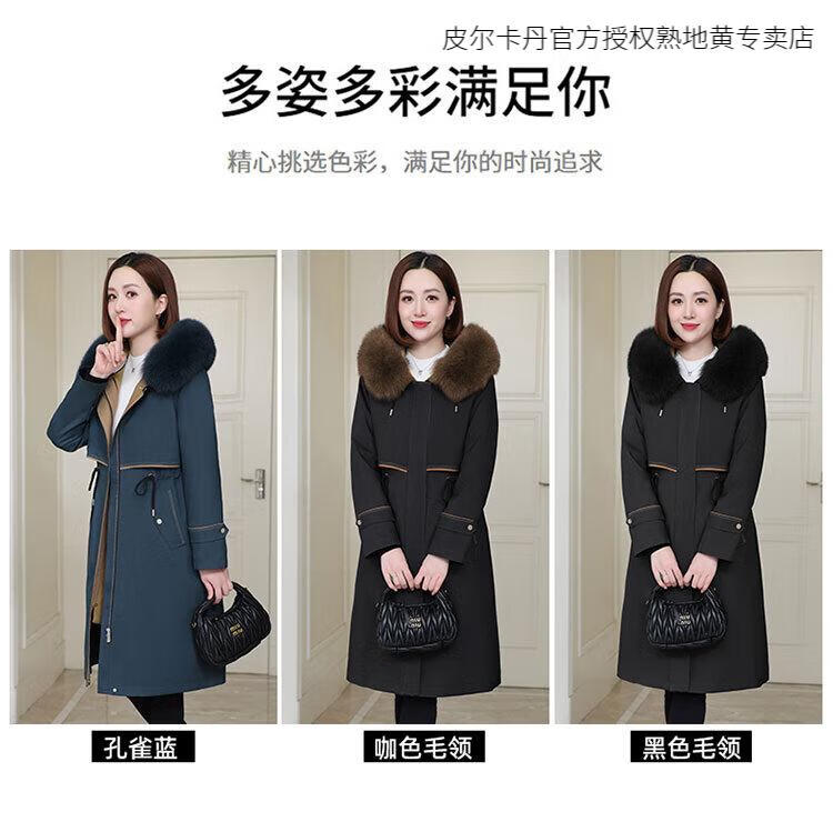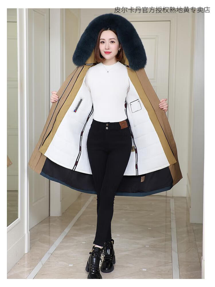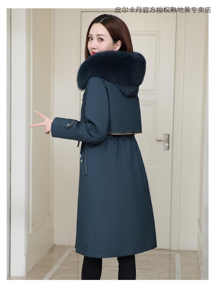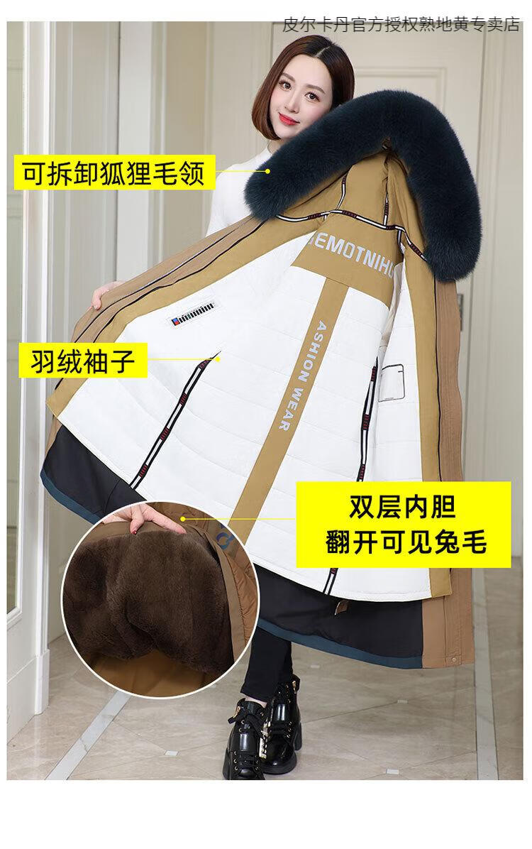Pierre Cardin Haining Parker Coat Women's 2025 Winter New Rex Rabbit Fur Liner High-End Fur Jacket Mid-Length Mother's Style Black Brown Fur Collar 2XL 135-145Jin Jin is equal to 0.5 kg