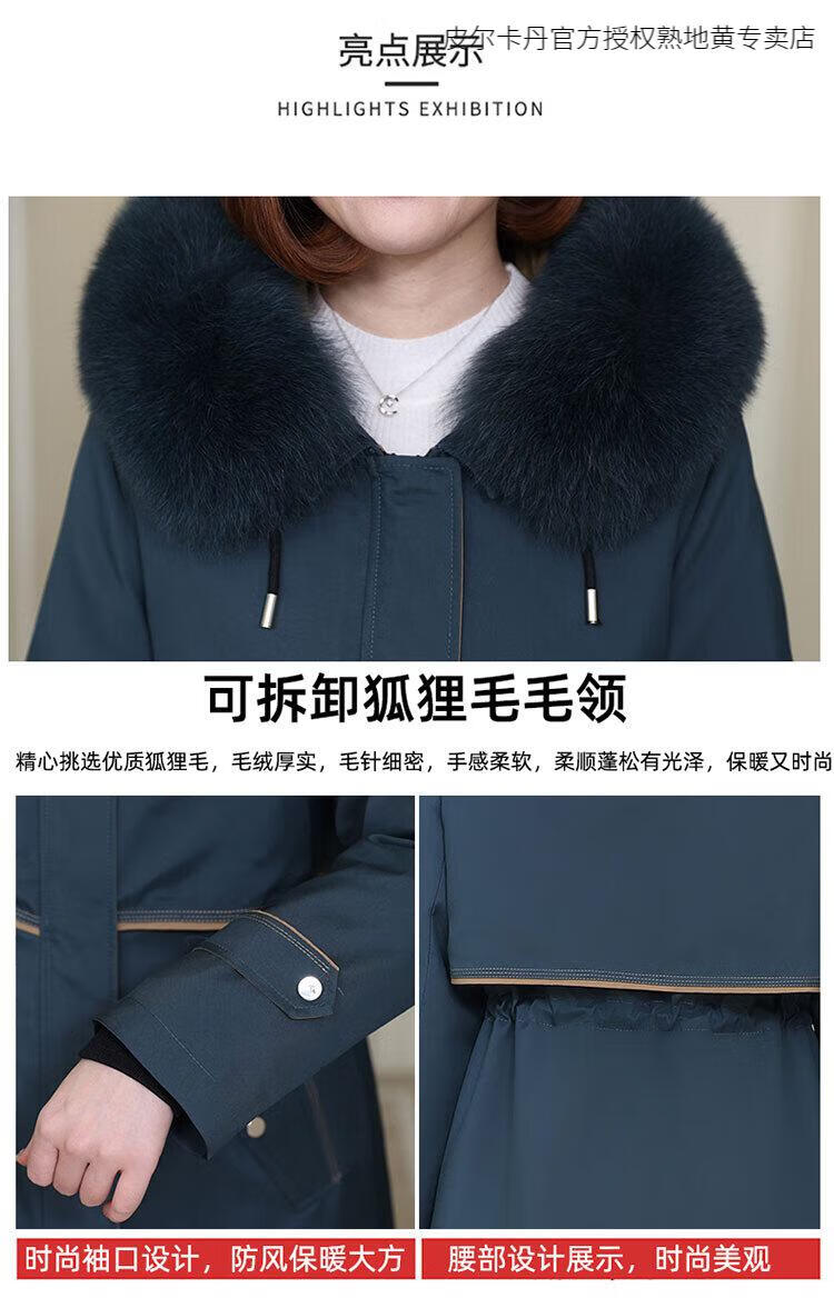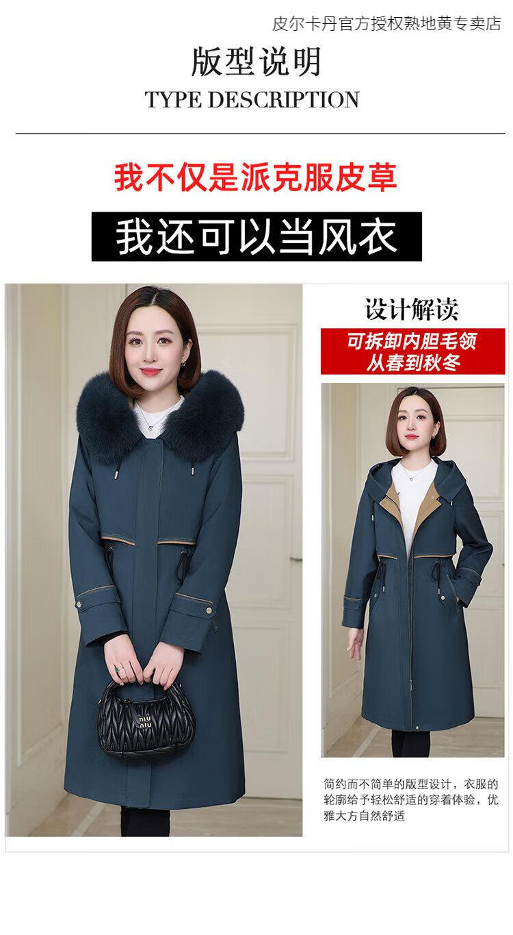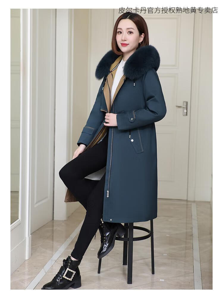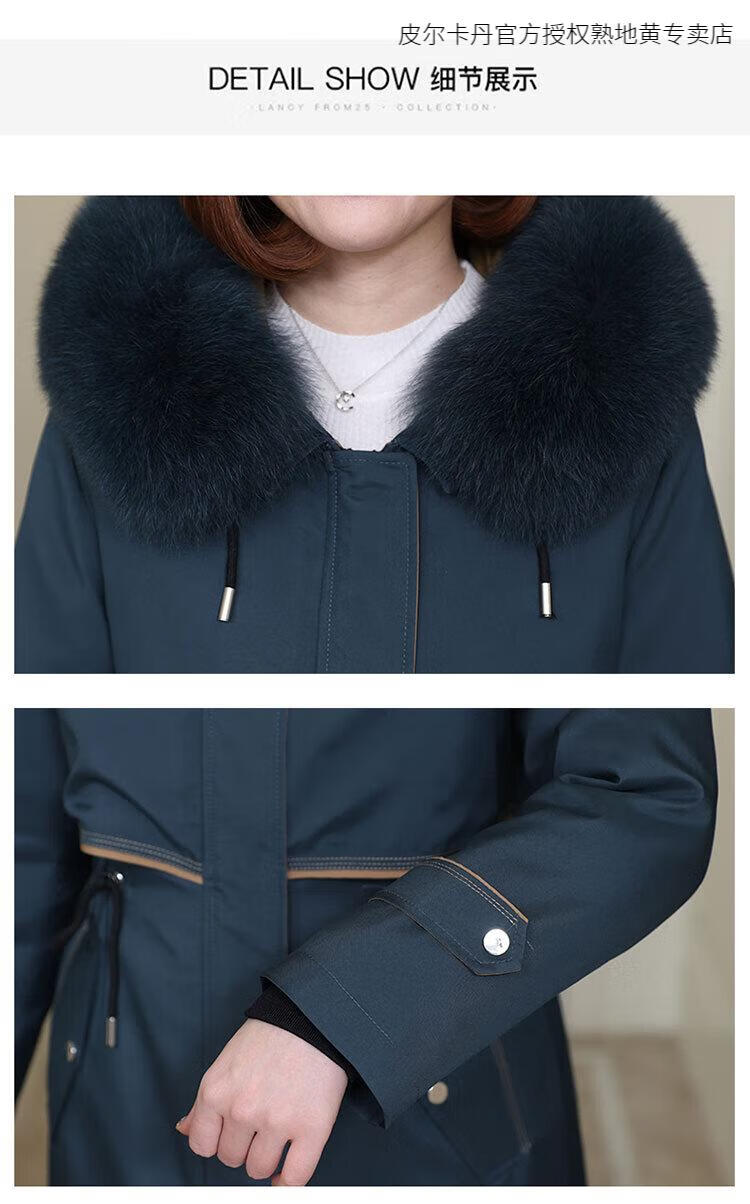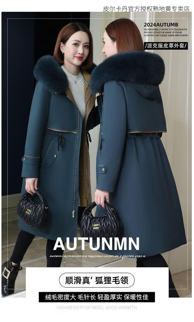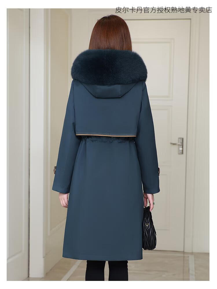 Pierre Cardin Haining Parker Coat Women's 2025 Winter New Rex Rabbit Fur Liner High-End Fur Jacket Mid-Length Mother's Style Black Brown Fur Collar 2XL 135-145Jin Jin is equal to 0.5 kg