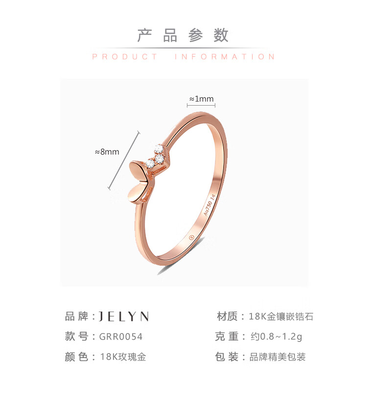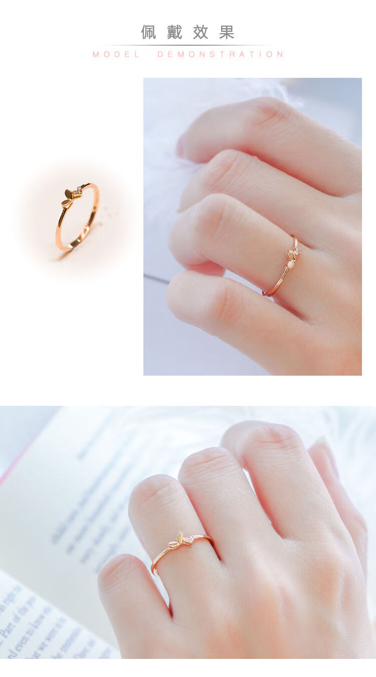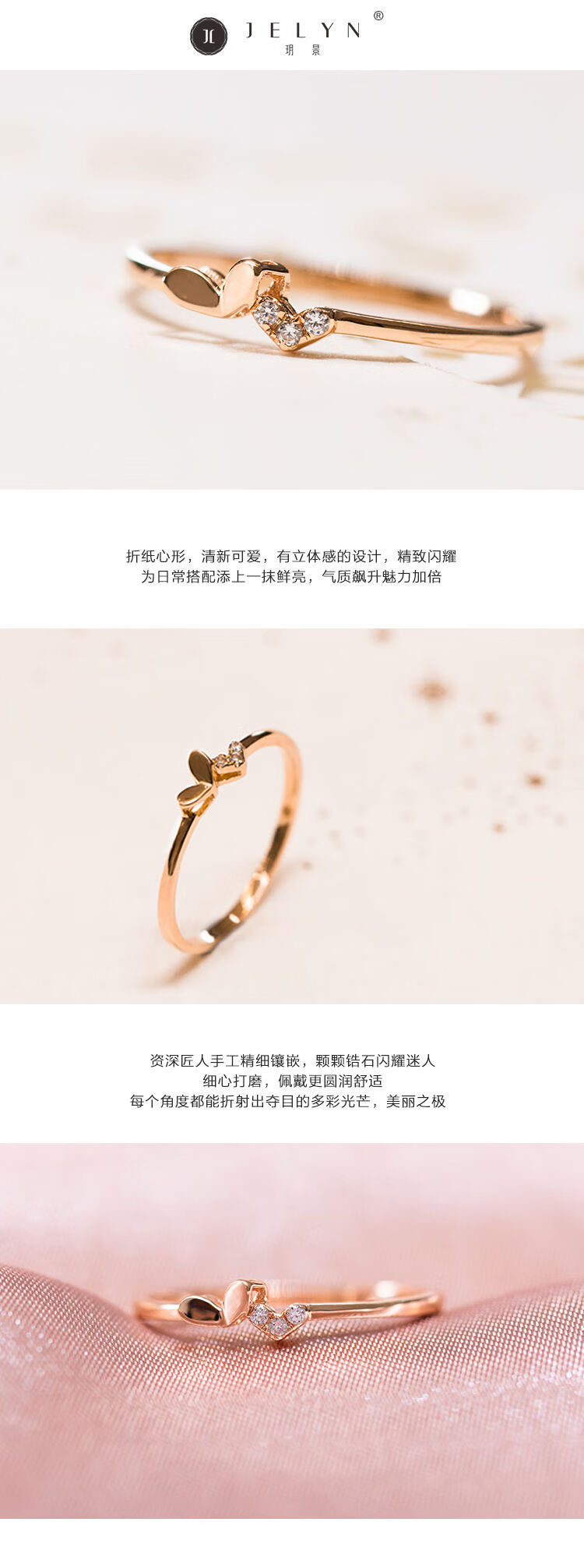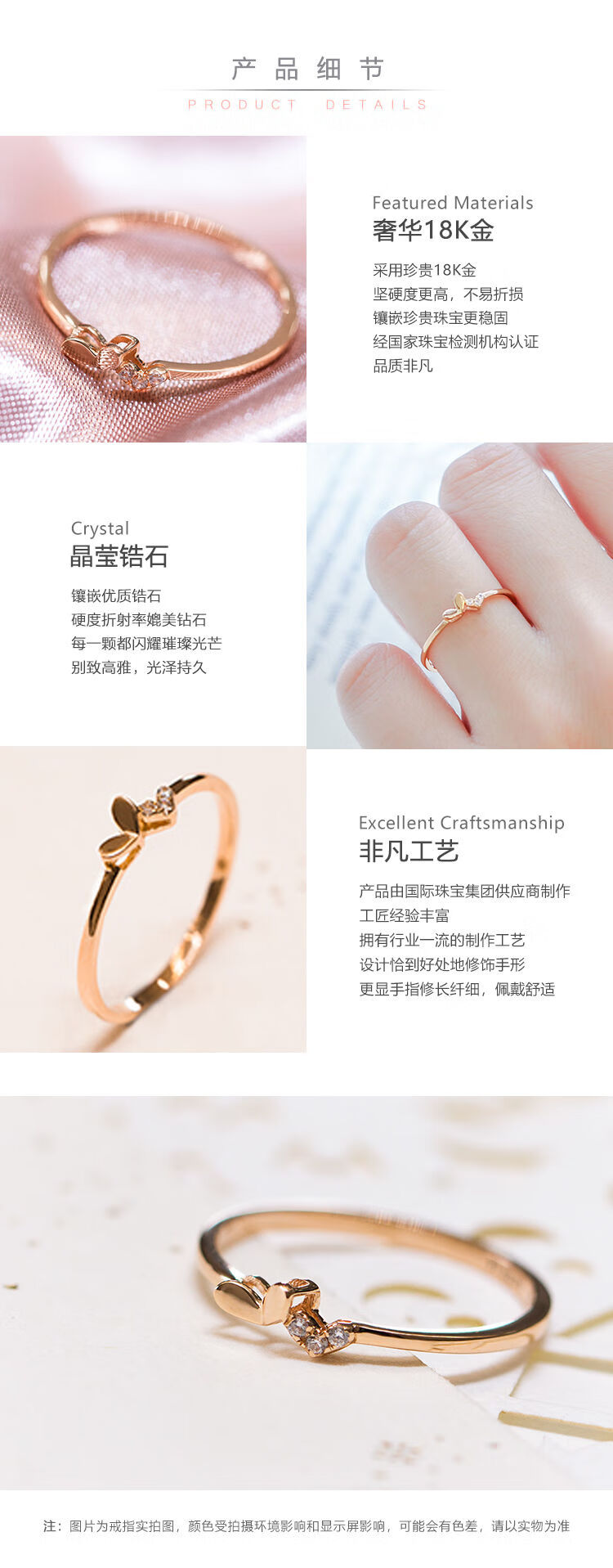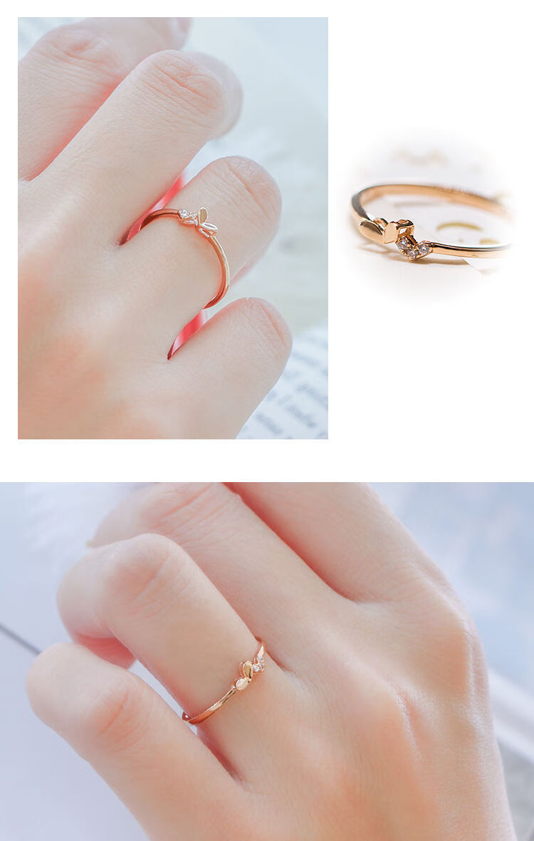 Golden branch sweet origami heart ring 18K rose gold AU750 fresh and simple internet celebrity girlfriend gift ring women's size 18