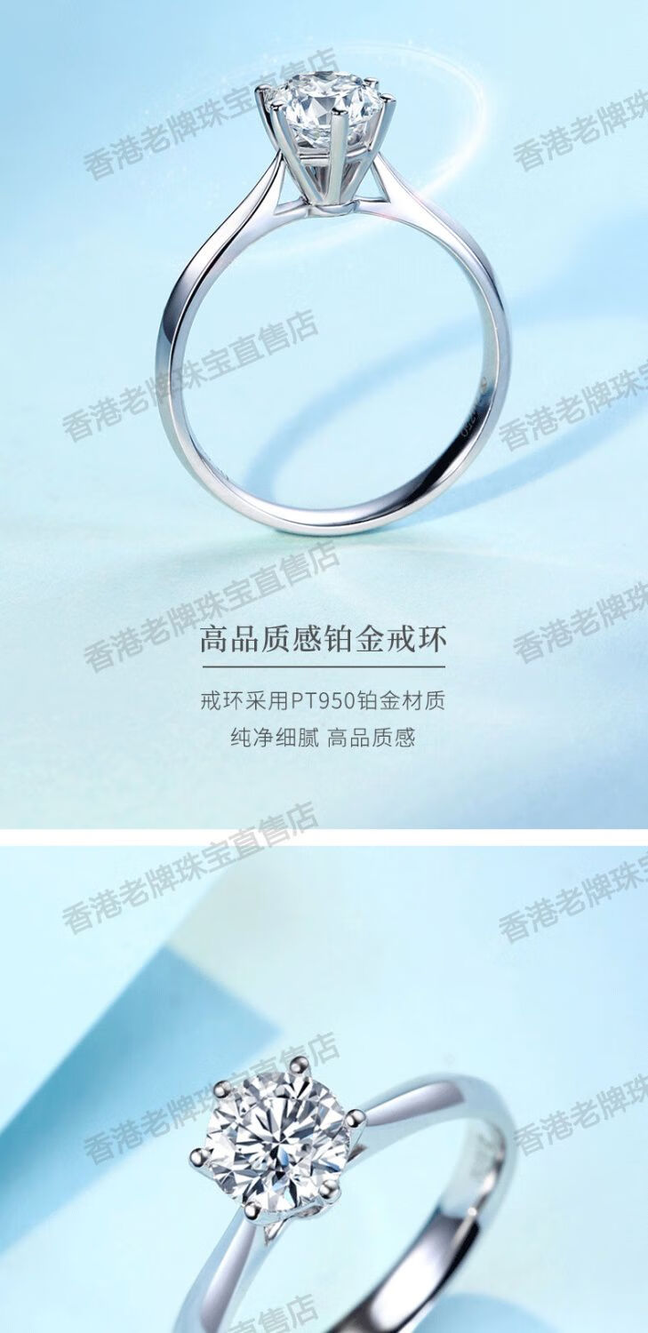 Counter genuine pt950 platinum ring for women, classic six-claw 1 carat, wedding gift for girlfriend and wife, Valentine's Day gift, platinum classic six-claw, 1 carat women's ring + counter gift box, live mouth, adjustable size
