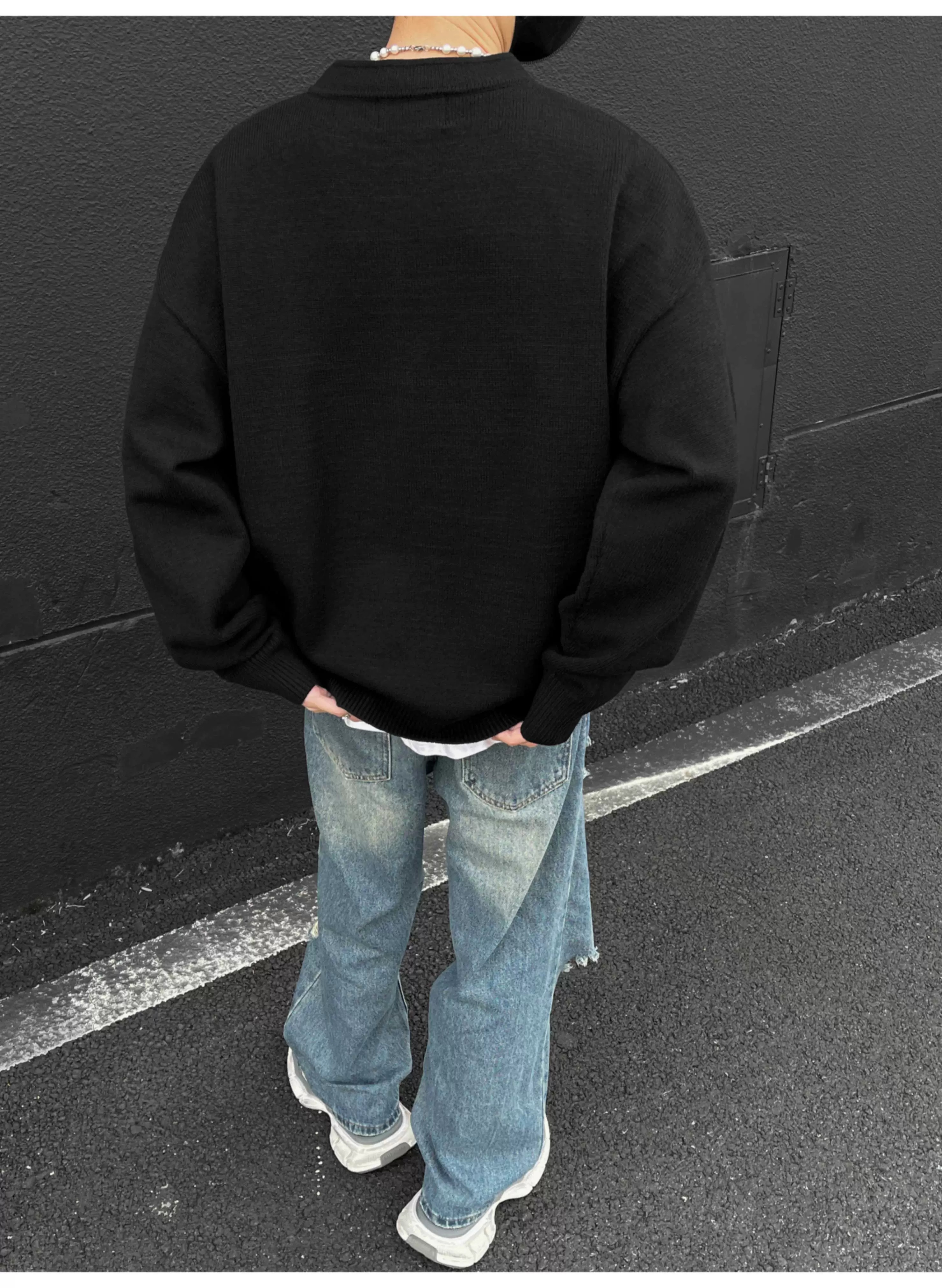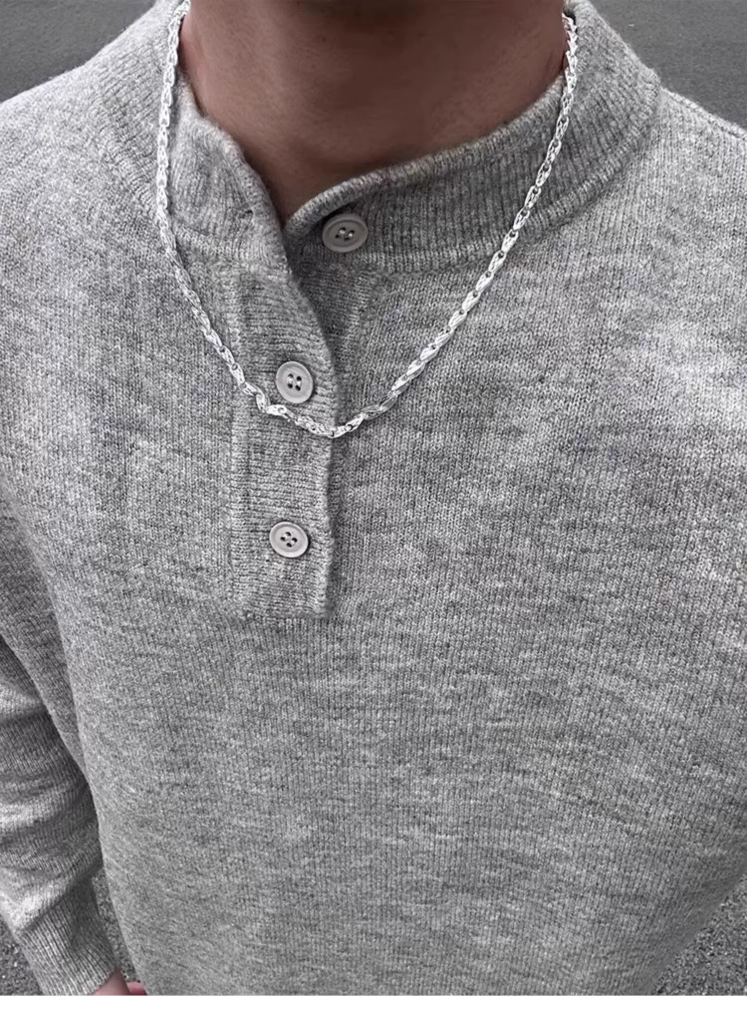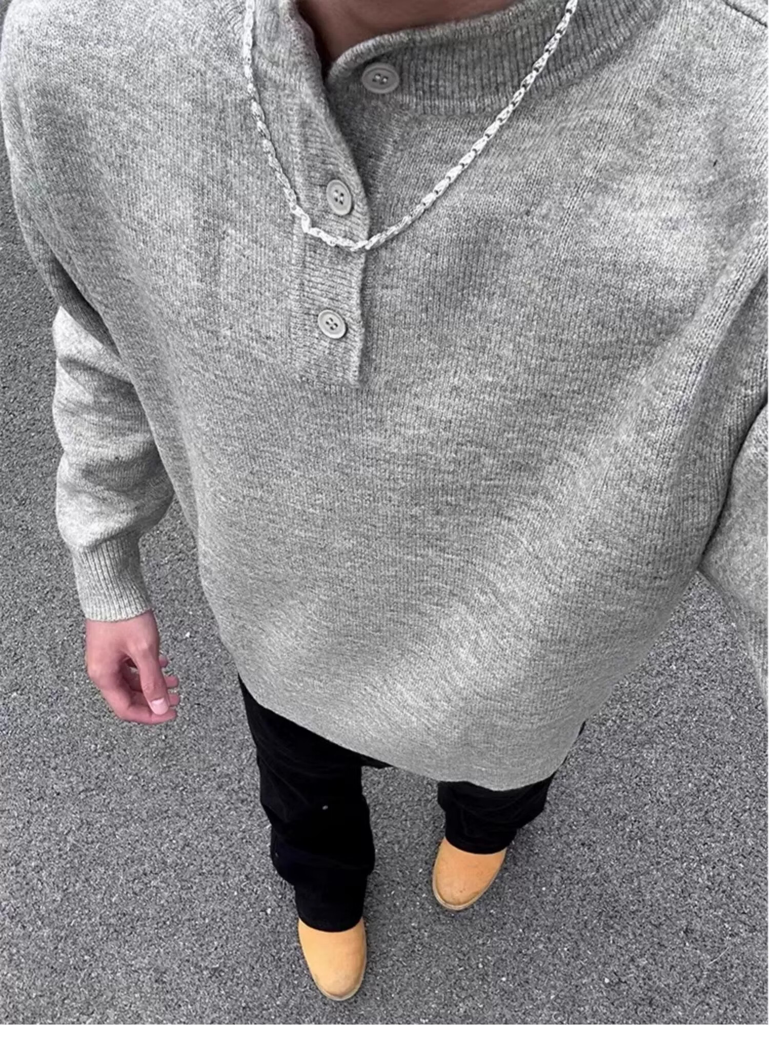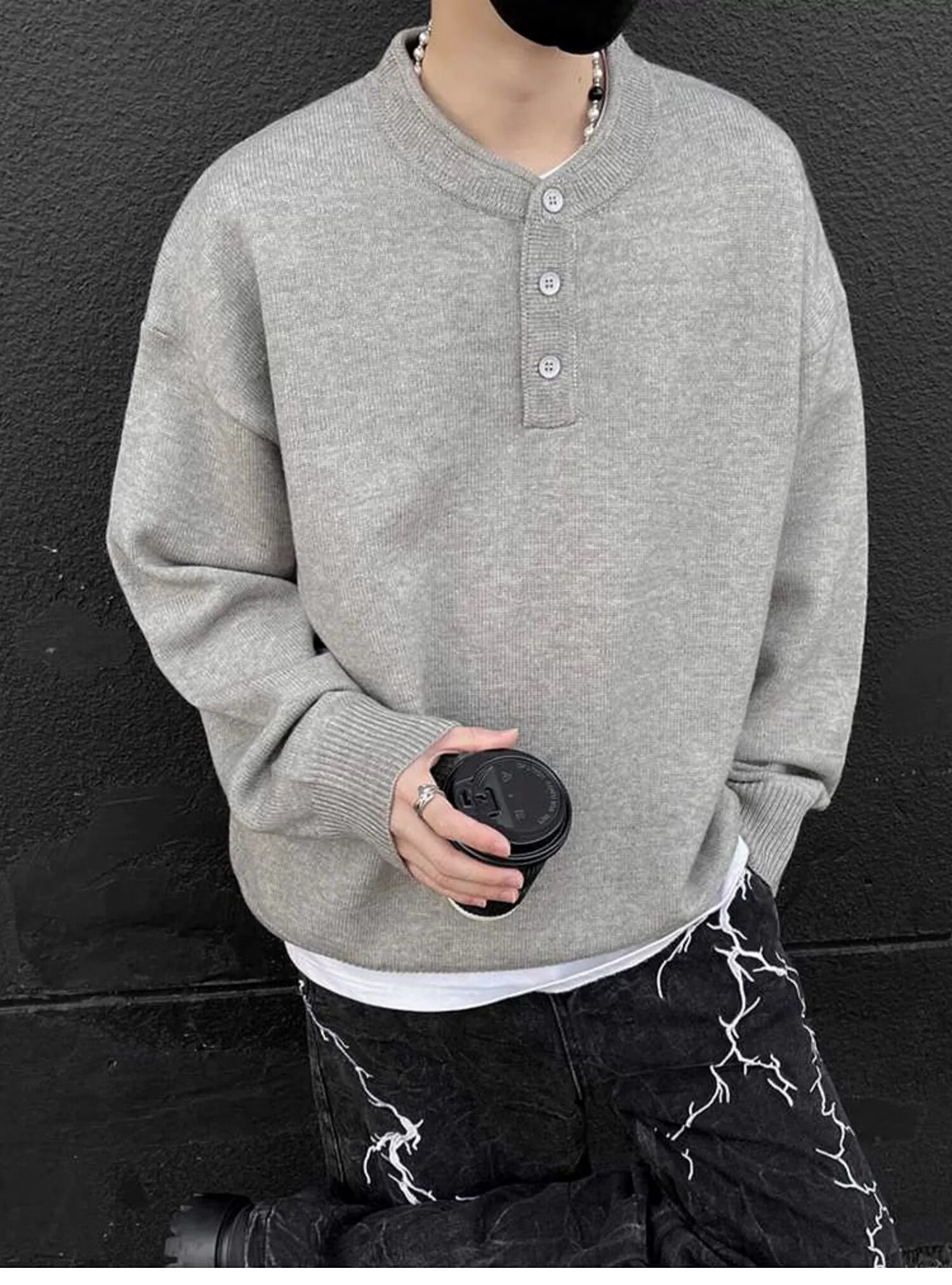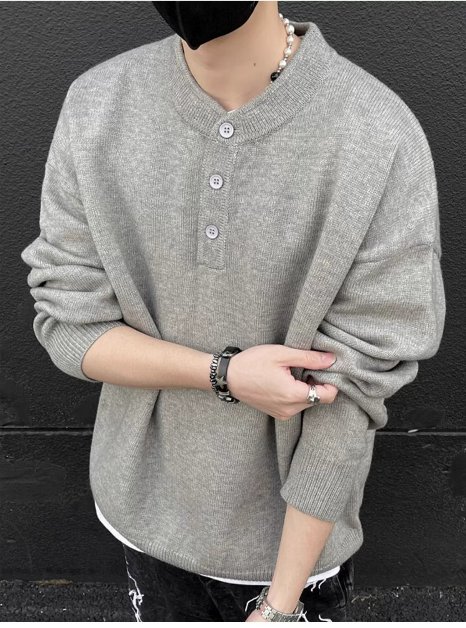 POUM gray Henry collar sweater men's autumn and winter style bottoming sweater lazy style loose casual jacket XZWP-D66 light gray M