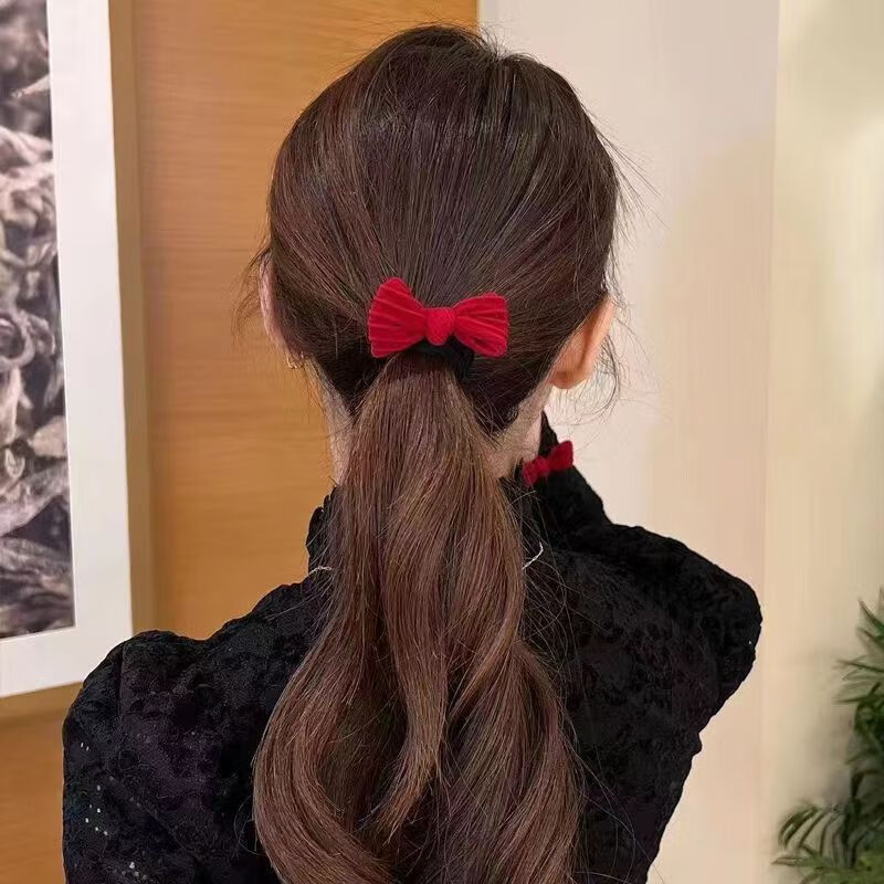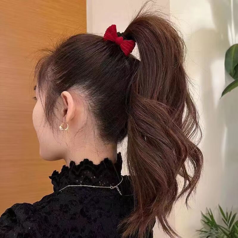 Jiuvia bow headband for women, high elastic red New Year and Christmas hair band, autumn and winter ponytail hair accessories, rubber band leather case JYFQ146#Bowknot mixed color 10 pieces